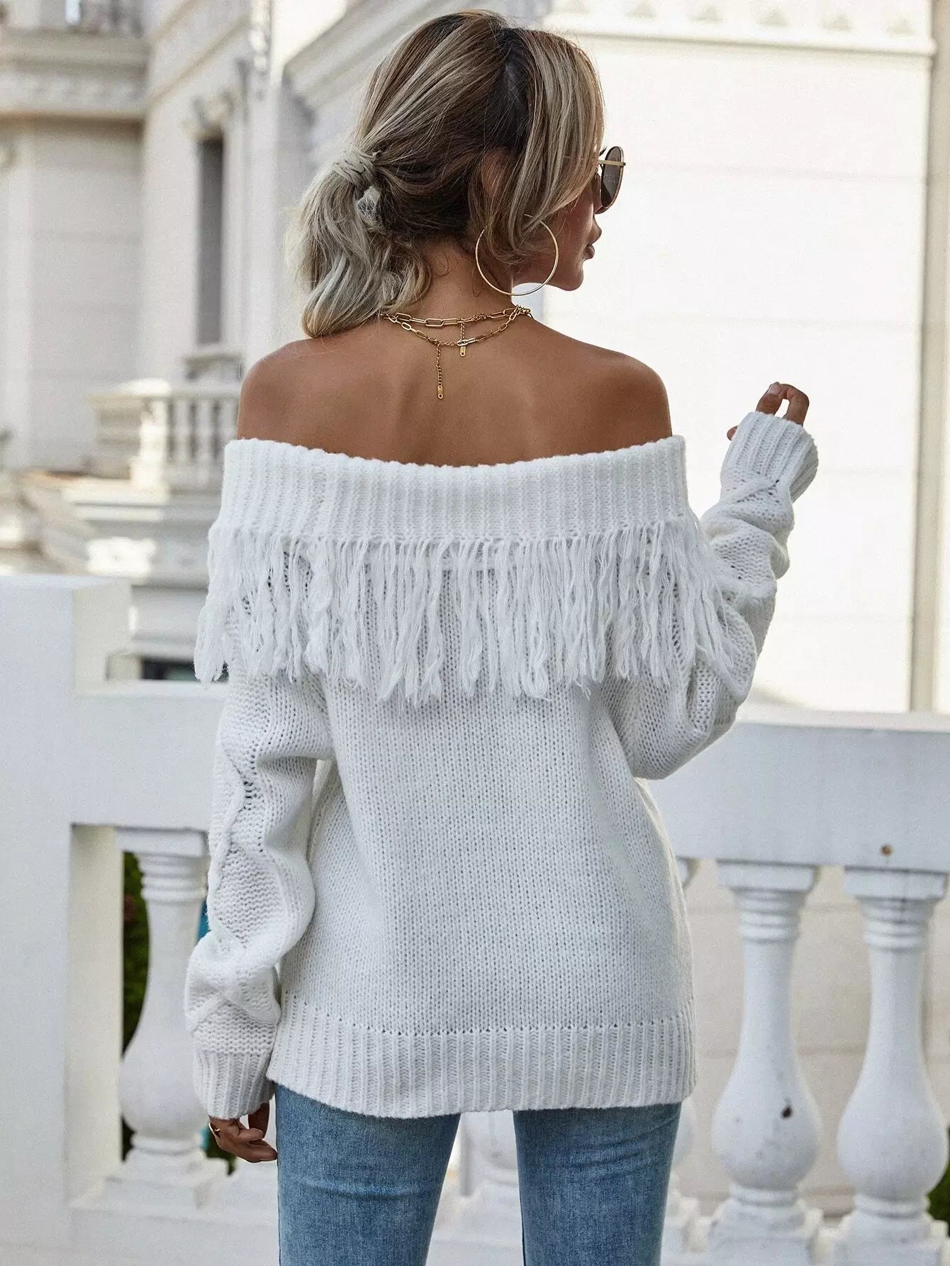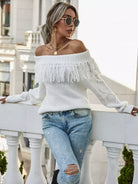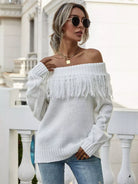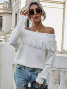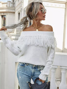 Off Shoulder Fringe Trim Sweater