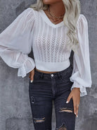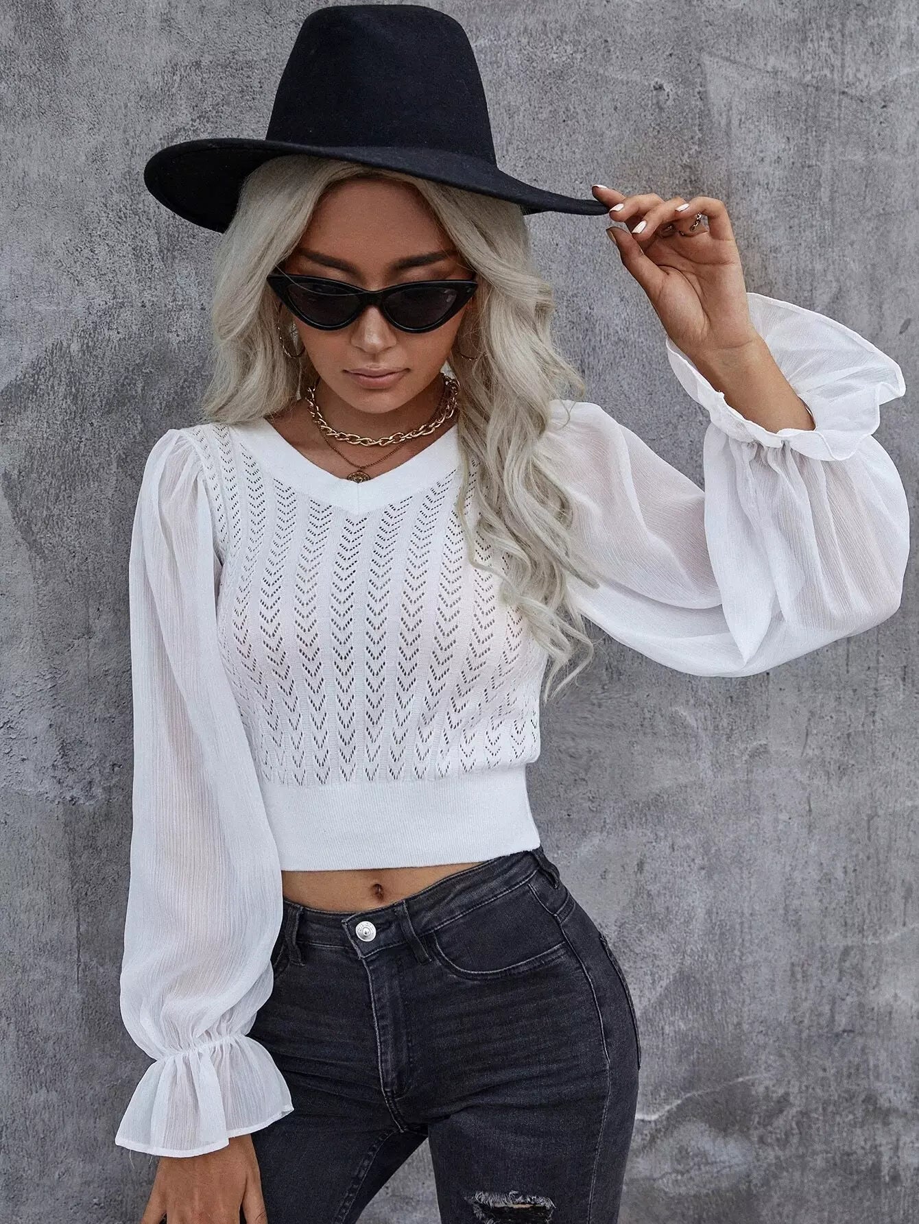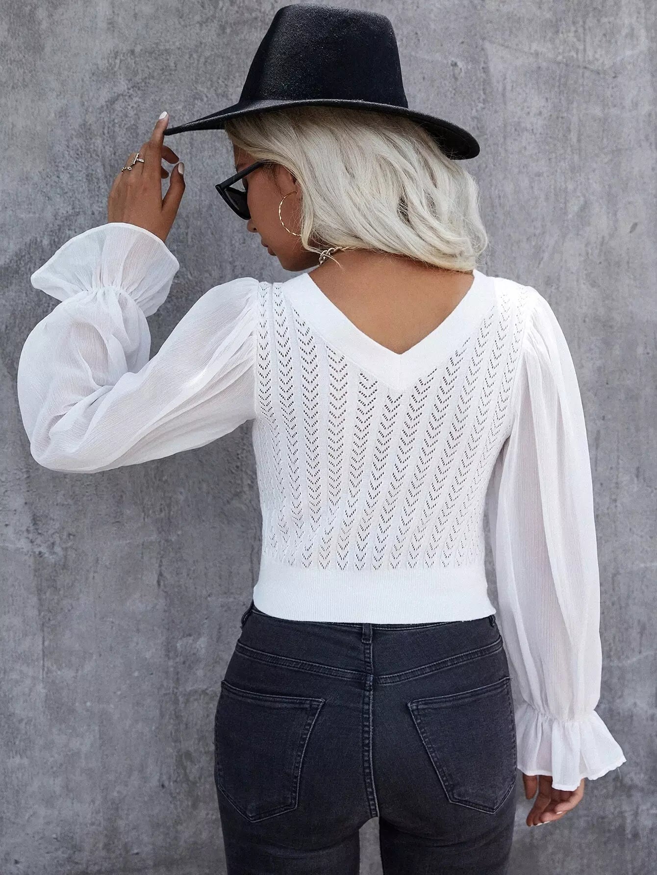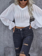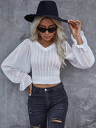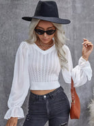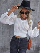 Pointelle Knit Flounce Sleeve Crop Sweater