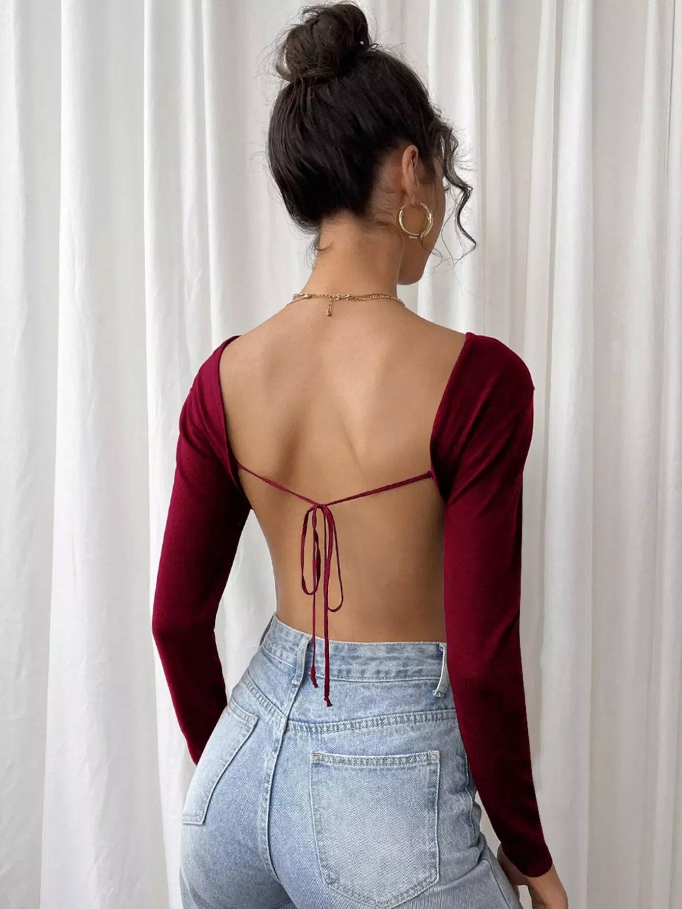 Ribbed Knit Tie Backless Sweater