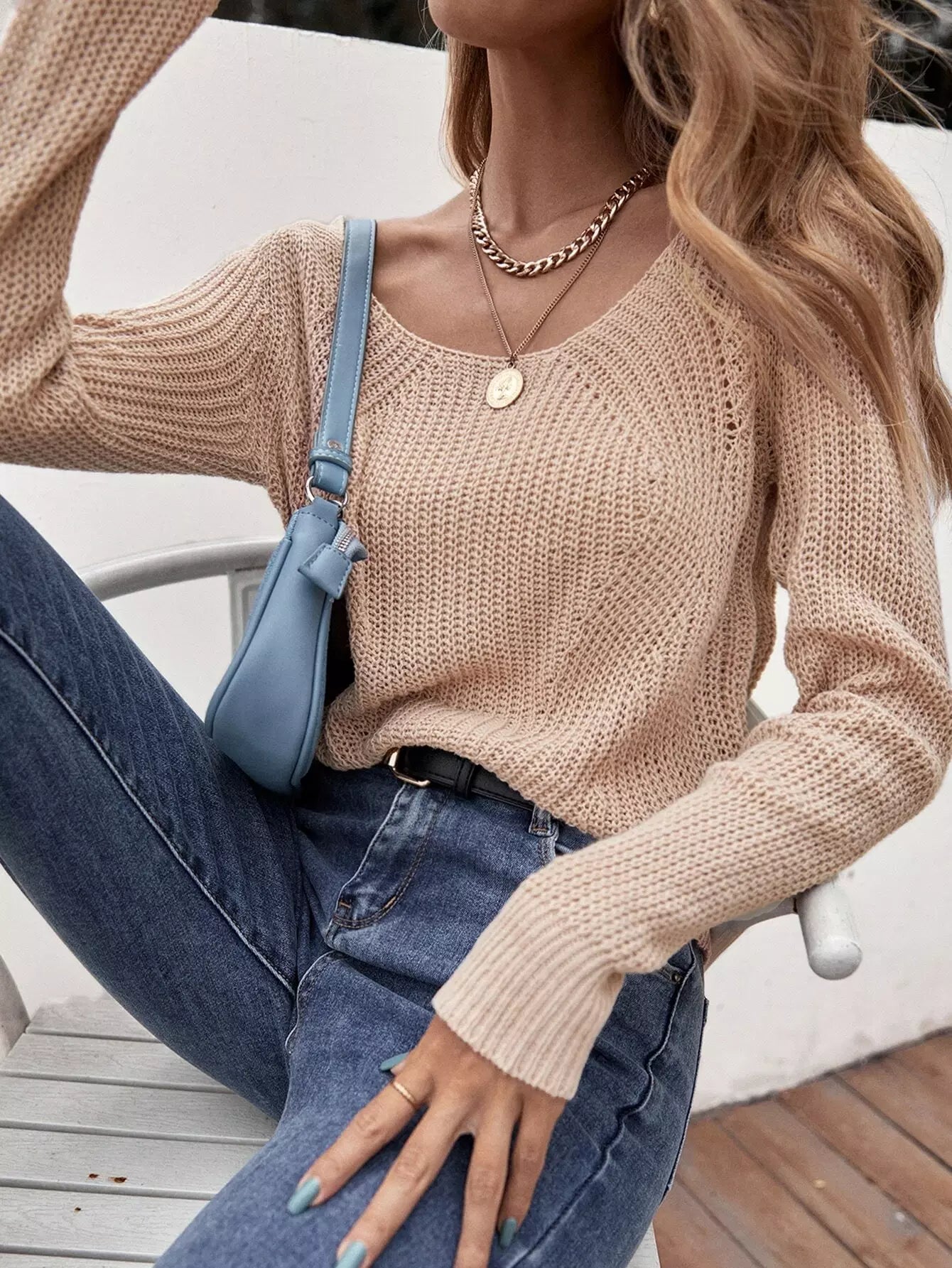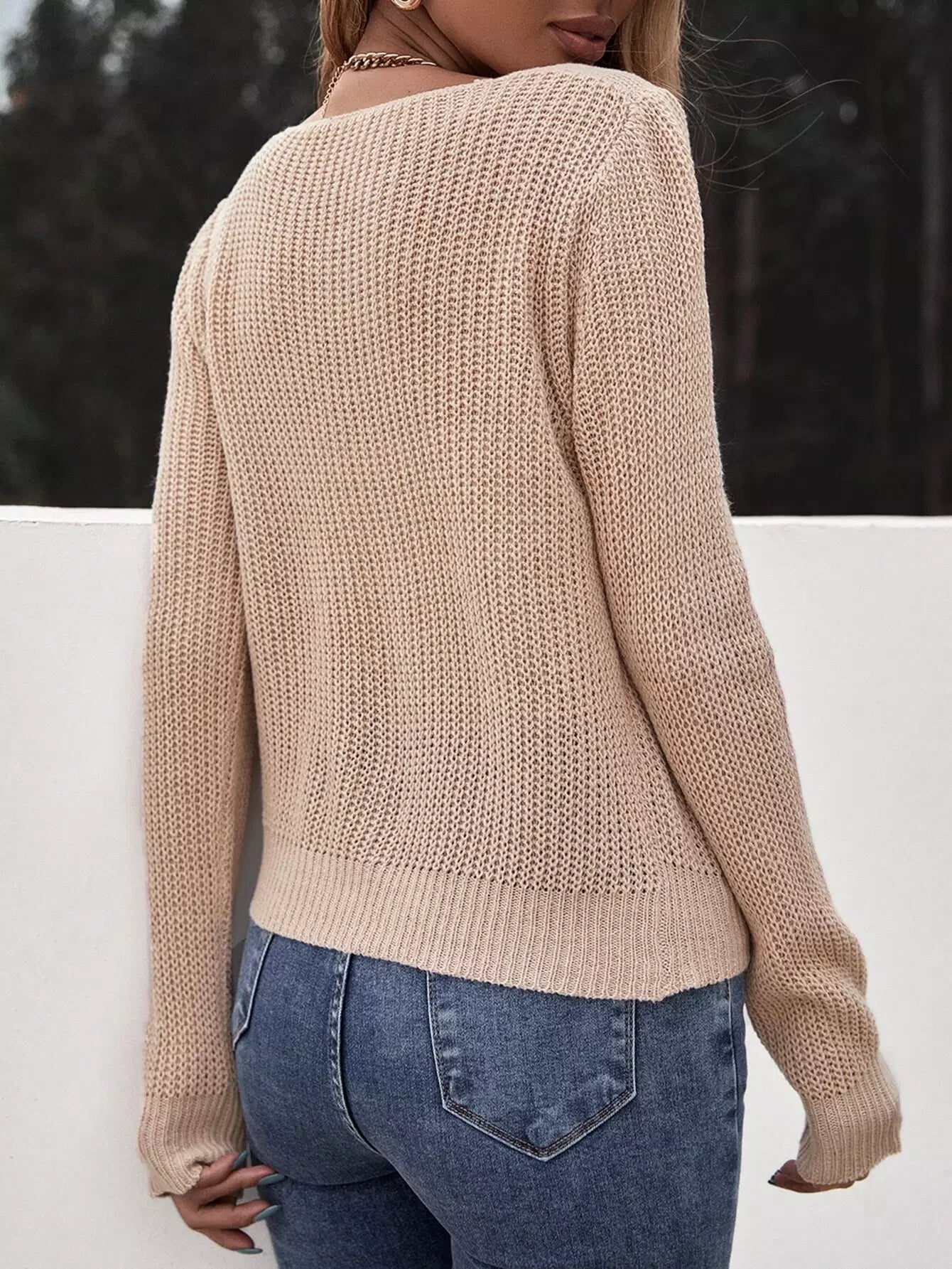 Scoop Neck Pointelle Knit Sweater
