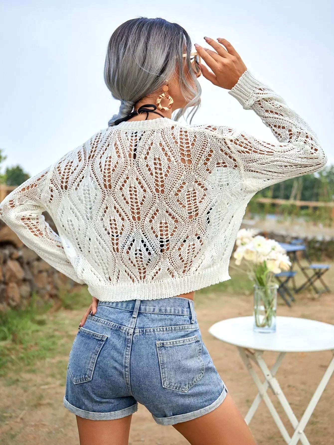 Sheer Drop Shoulder Crop Sweater