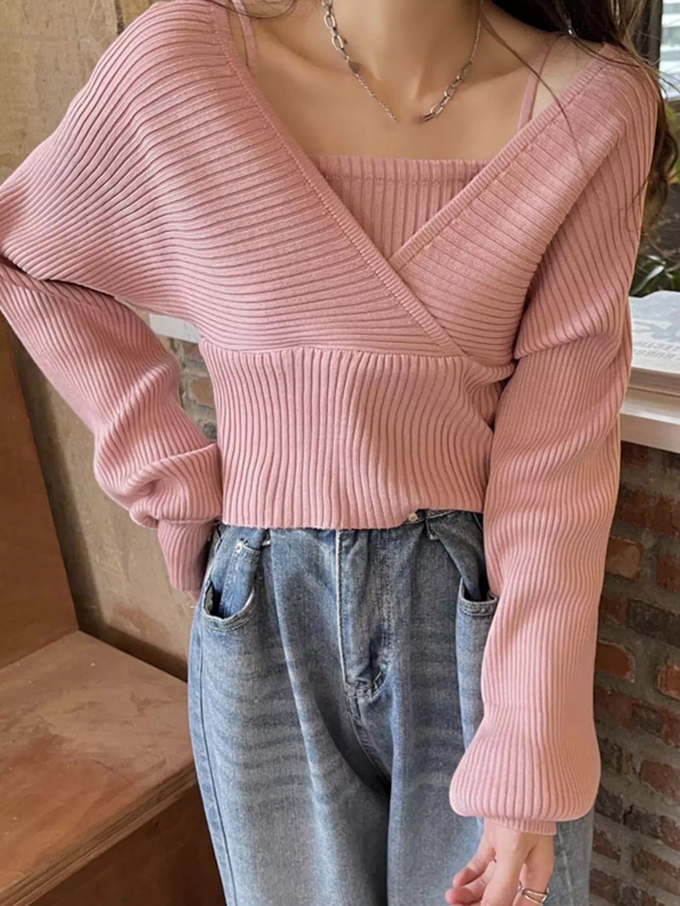 Solid 2 In 1 Overlap Sweater