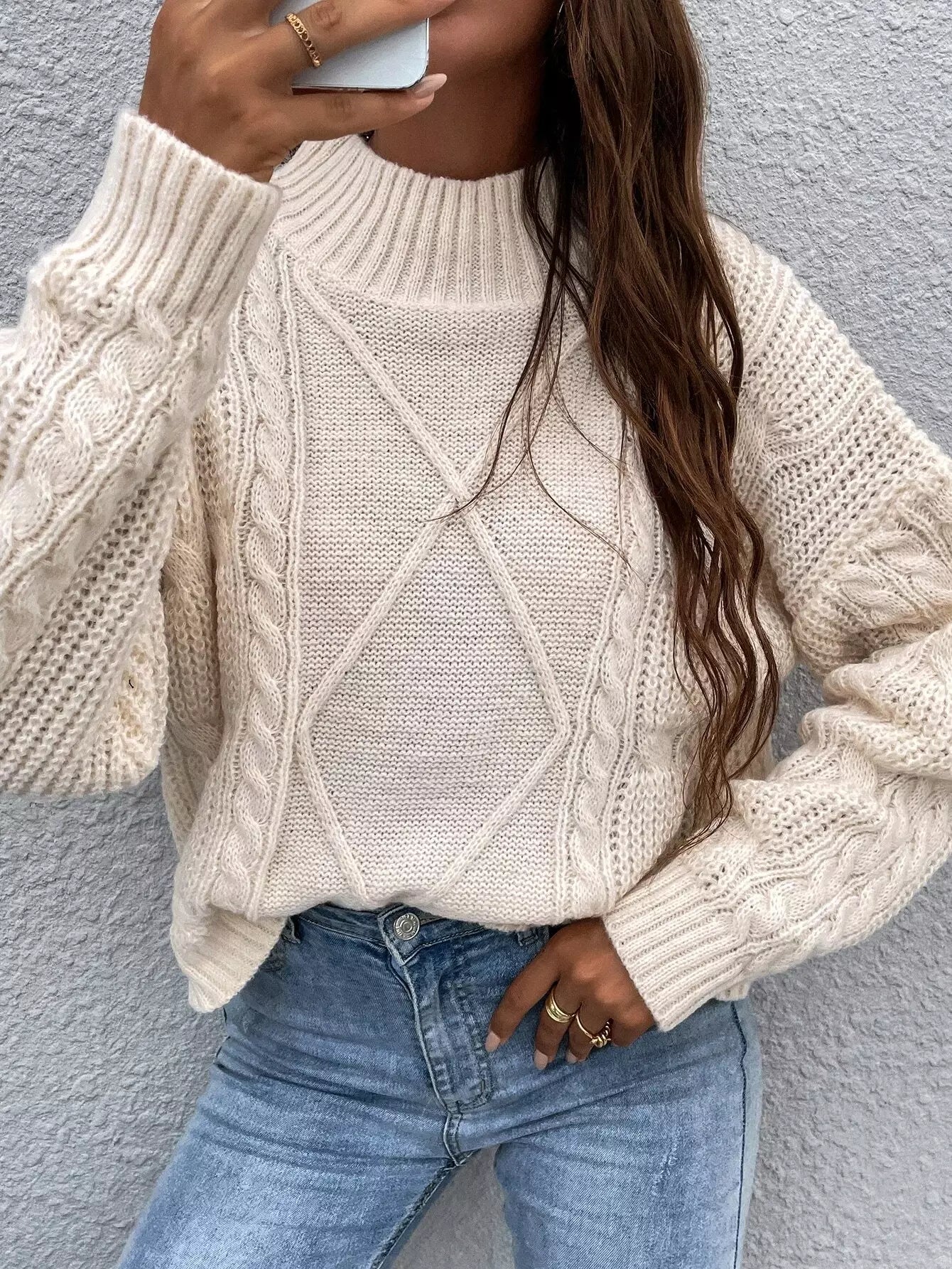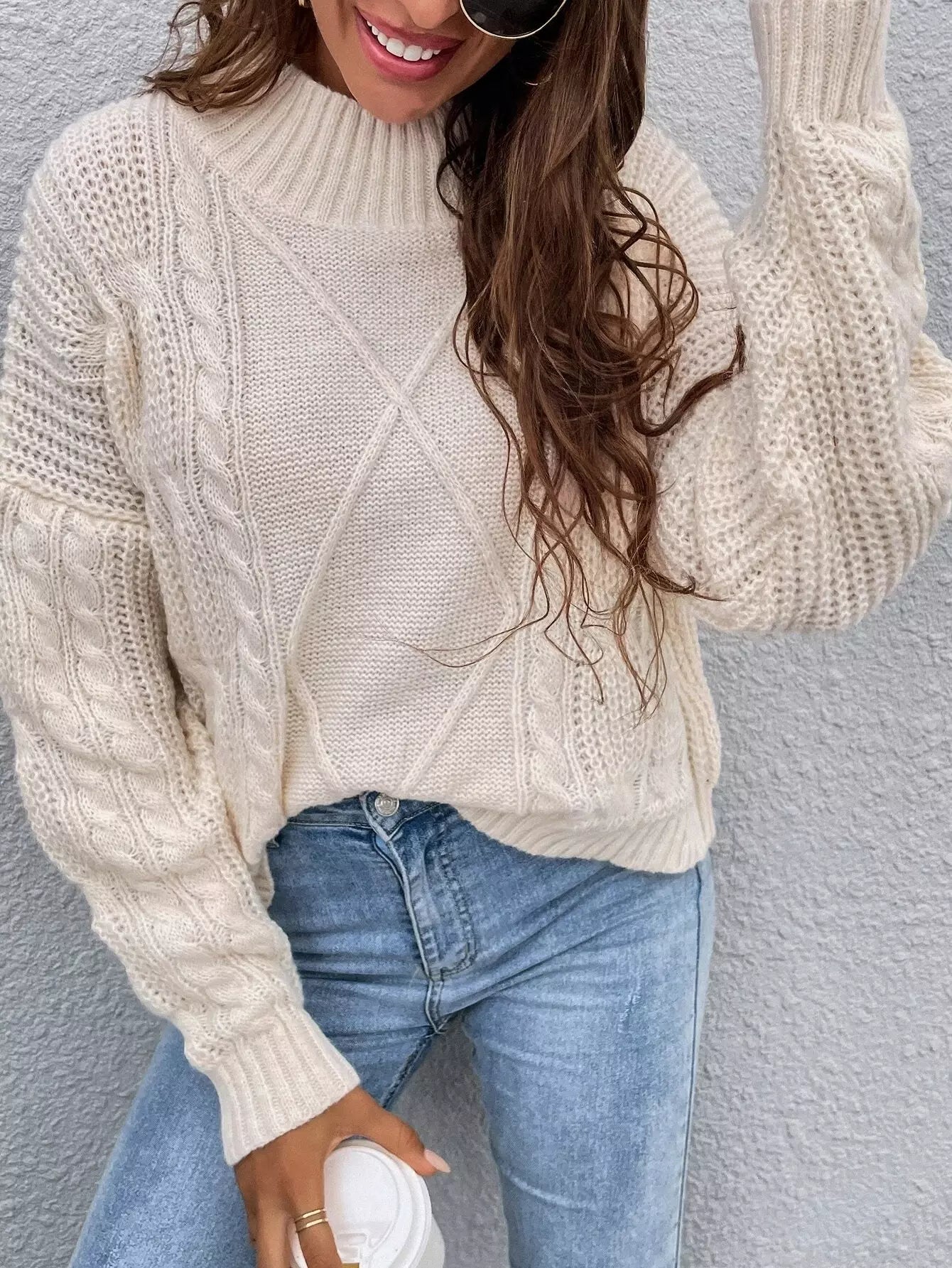 Solid Cable Knit Sweater