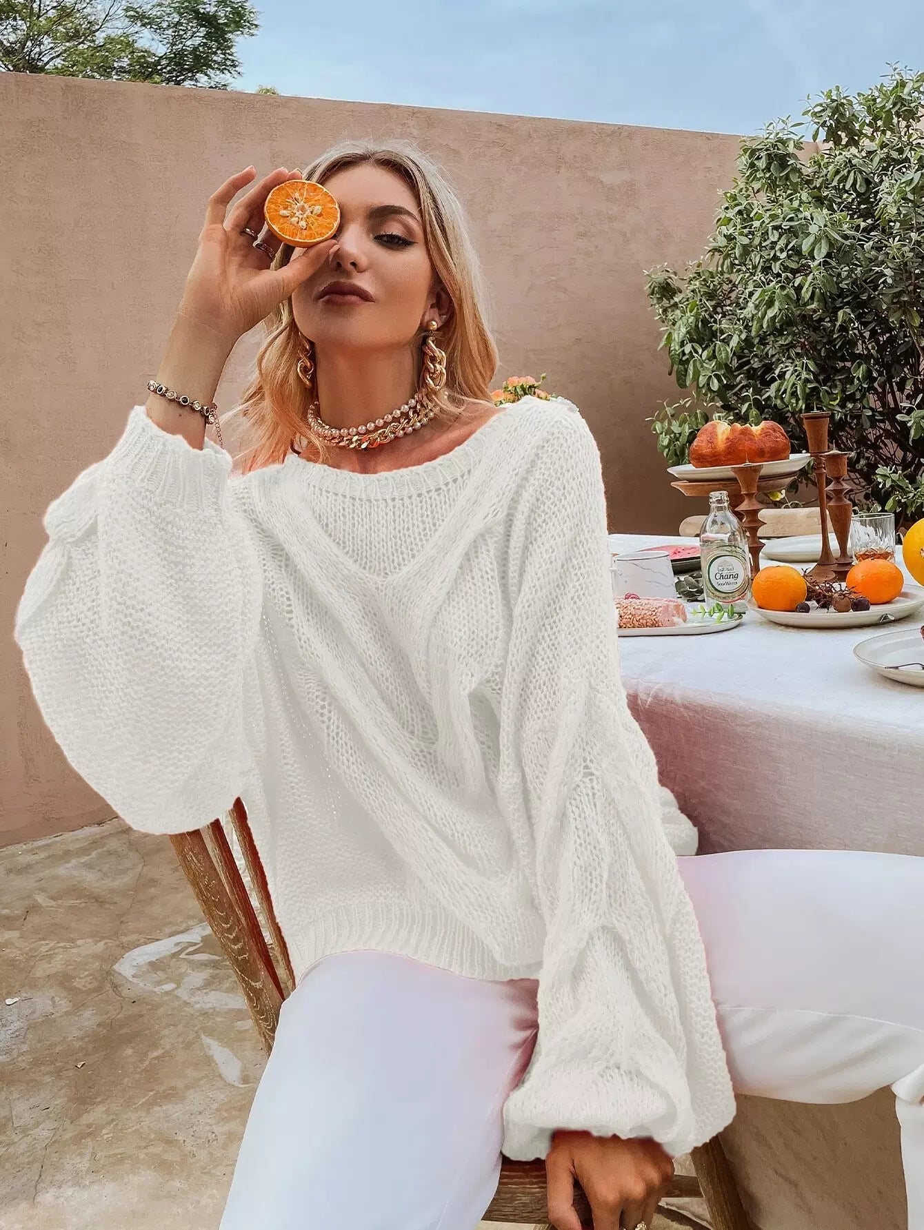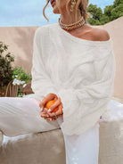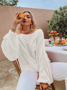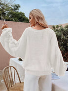 Solid Drop Shoulder Pointelle Knit Sweater