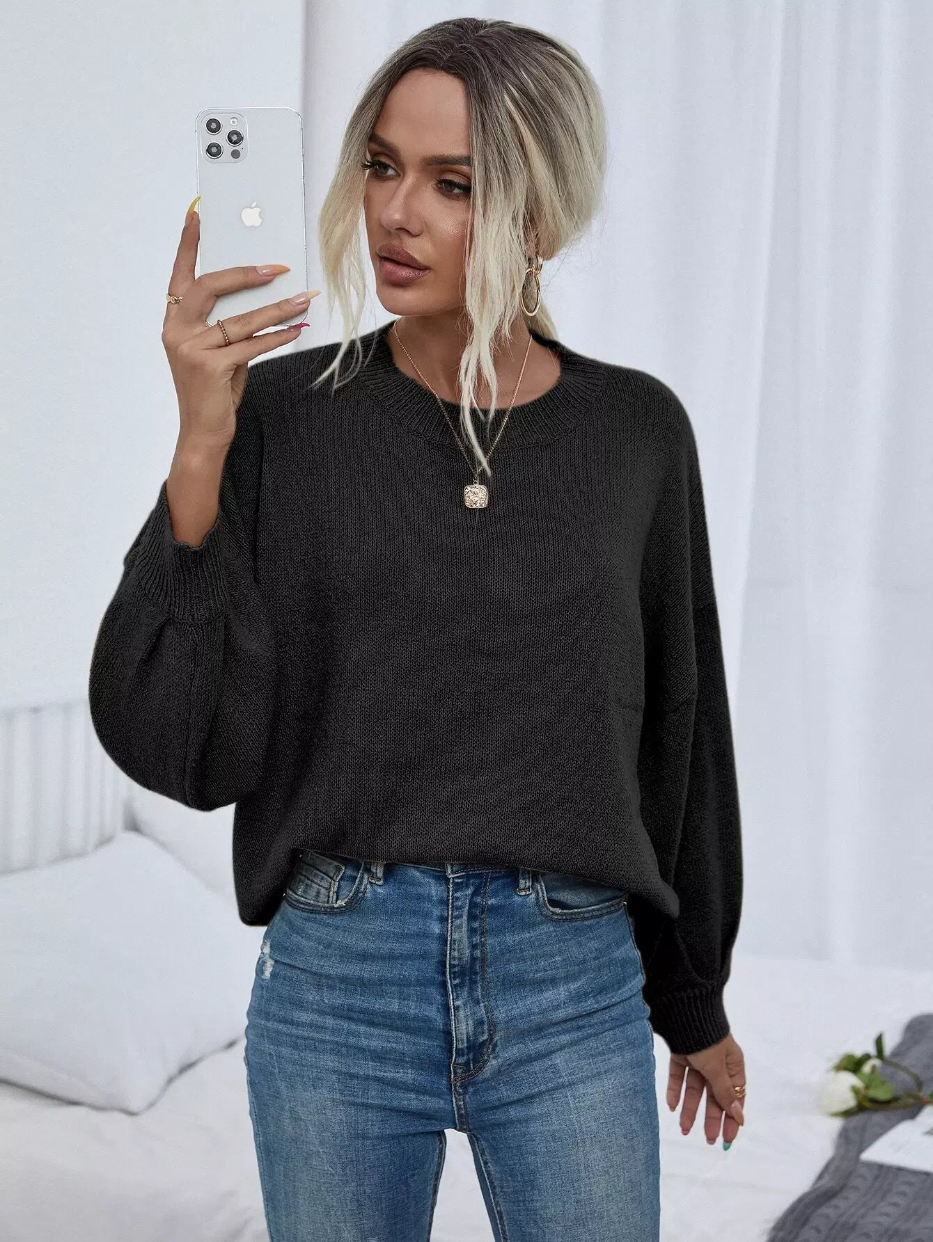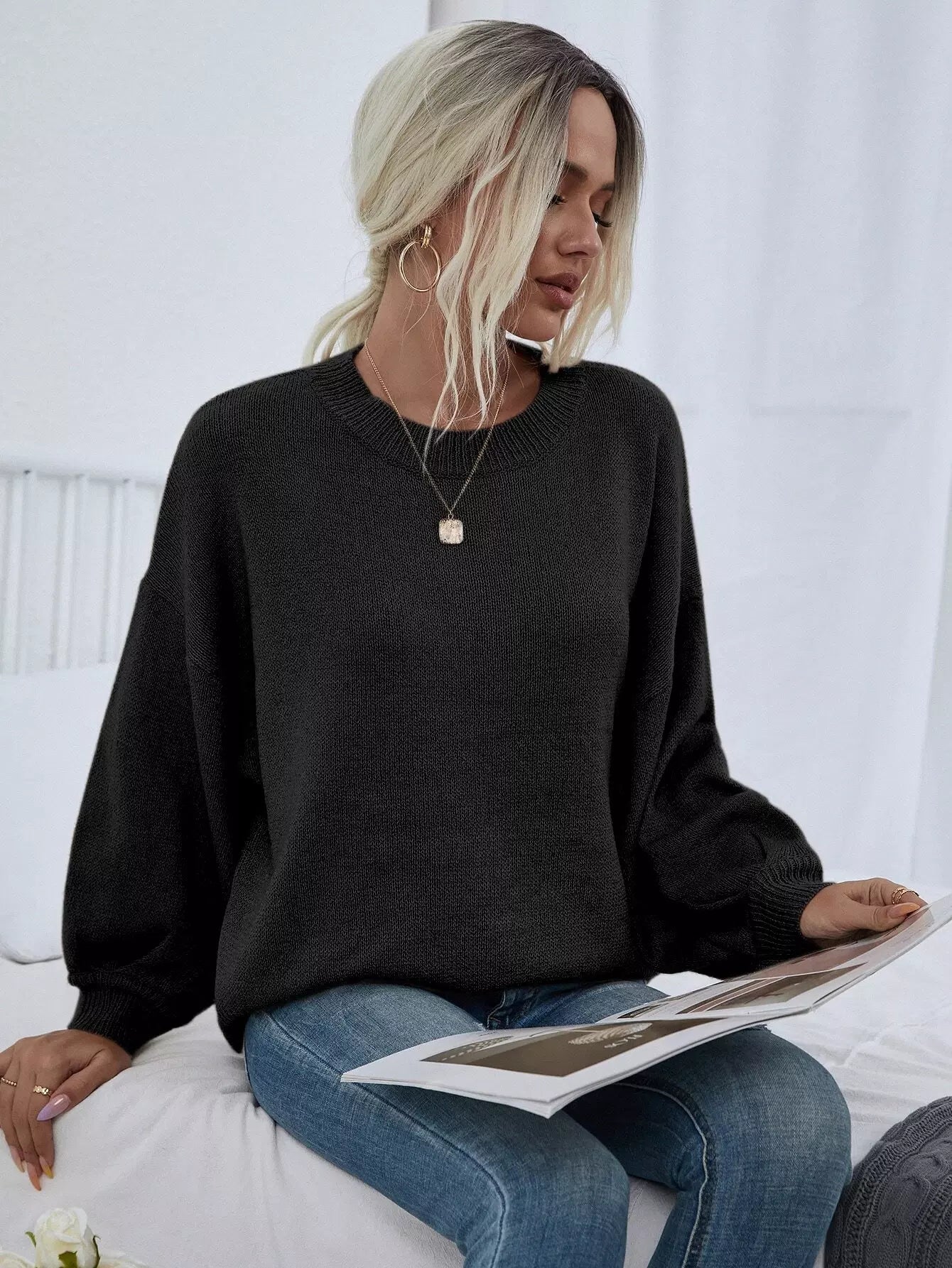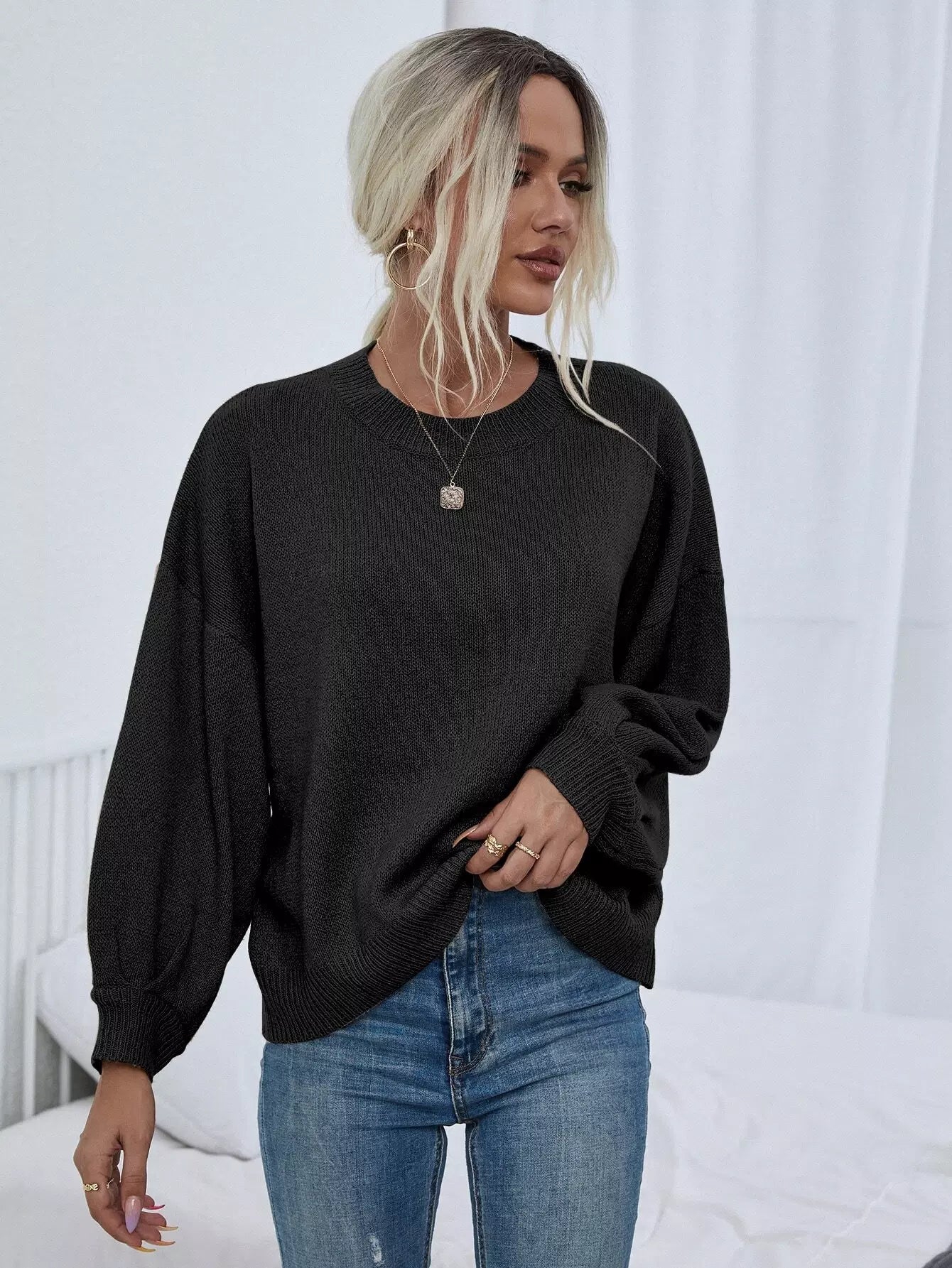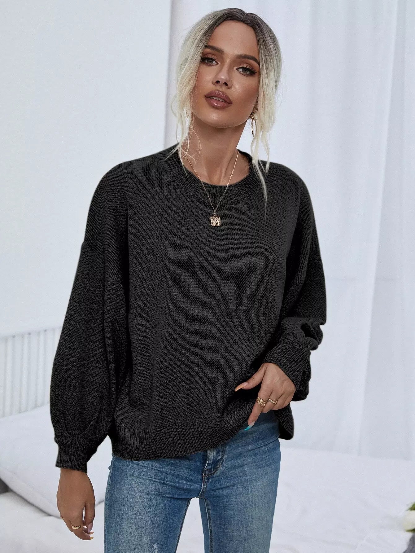 Solid Drop Shoulder Sweater