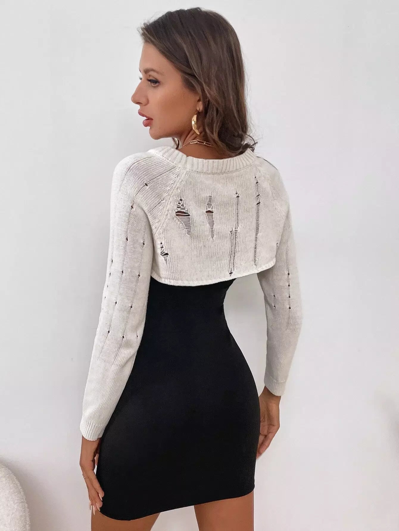 Solid Ripped Raglan Sleeve Super Crop Sweater