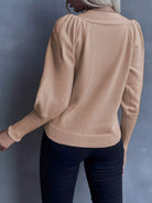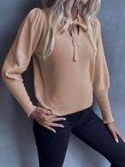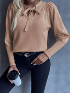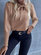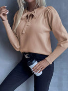 Solid Tie Front Leg-of-mutton Sleeve Sweater