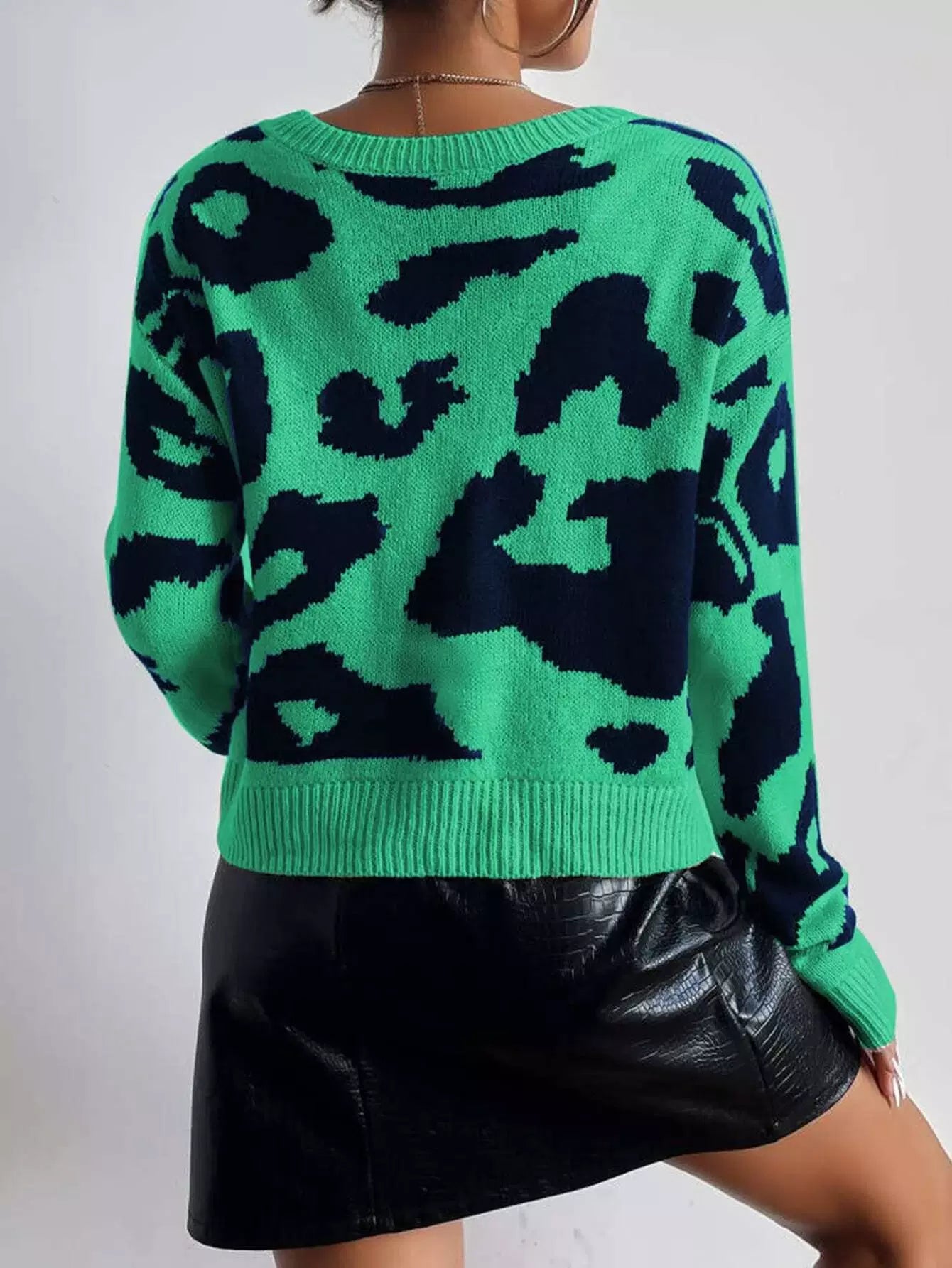 Surplice Neck Drop Shoulder Leopard Pattern Sweater