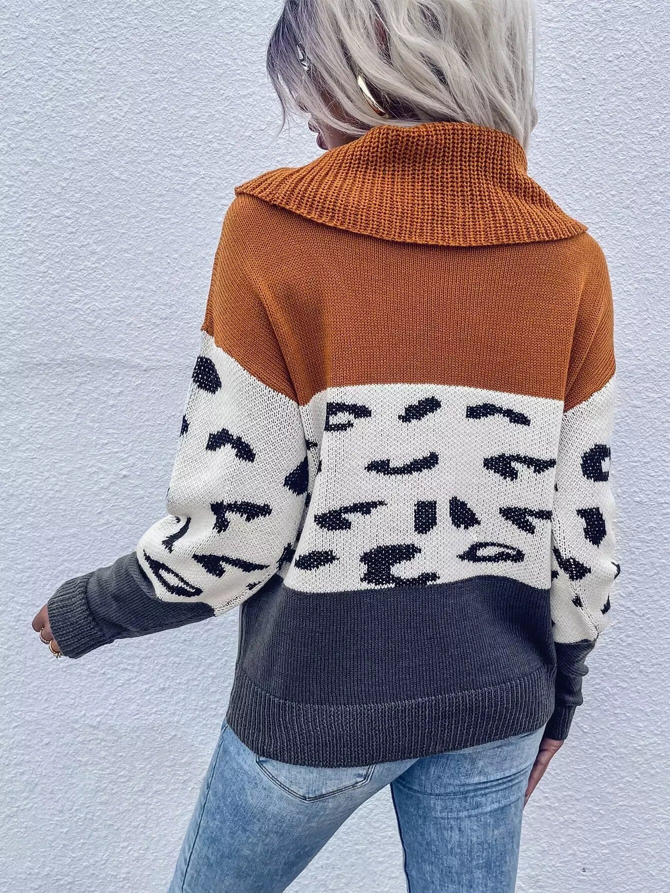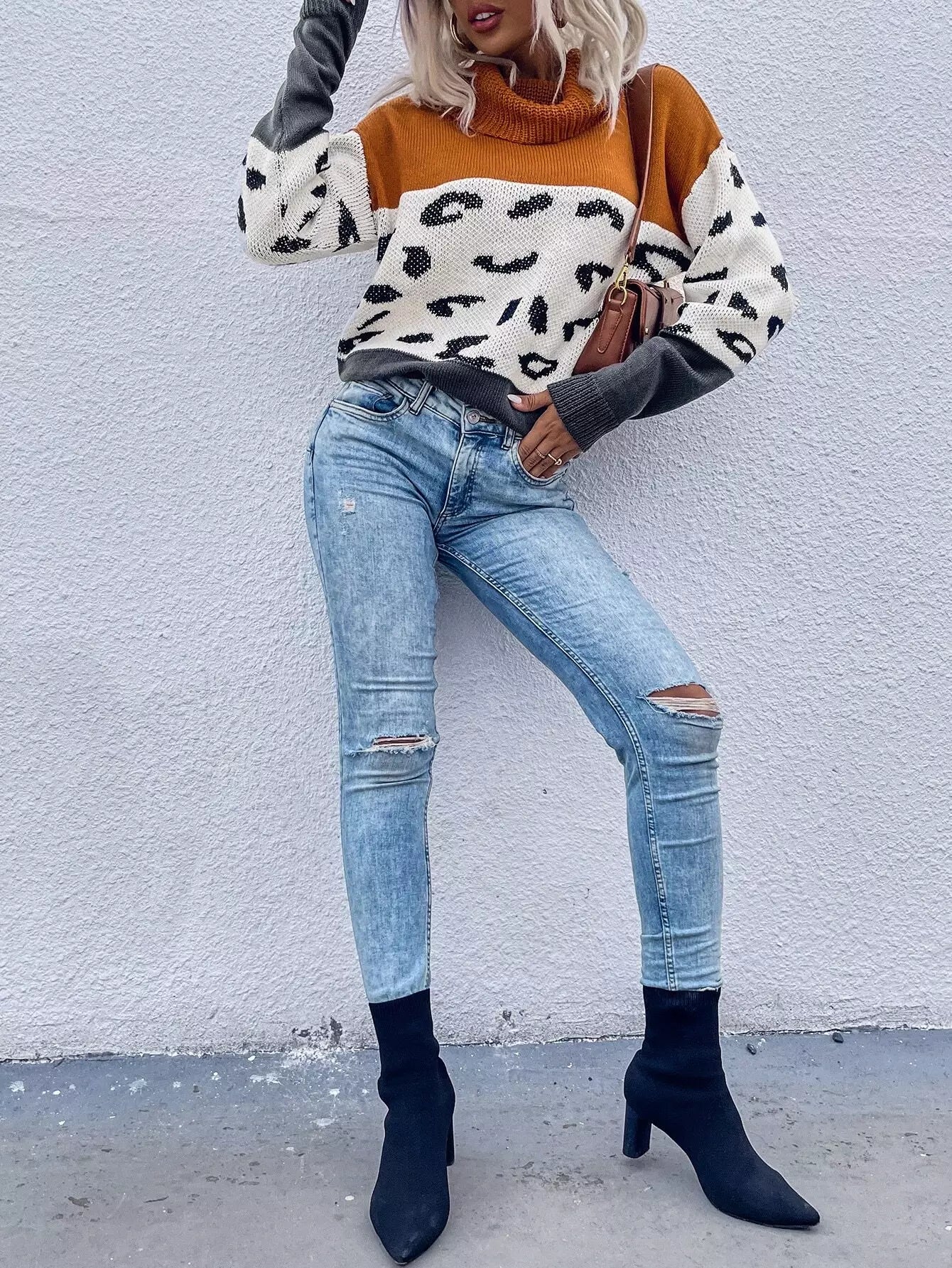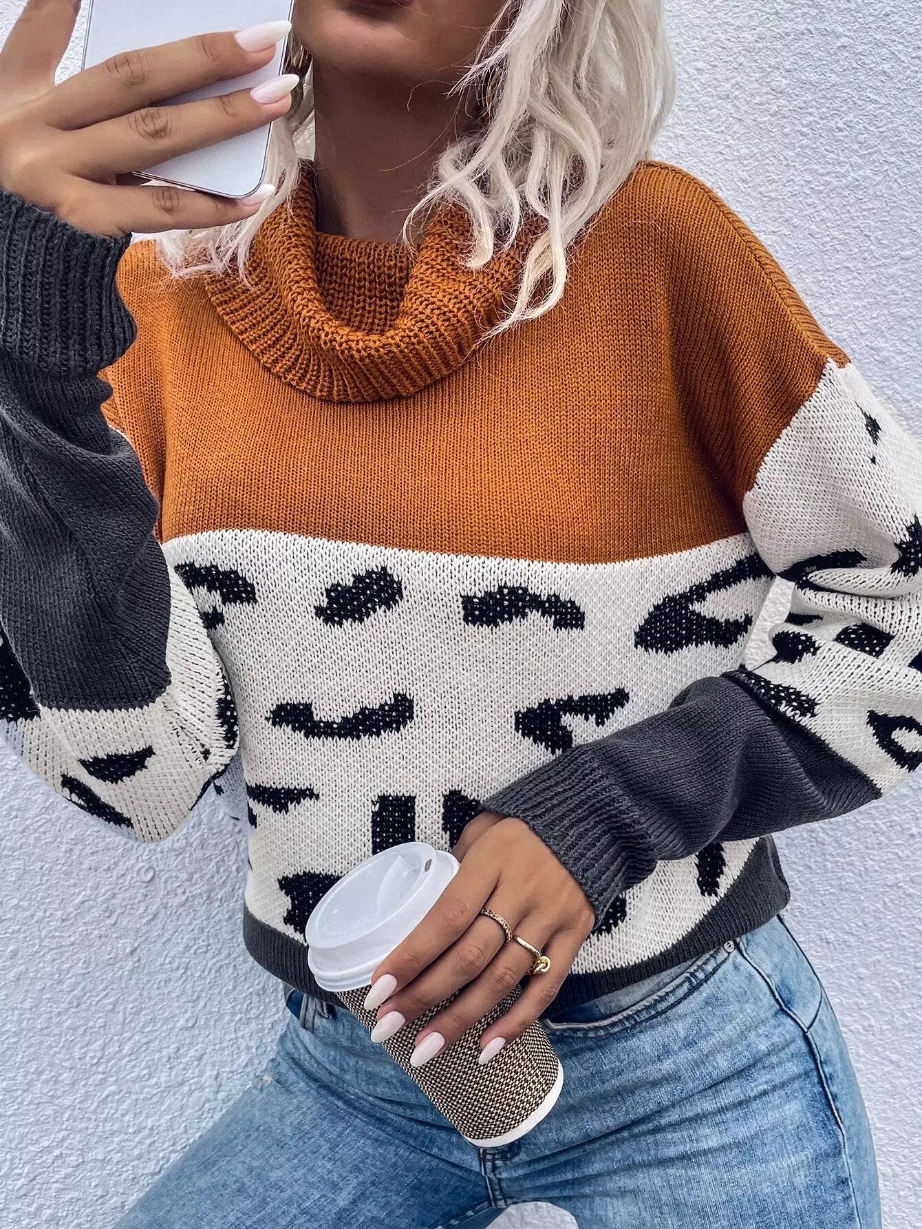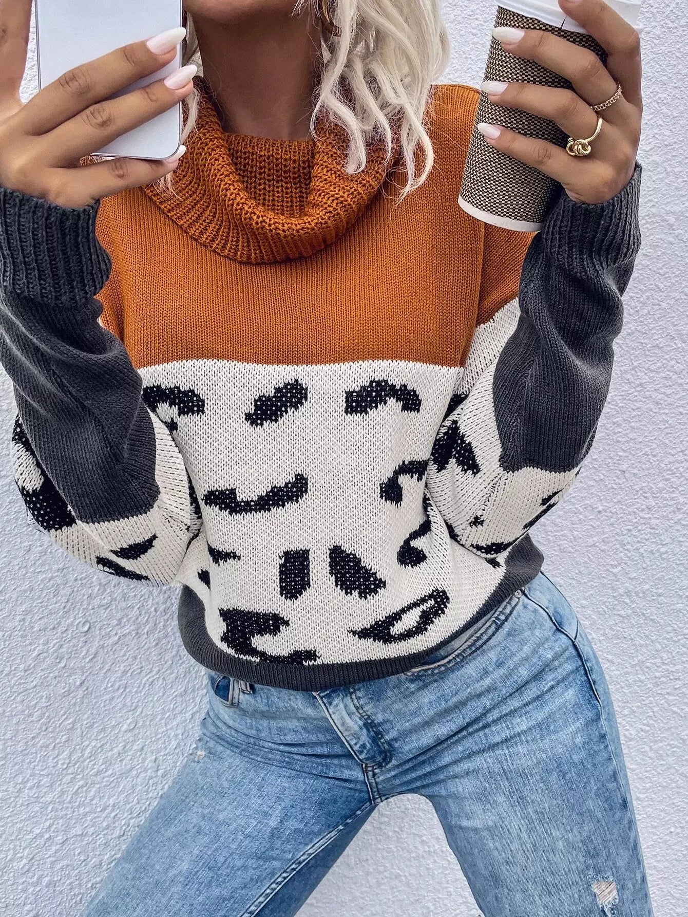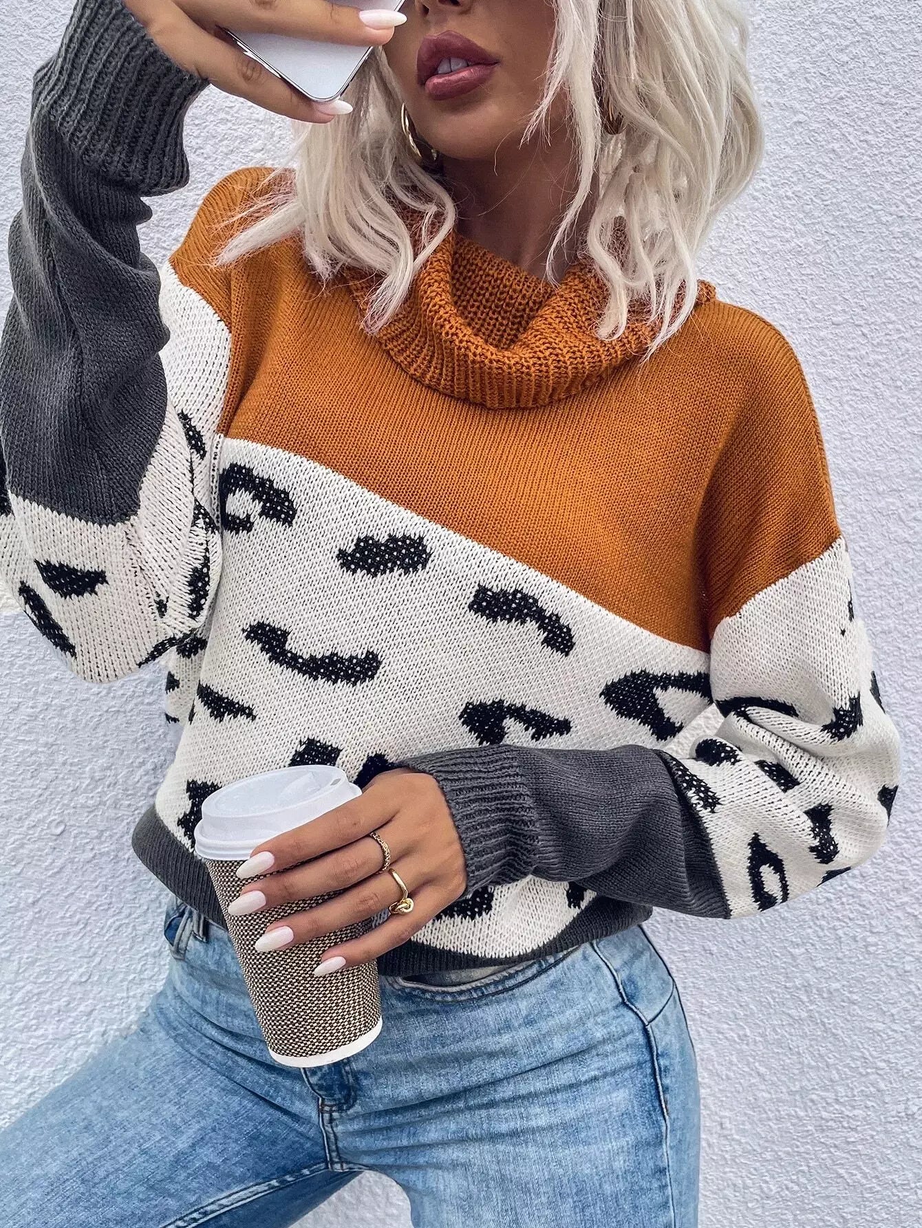 Turtleneck Graphic Pattern Drop Shoulder Sweater