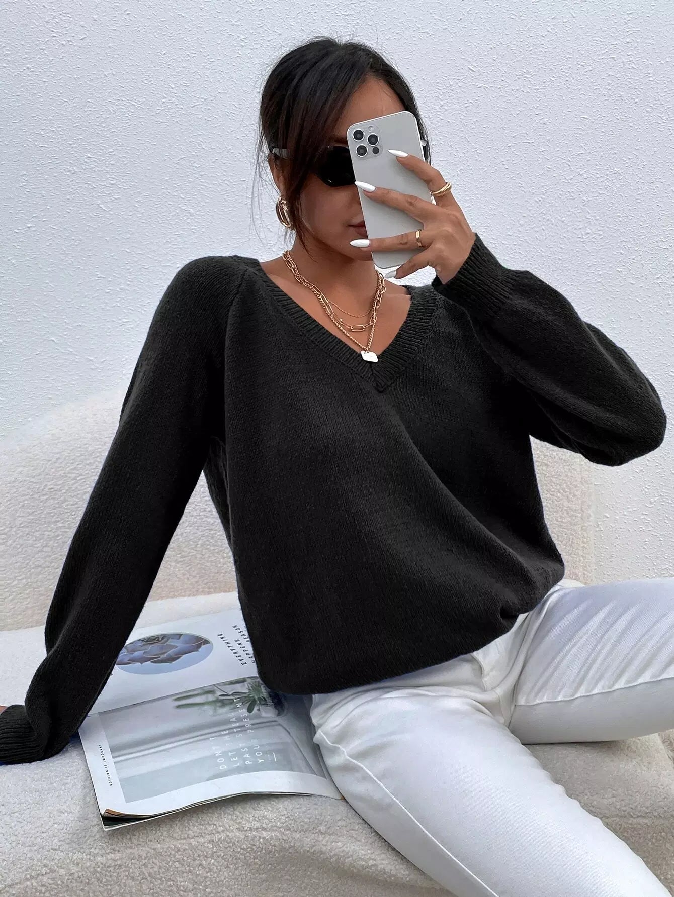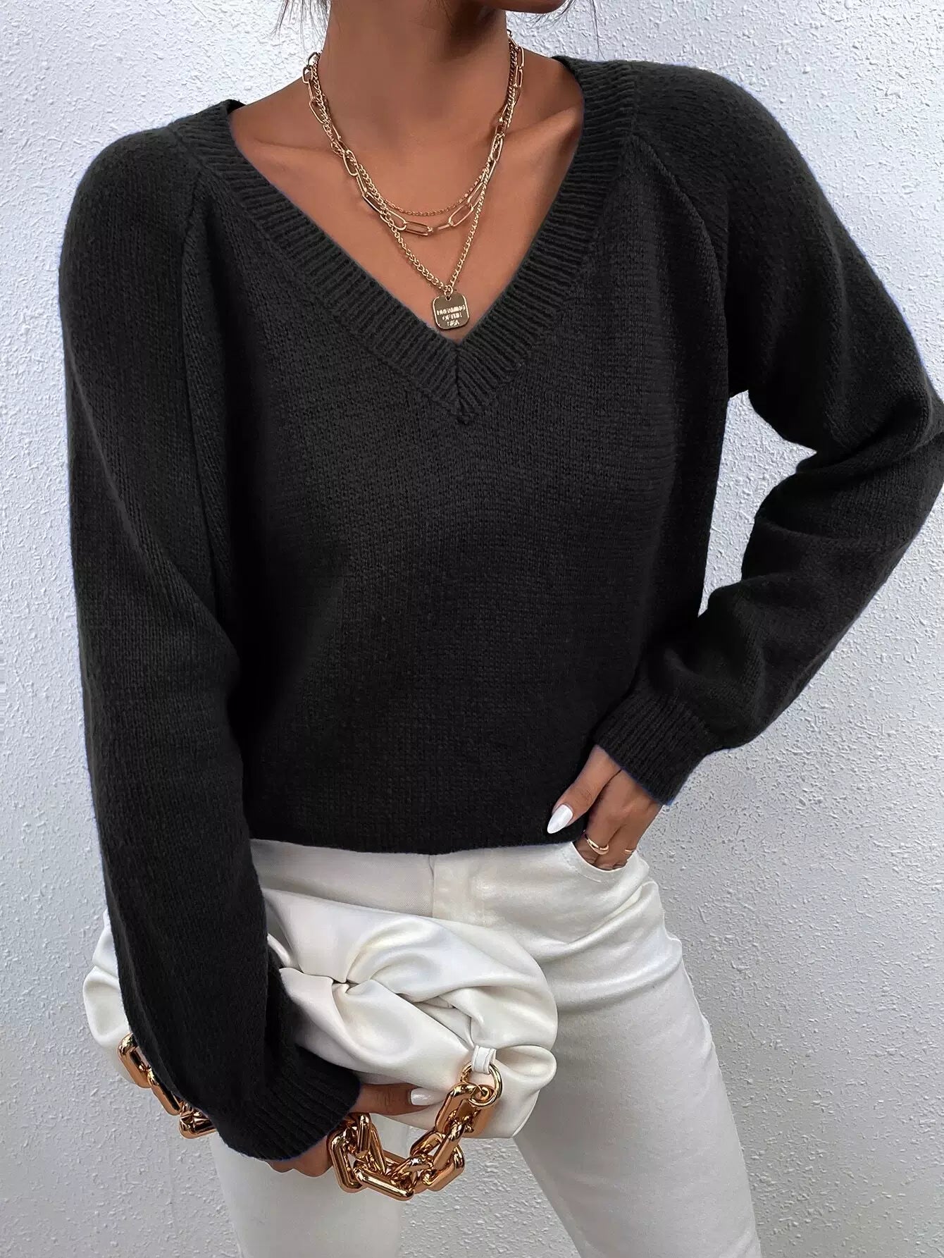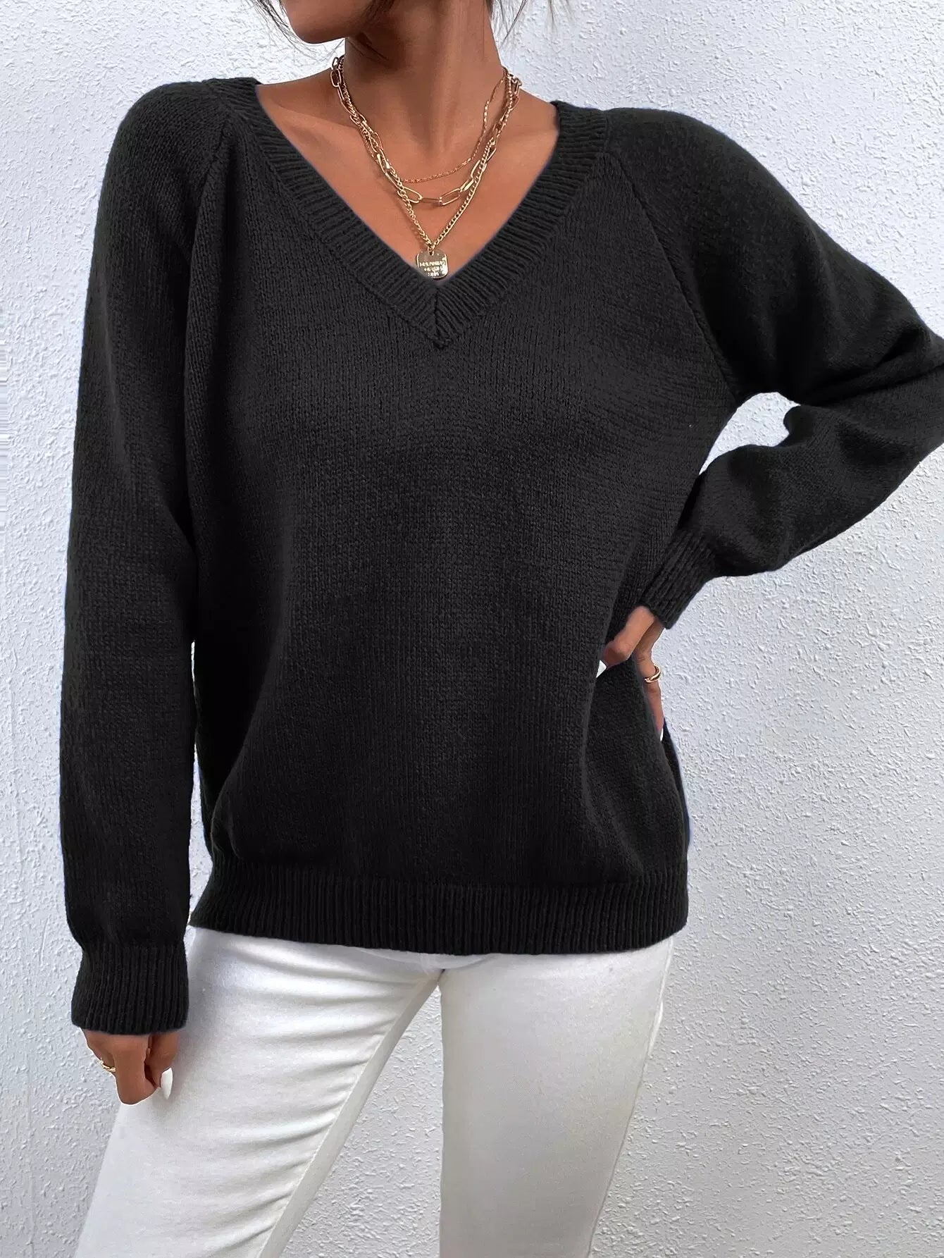 V Neck Raglan Sleeve Sweater