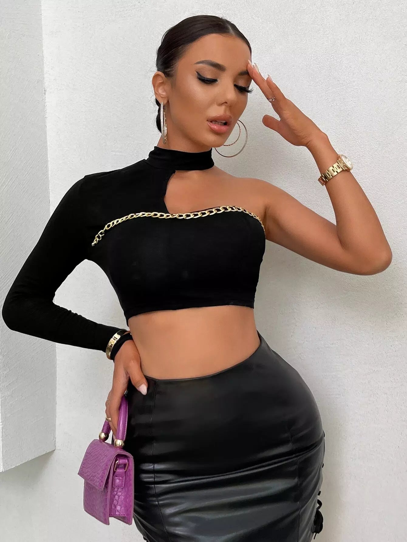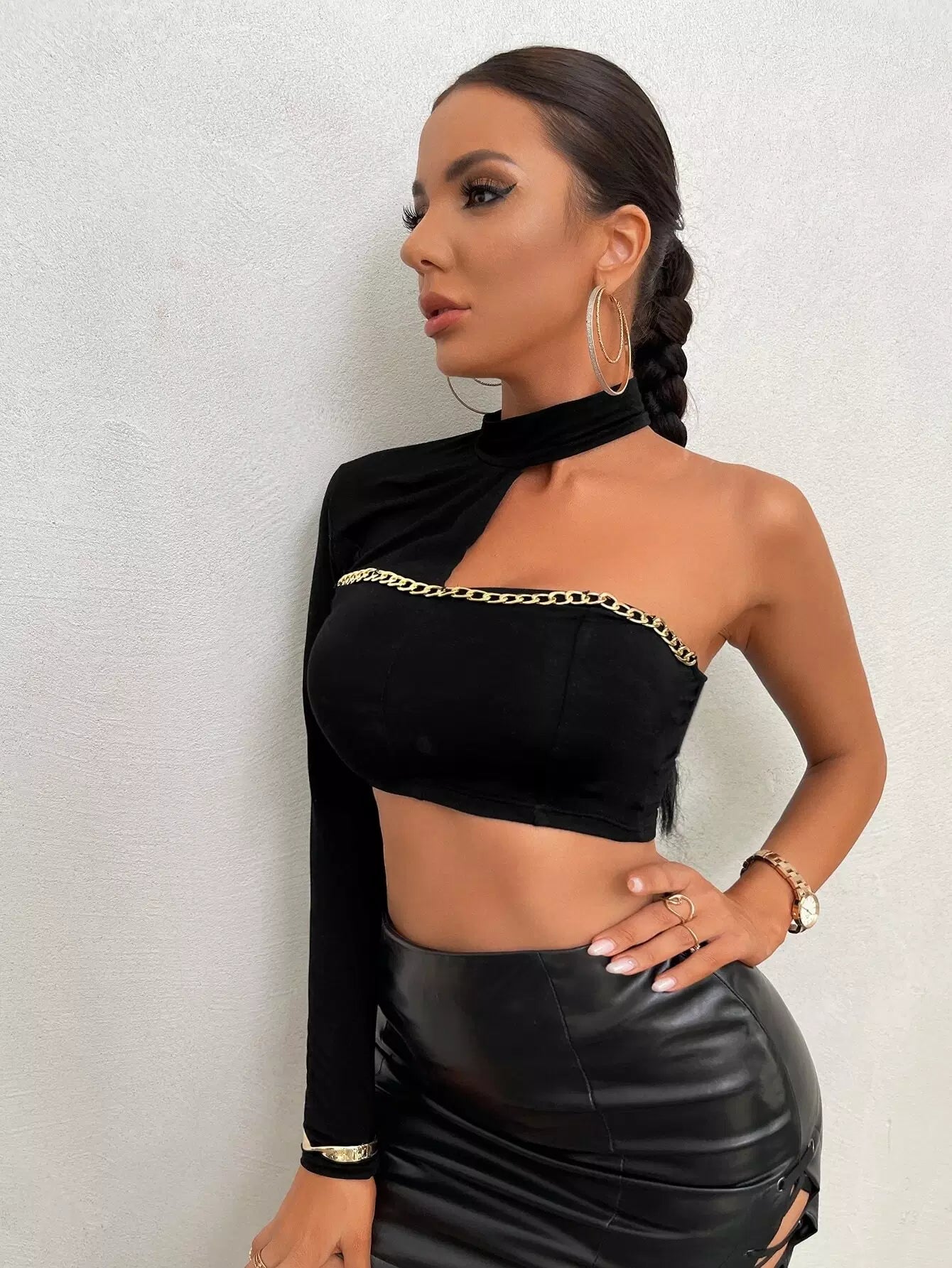 Asymmetrical Neck Chain Detail Crop Top