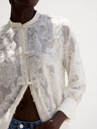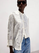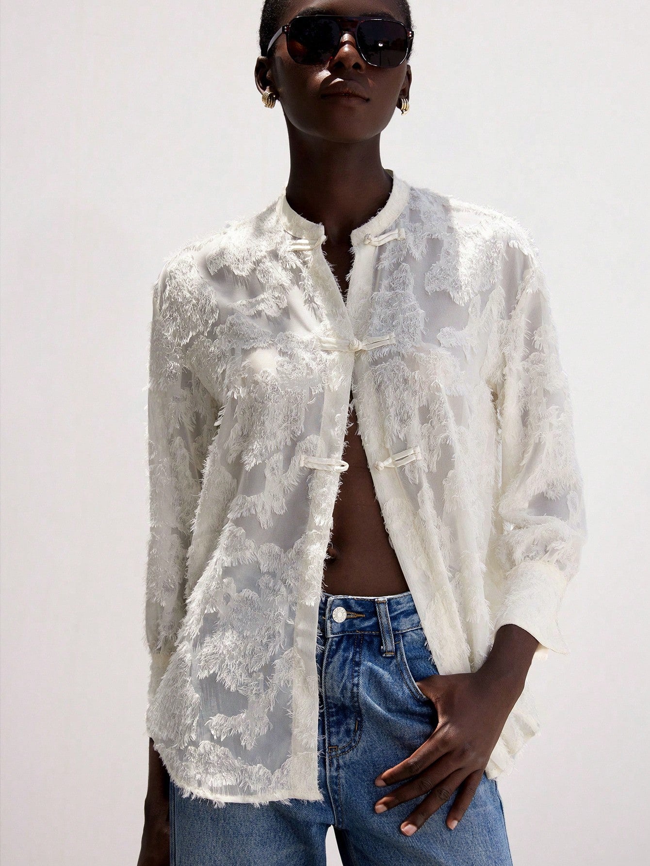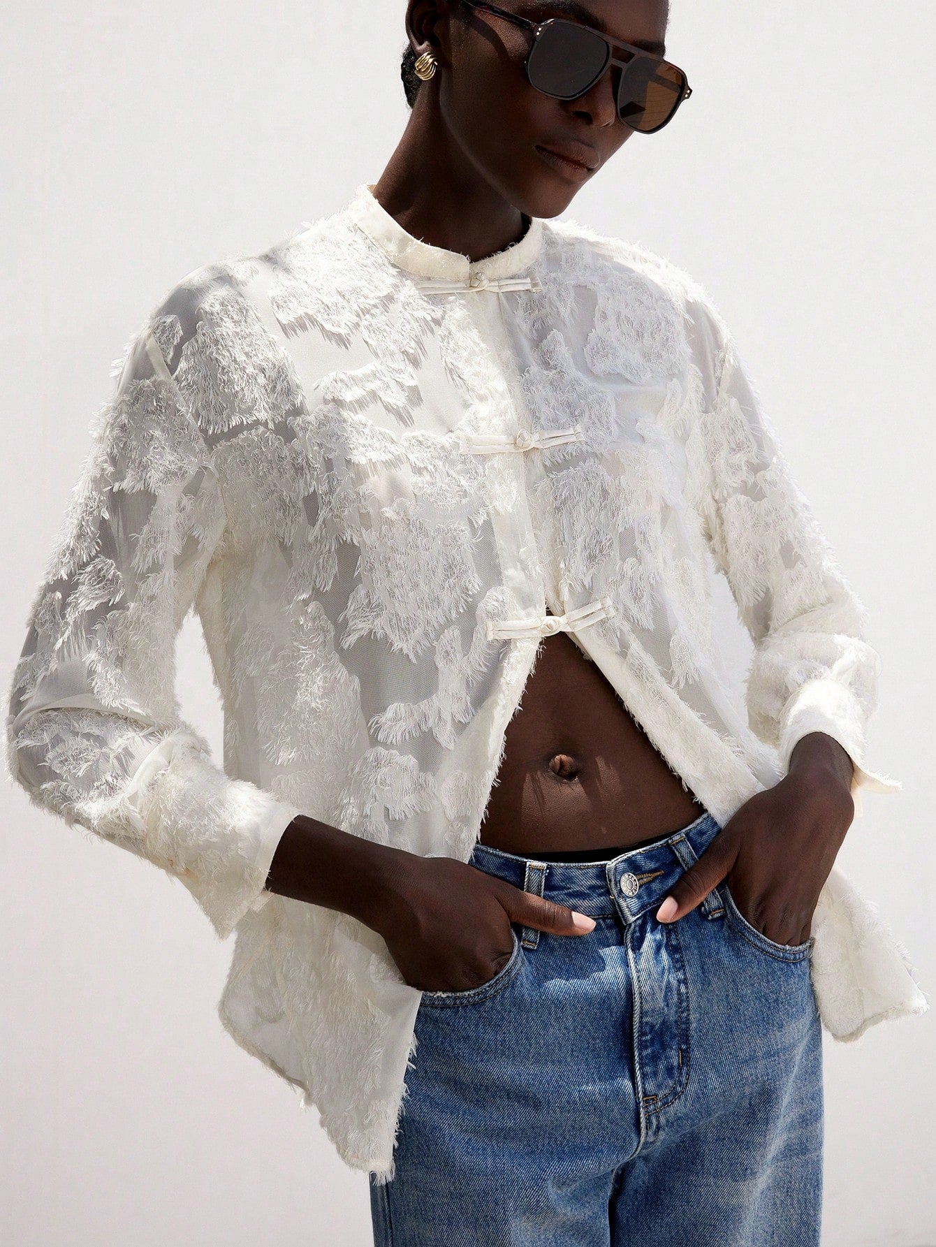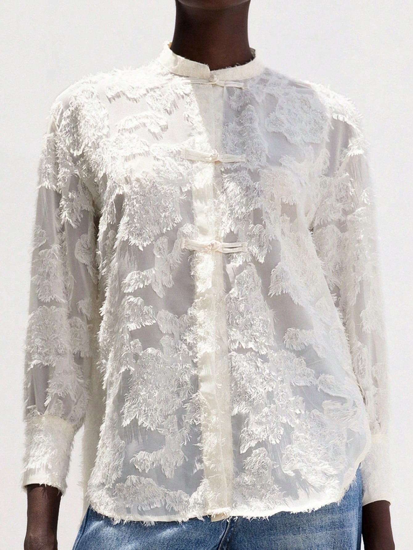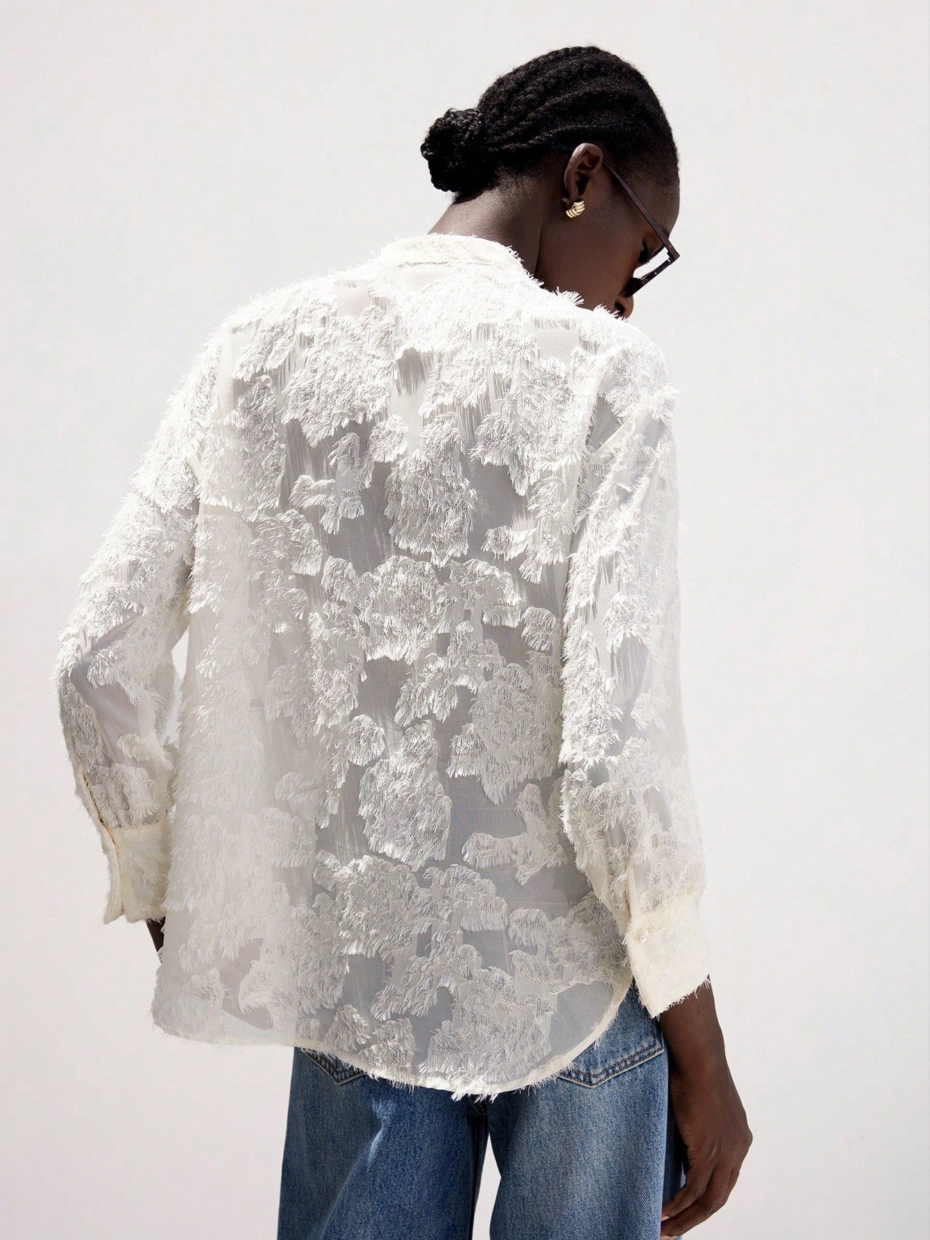 Aveloria Modichic Chiffon Cut-Out Floral Long Sleeve Blouse With Tassel Accents