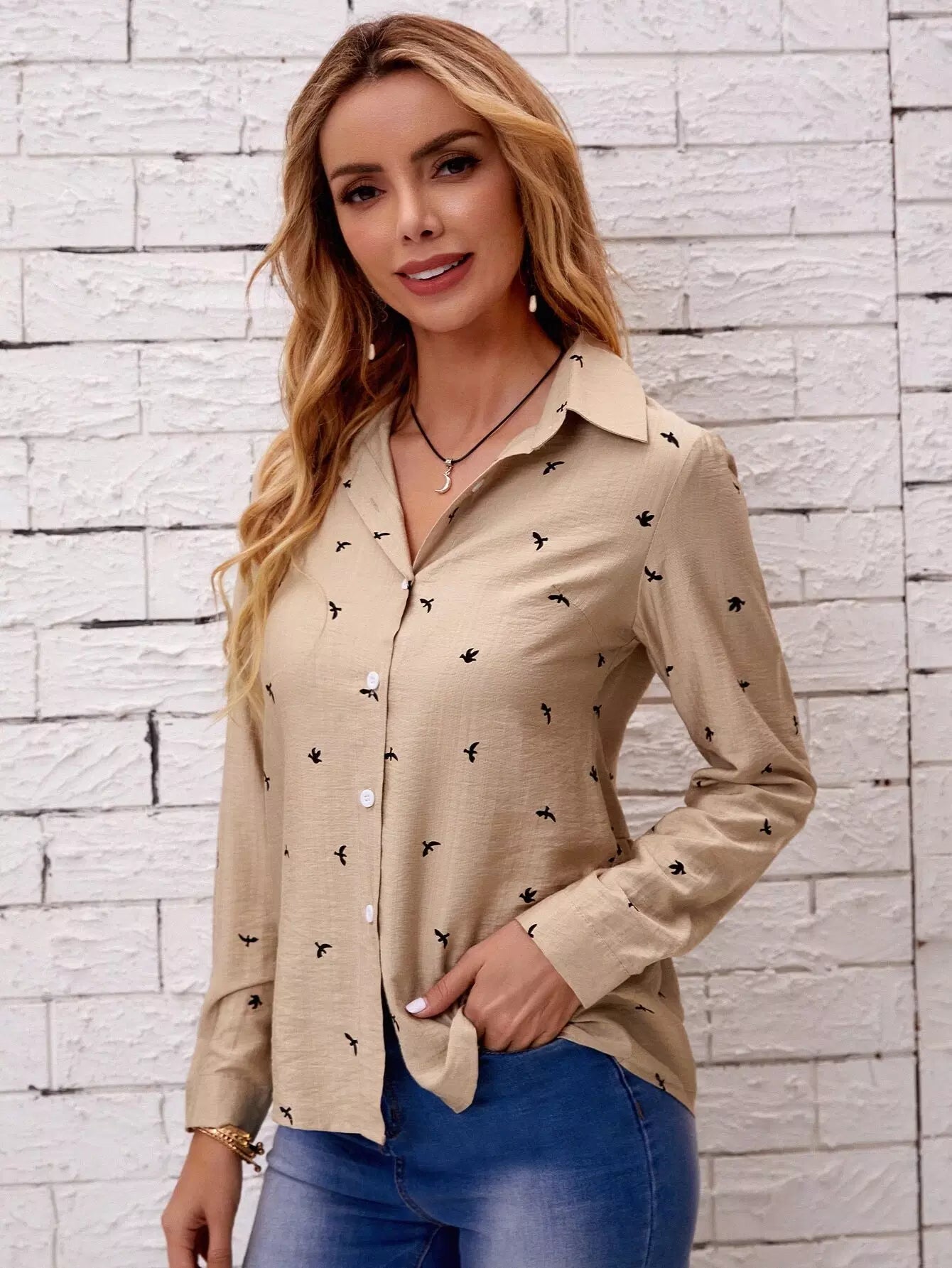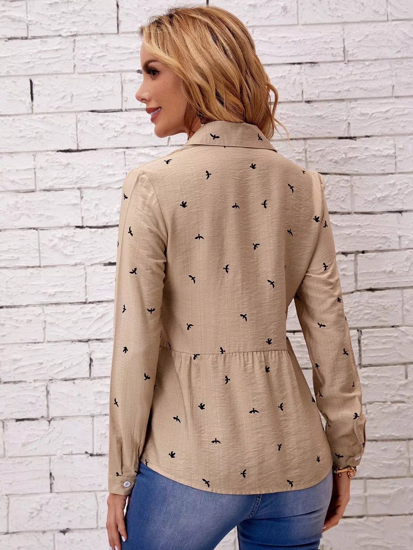 Bird Print Button Up Shirt