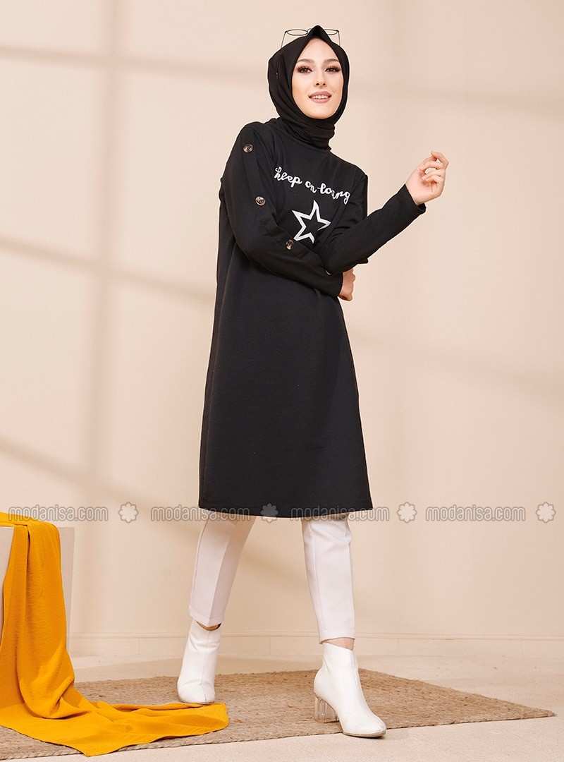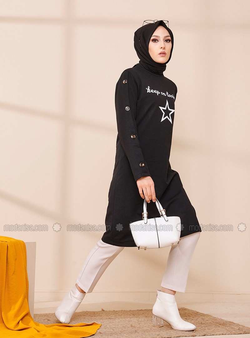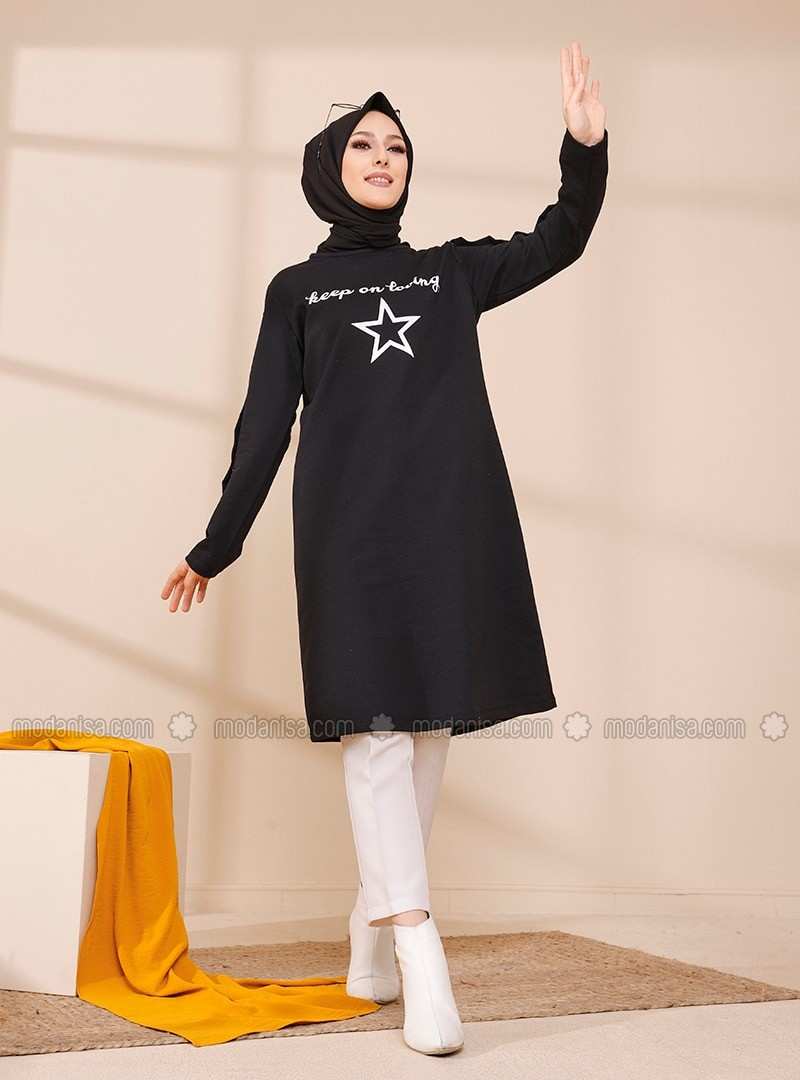 Black Printed Crew neck Tunic