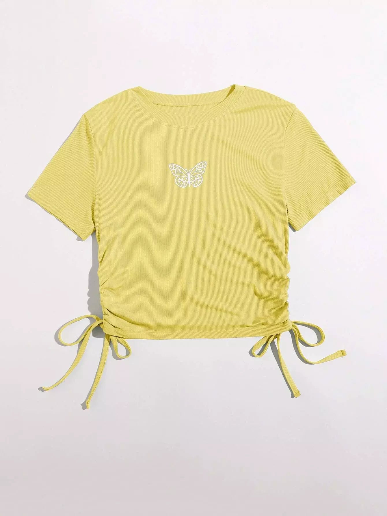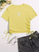 Butterfly Print Drawstring Side Tee