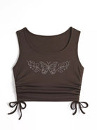 Butterfly Rhinestone Drawstring Ruched Ribbed Tank Top