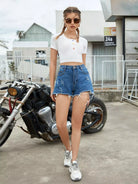 Button Half Placket Crop Tee