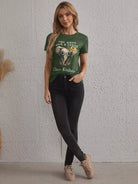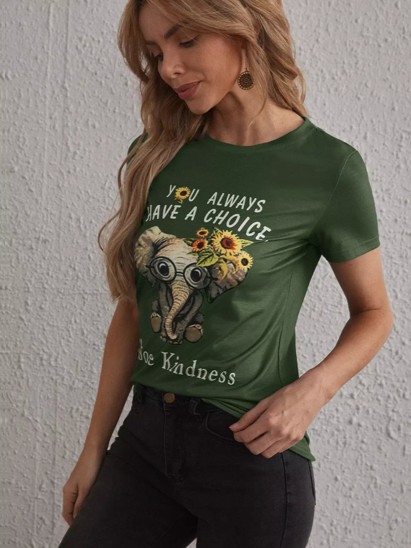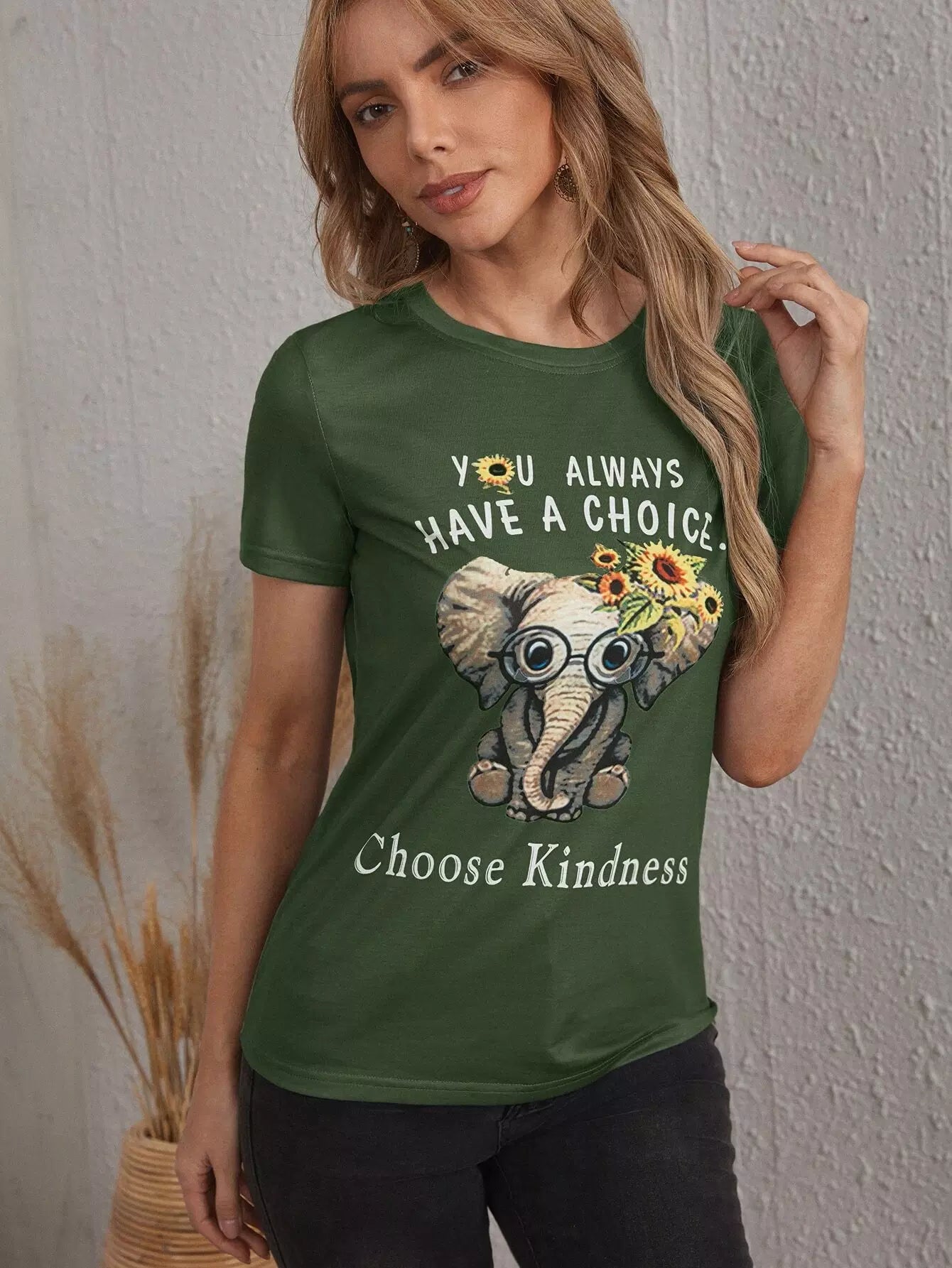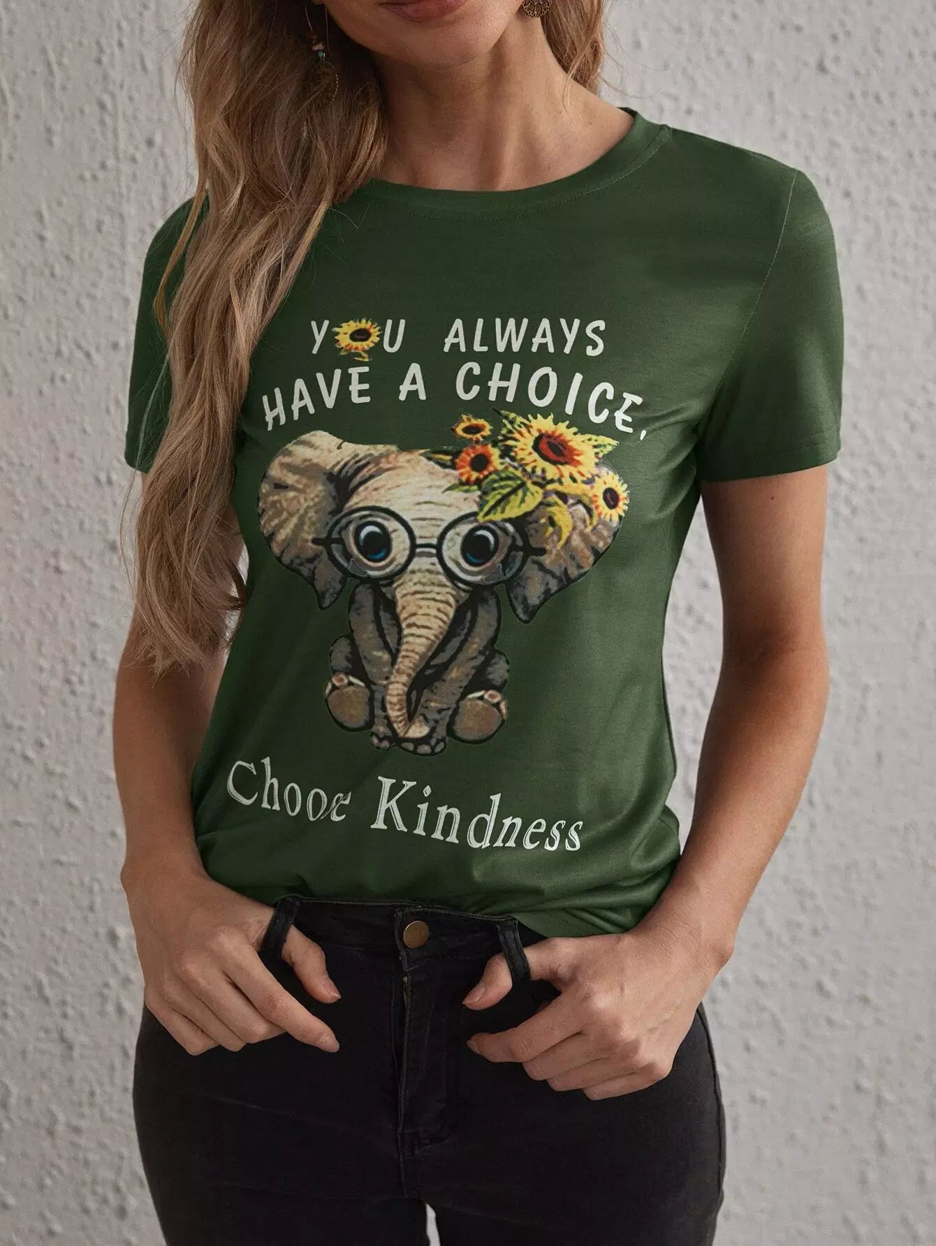 Cartoon Elephant & Slogan & Sunflower Print Tee