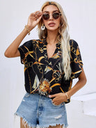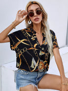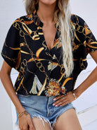 Chain Print Notch Neck Blouse