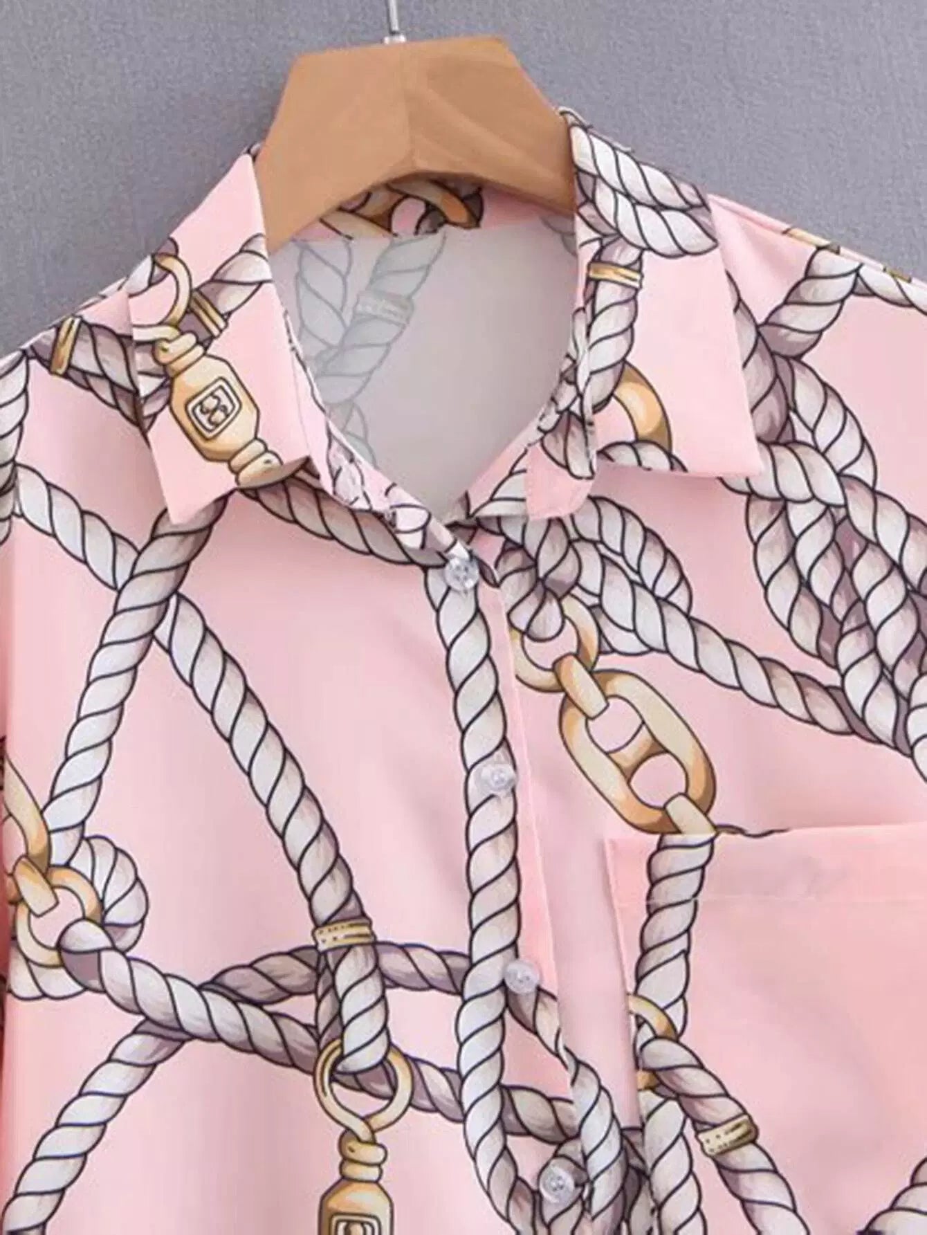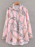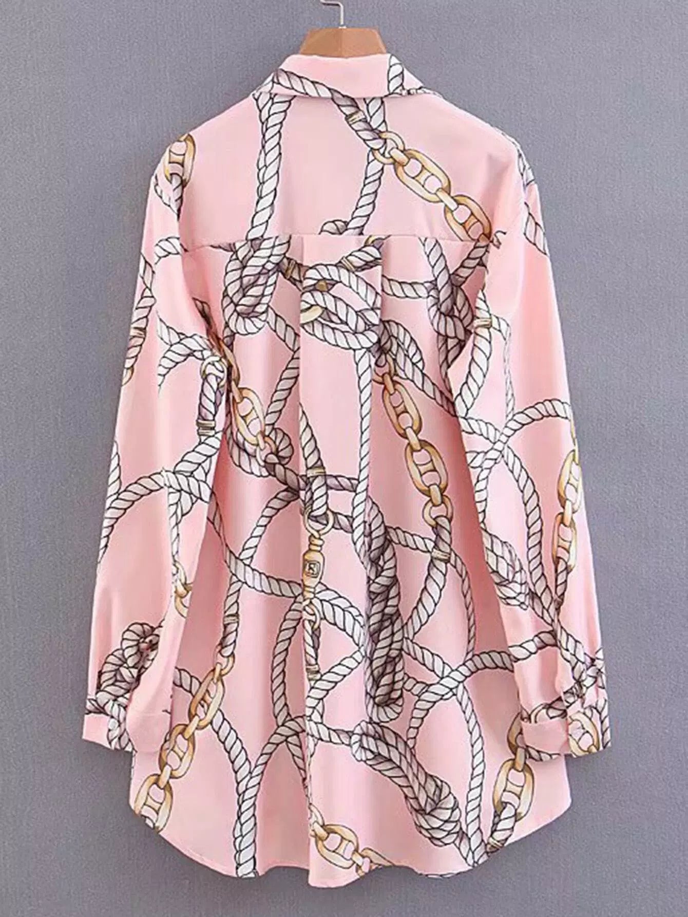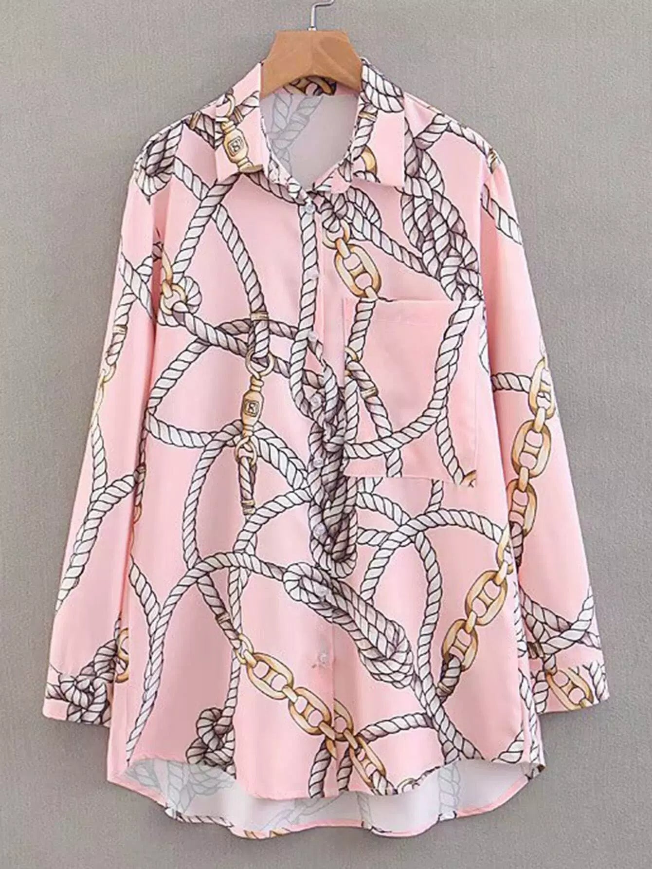 Chain & Rope Print Dip Hem Pocket Shirt