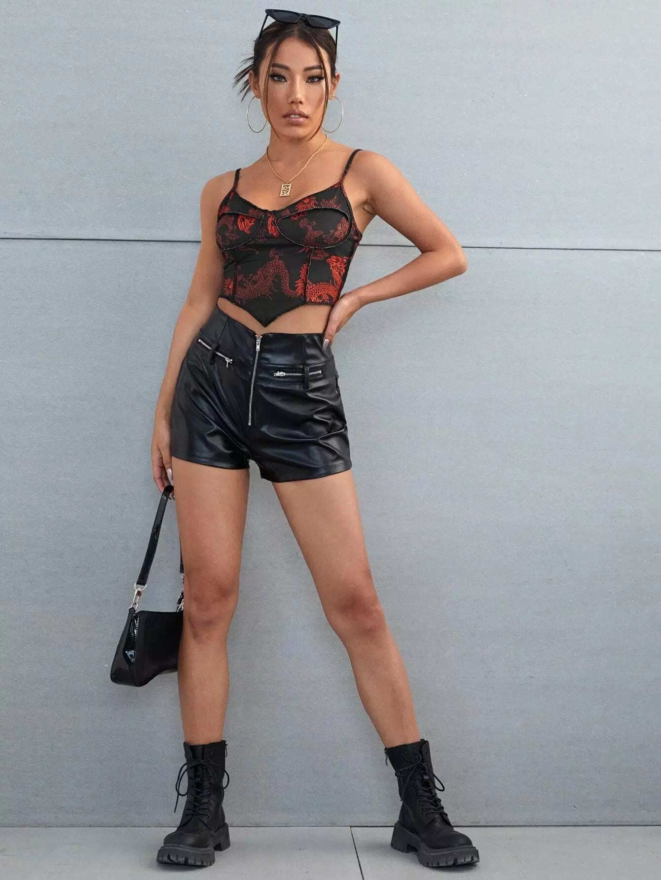 Chinese Dragon Print Asymmetrical Hem Bustier Crop Cami Top
