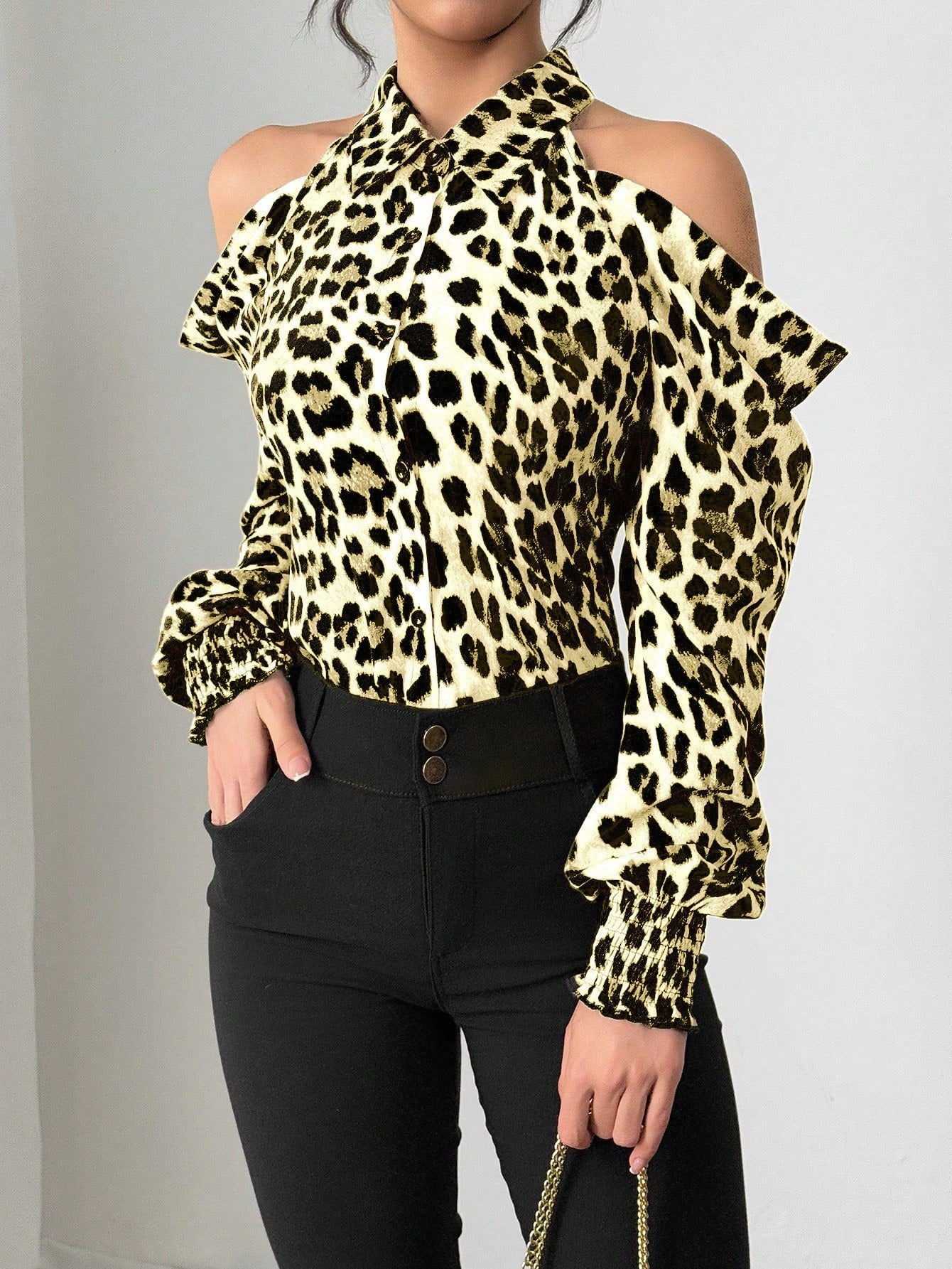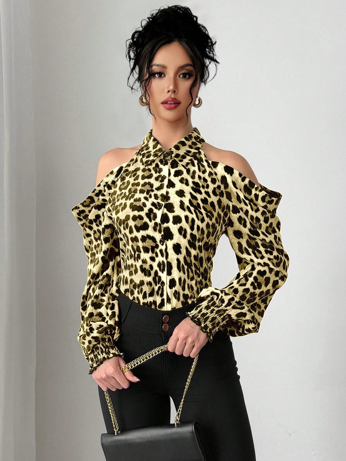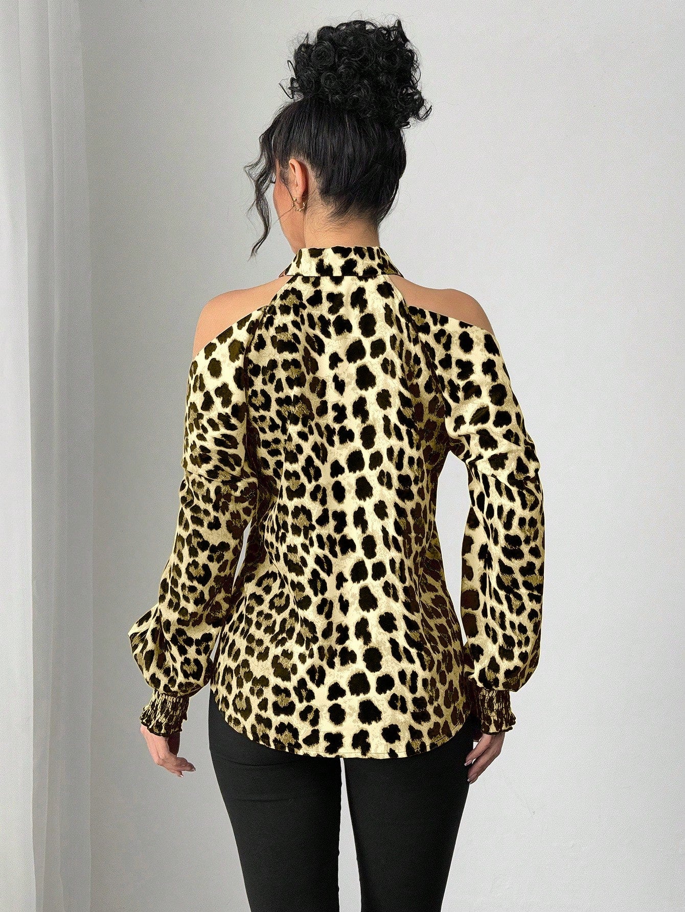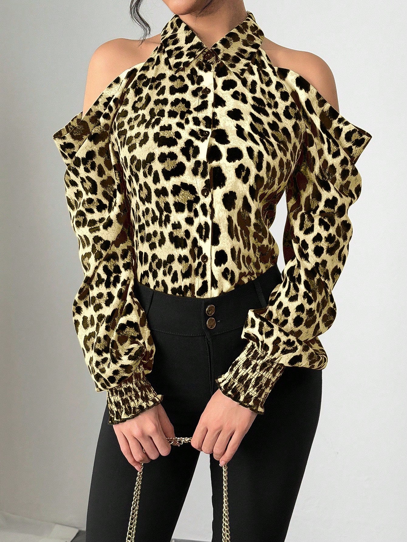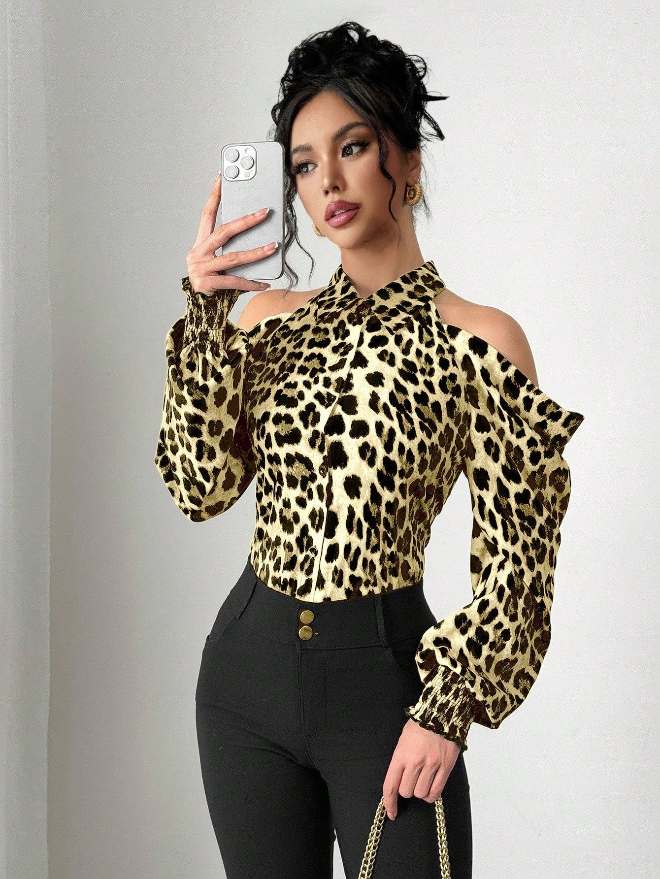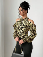 Chiquease Women's Long Sleeve Blouse, Sexy Animal Pattern Open Shoulder Shirt, Spring/Summer