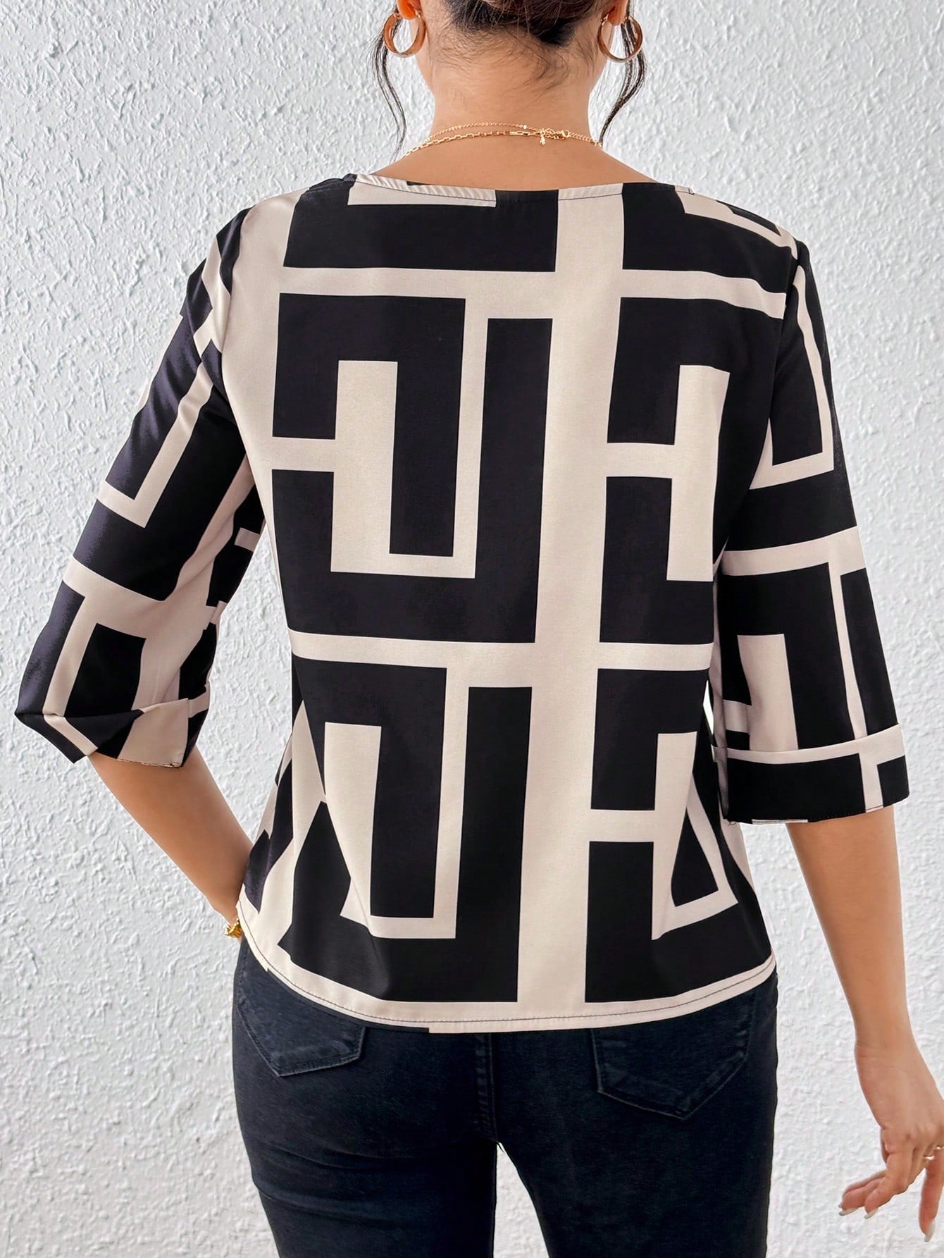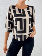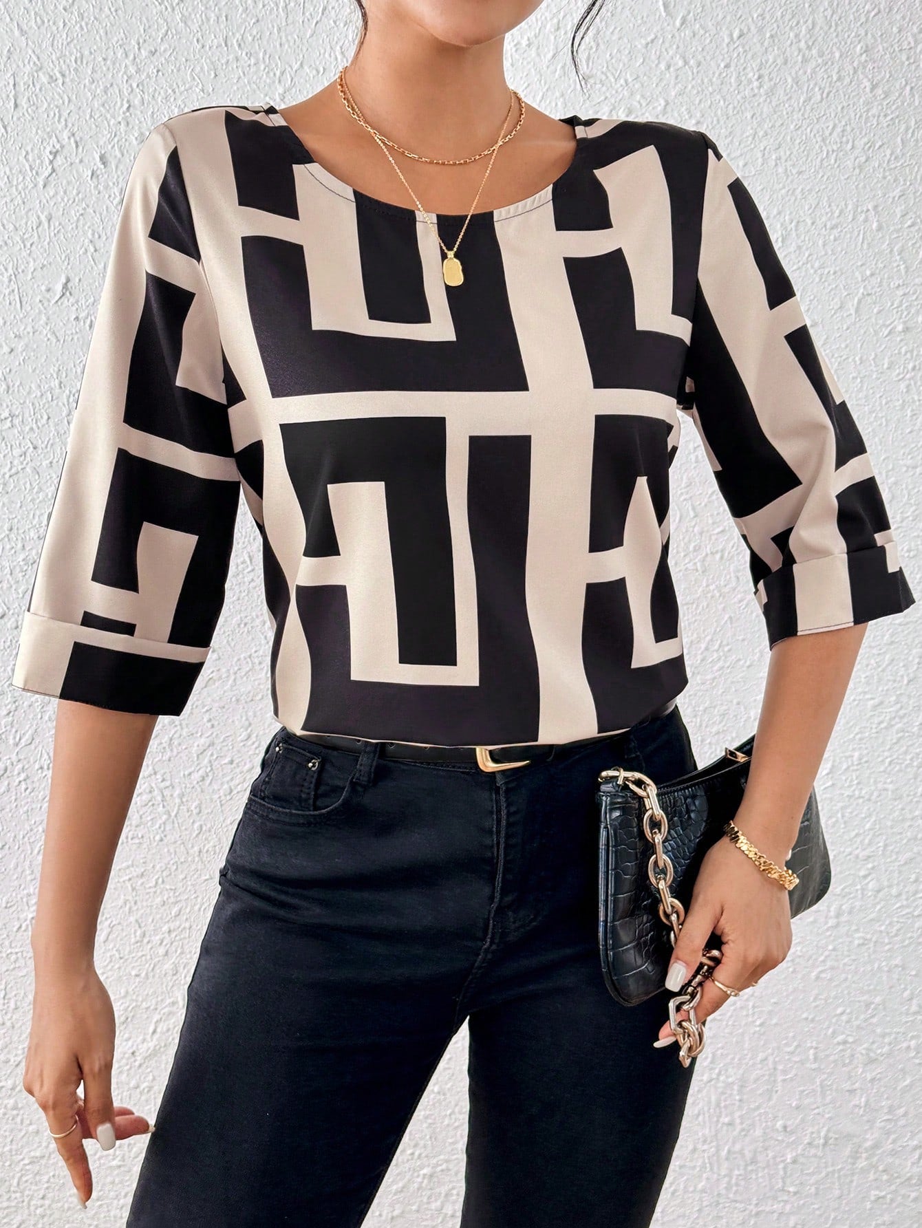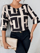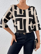 Chiquease Women's Summer Geometric Print Round Neck Short Sleeve Casual Shirt
