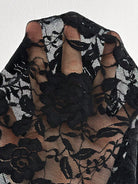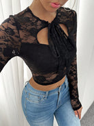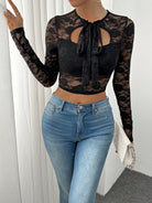 Chiquease Women's Tie Neck Cut-Out Slim Fit Lace Long Sleeve Black T-Shirt Fall Cloth For Women