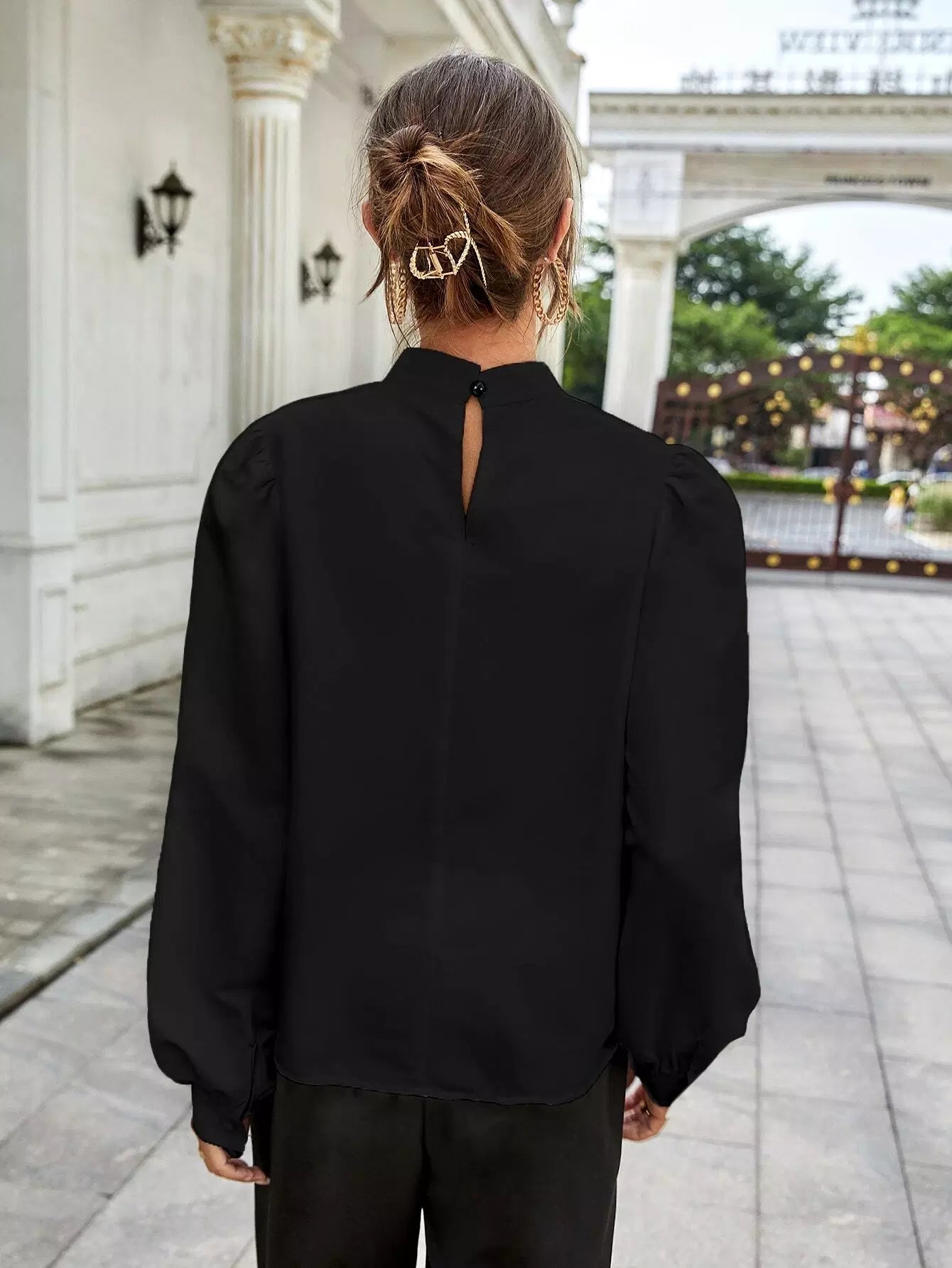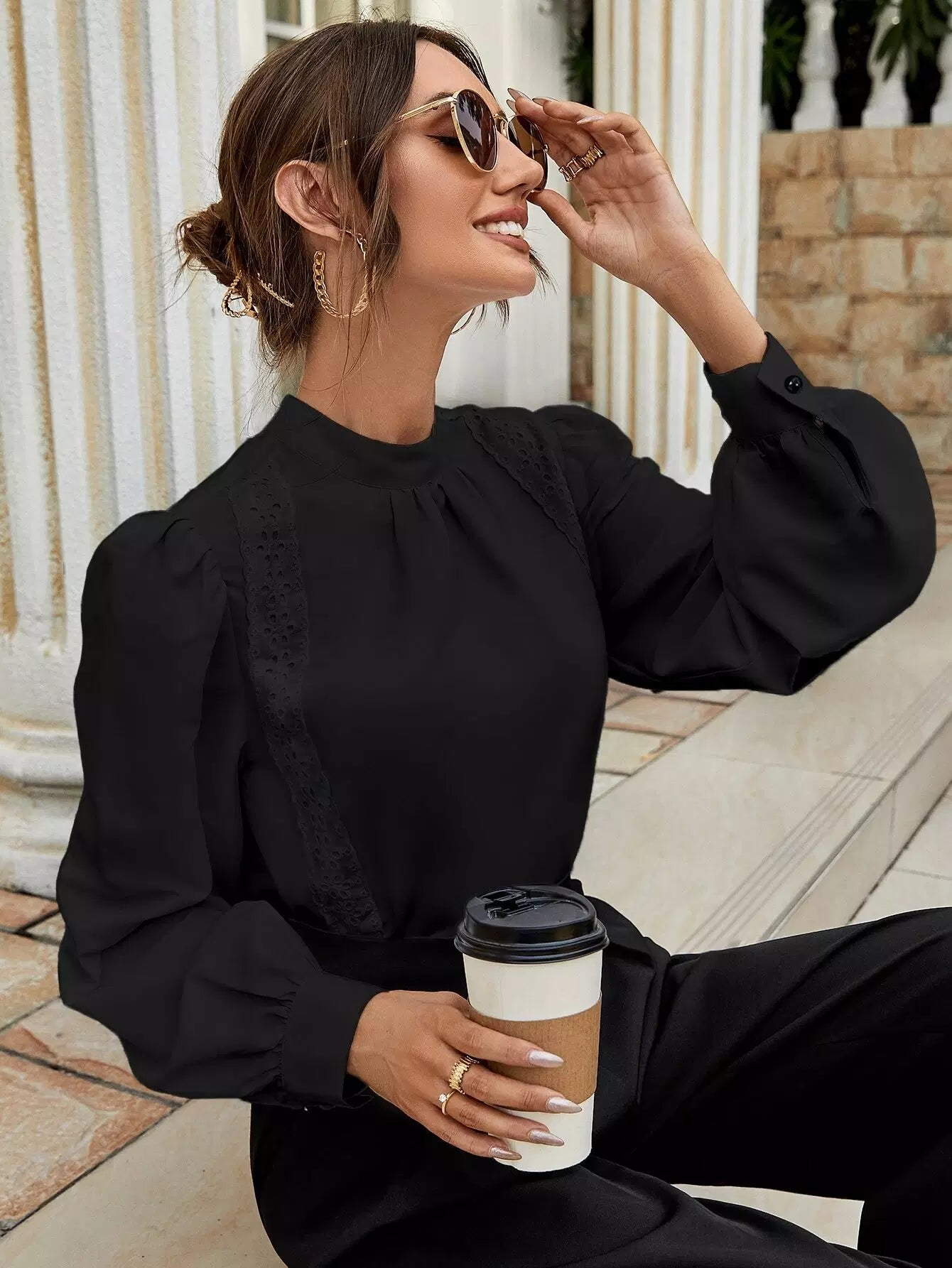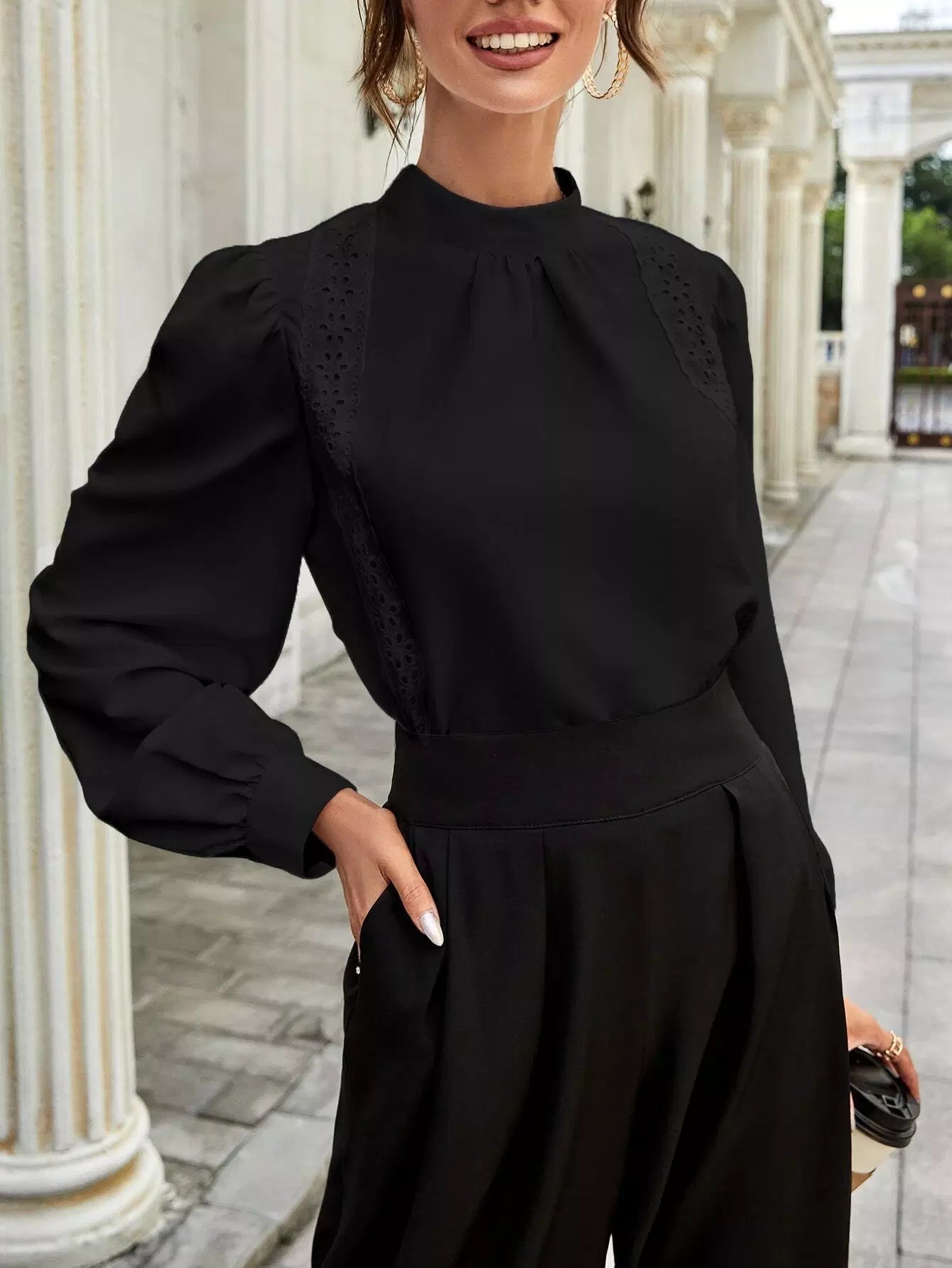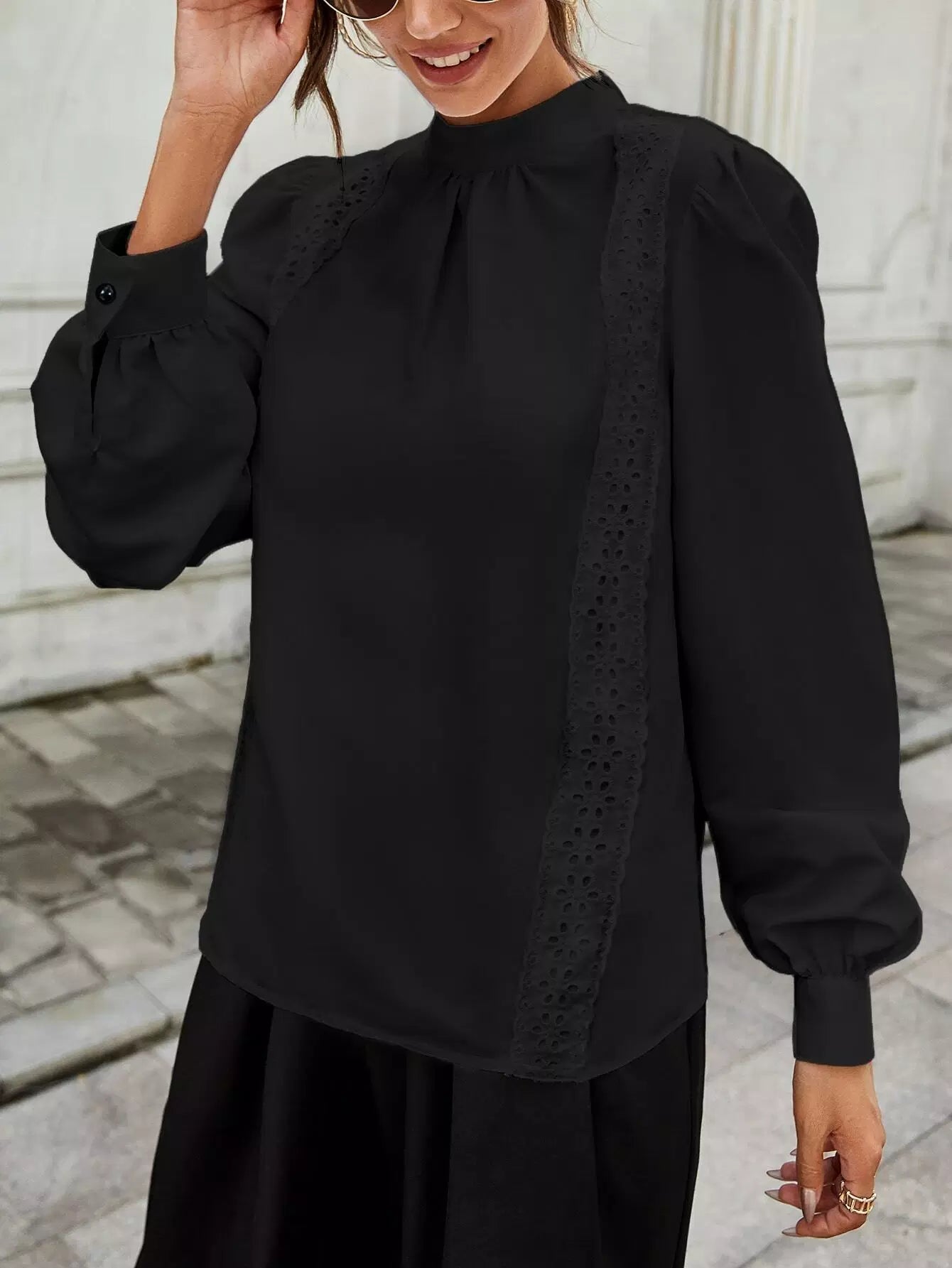 Contrast Eyelet Embroidery Puff Sleeve Blouse