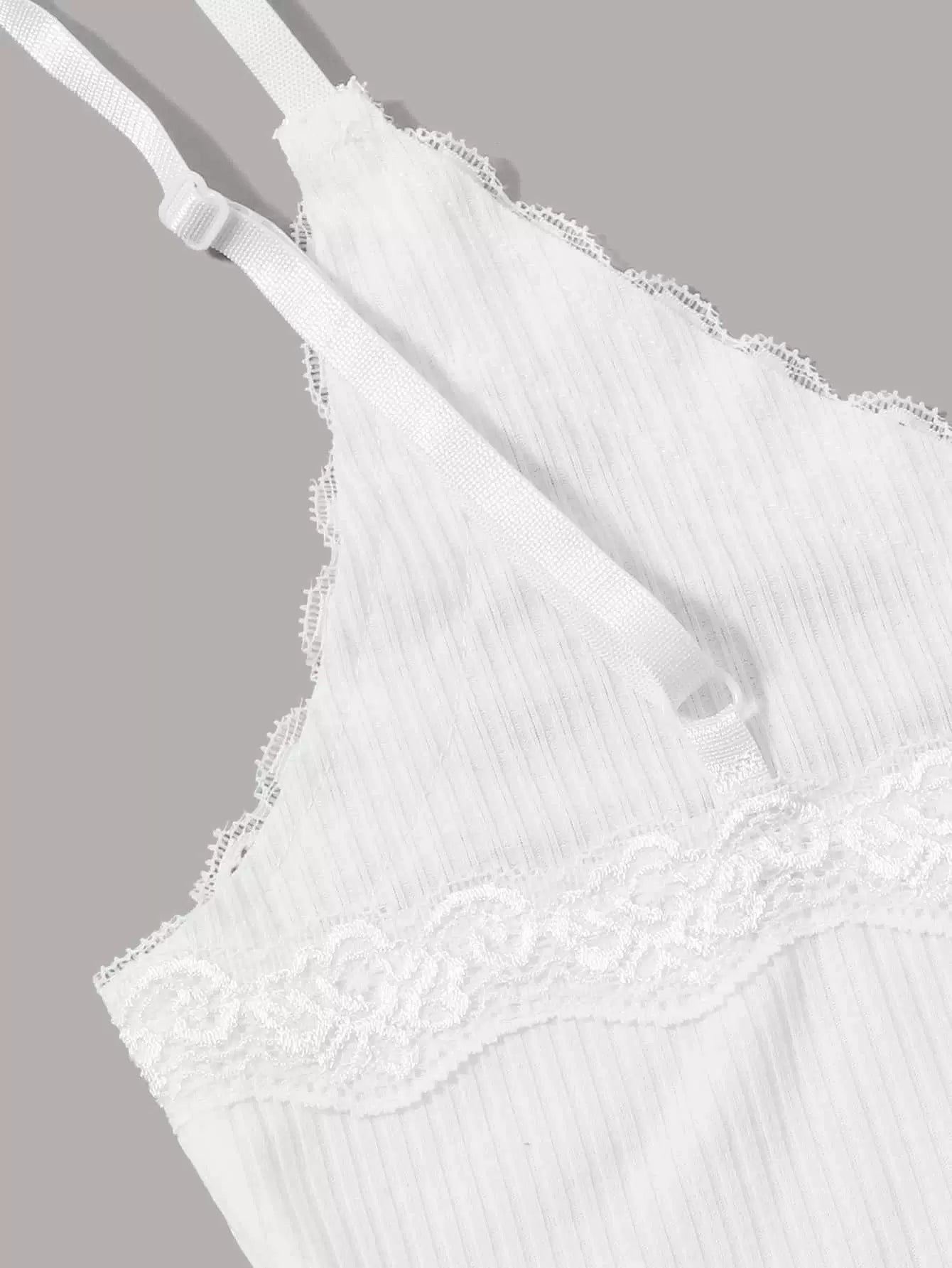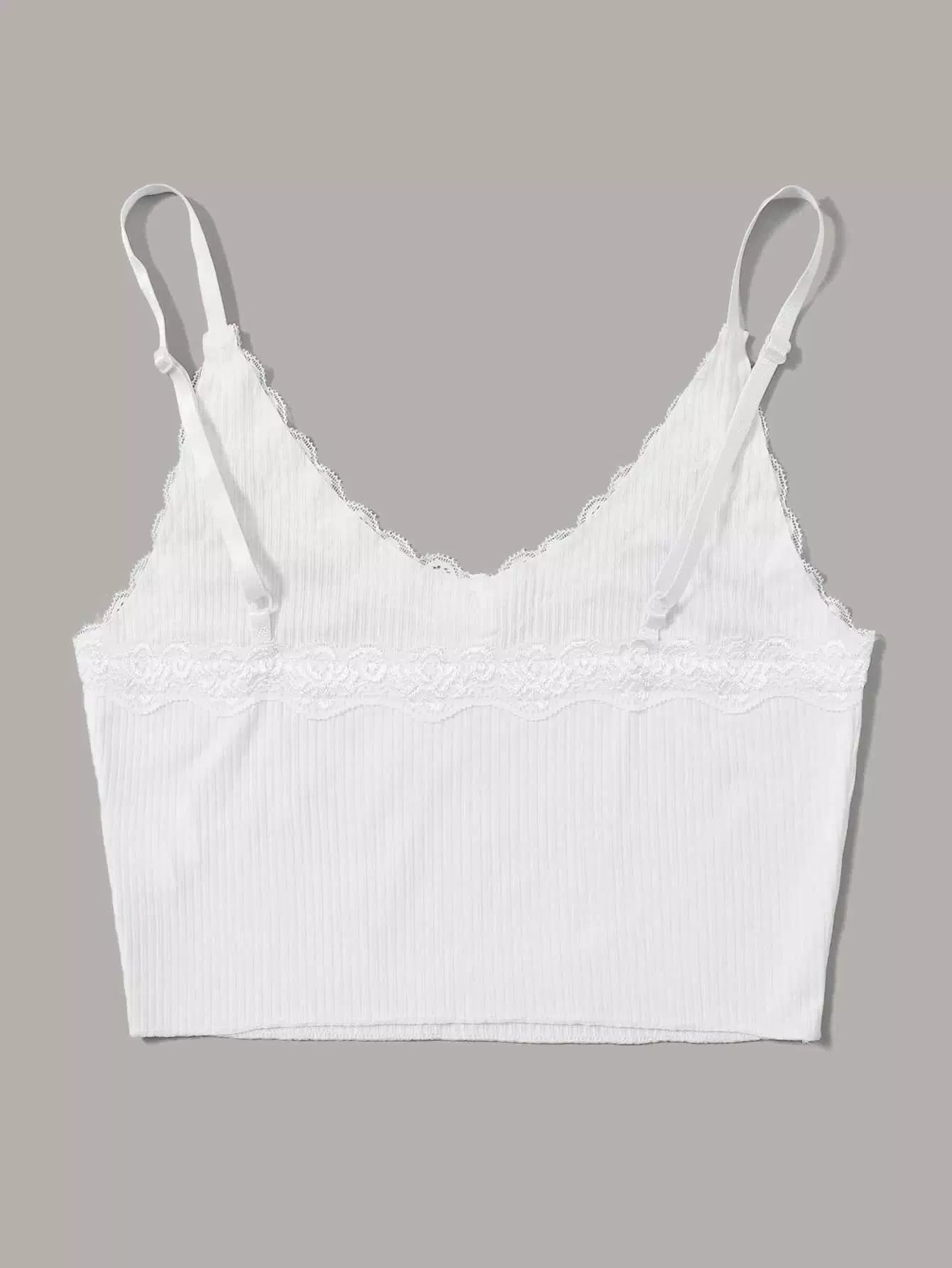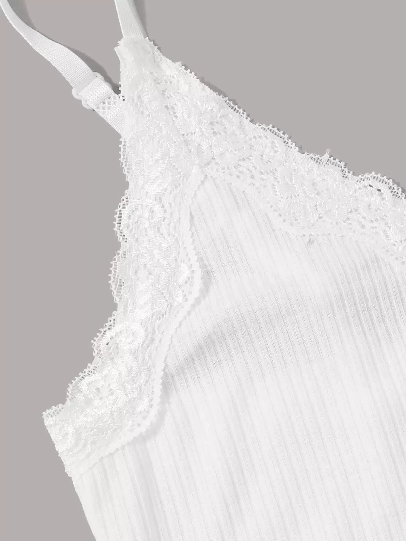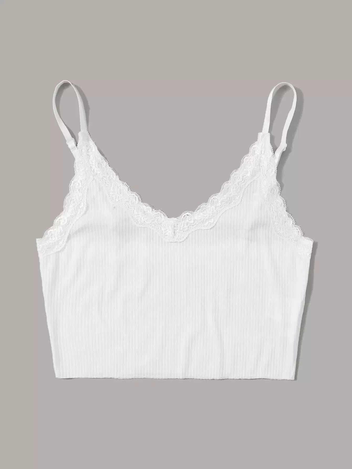 Contrast Lace Ribbed Crop Cami Top