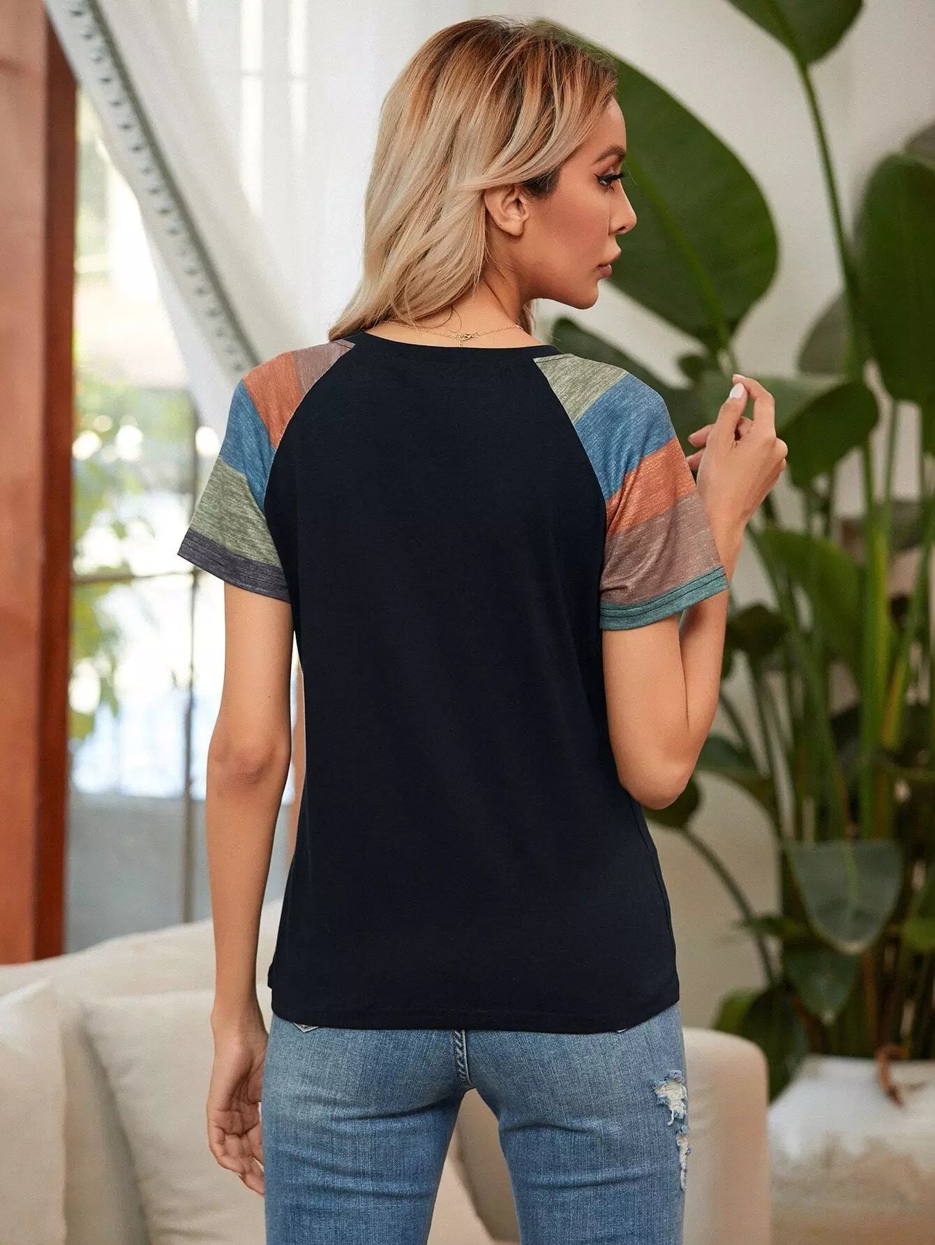 Contrast Panel Raglan Sleeve Tee