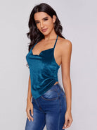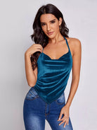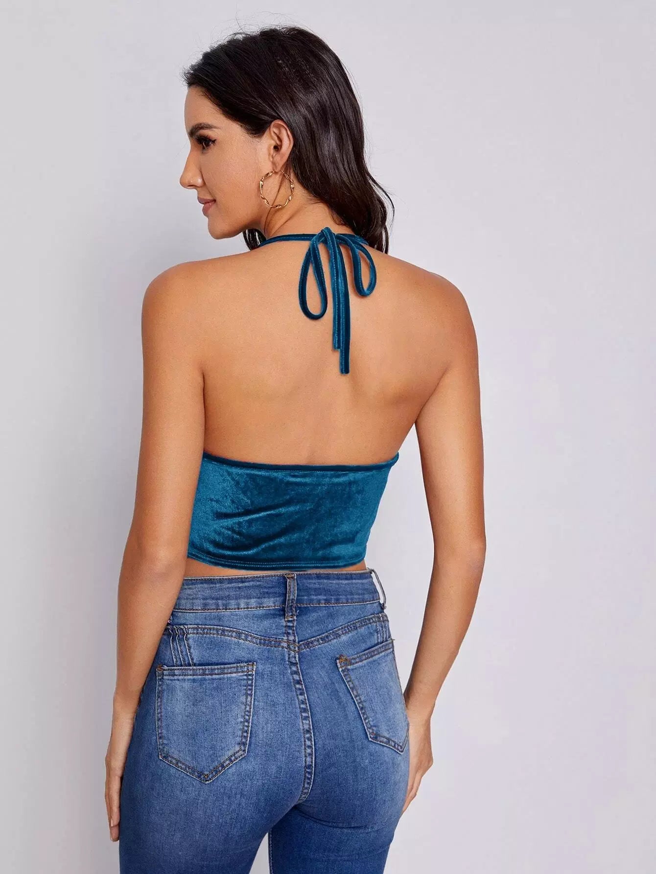 Cowl Neck Tie Back Bandana Velvet Halter Top