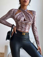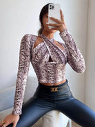 Crisscross Tie Back Snakeskin Crop Tee