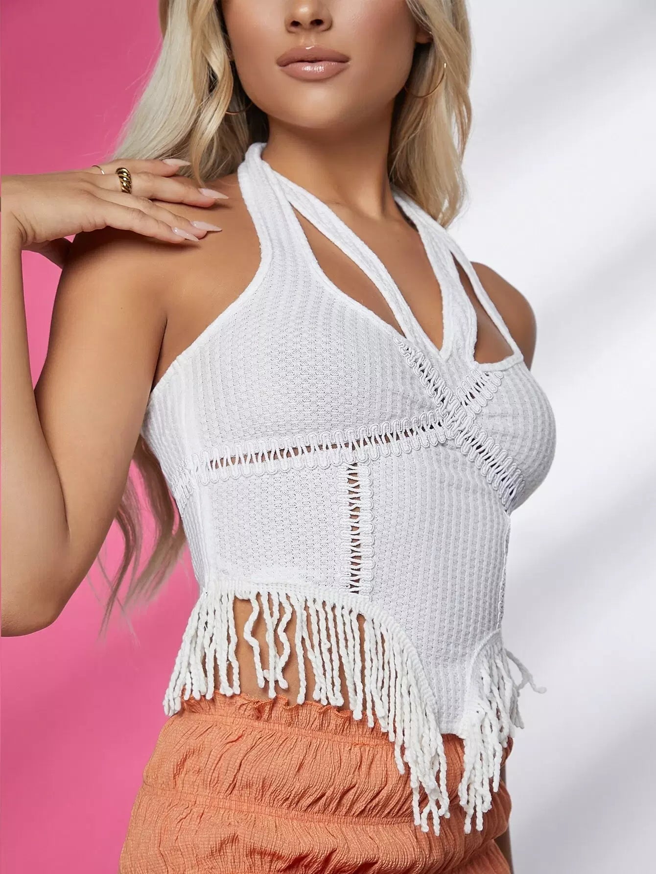 Crochet Knit Cutout Fringe Top