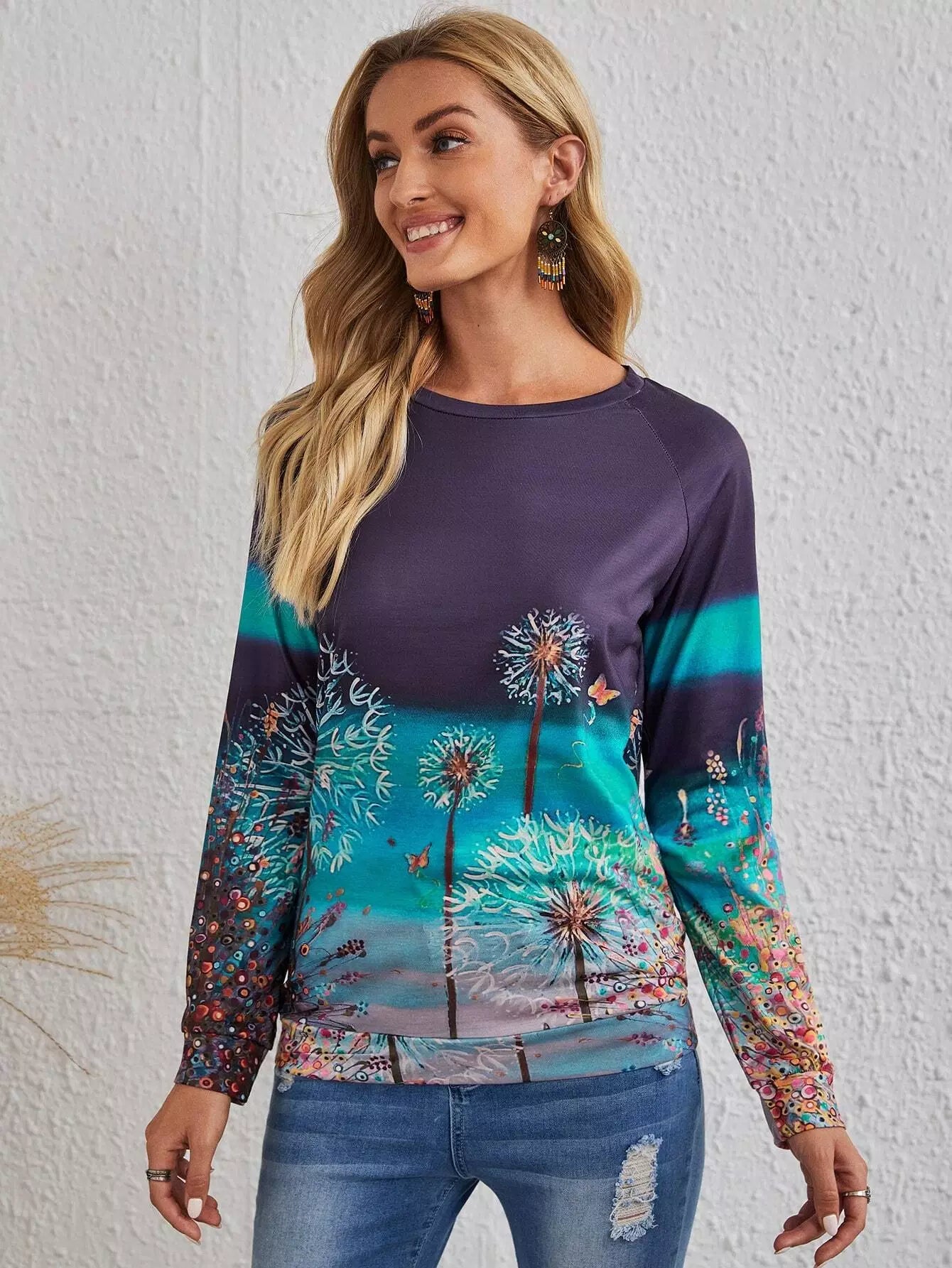Women - Dandelion & Butterfly Print Sweatshirt