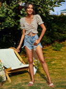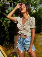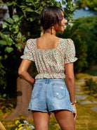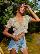 Ditsy Floral Drawstring Front Milkmaid Blouse