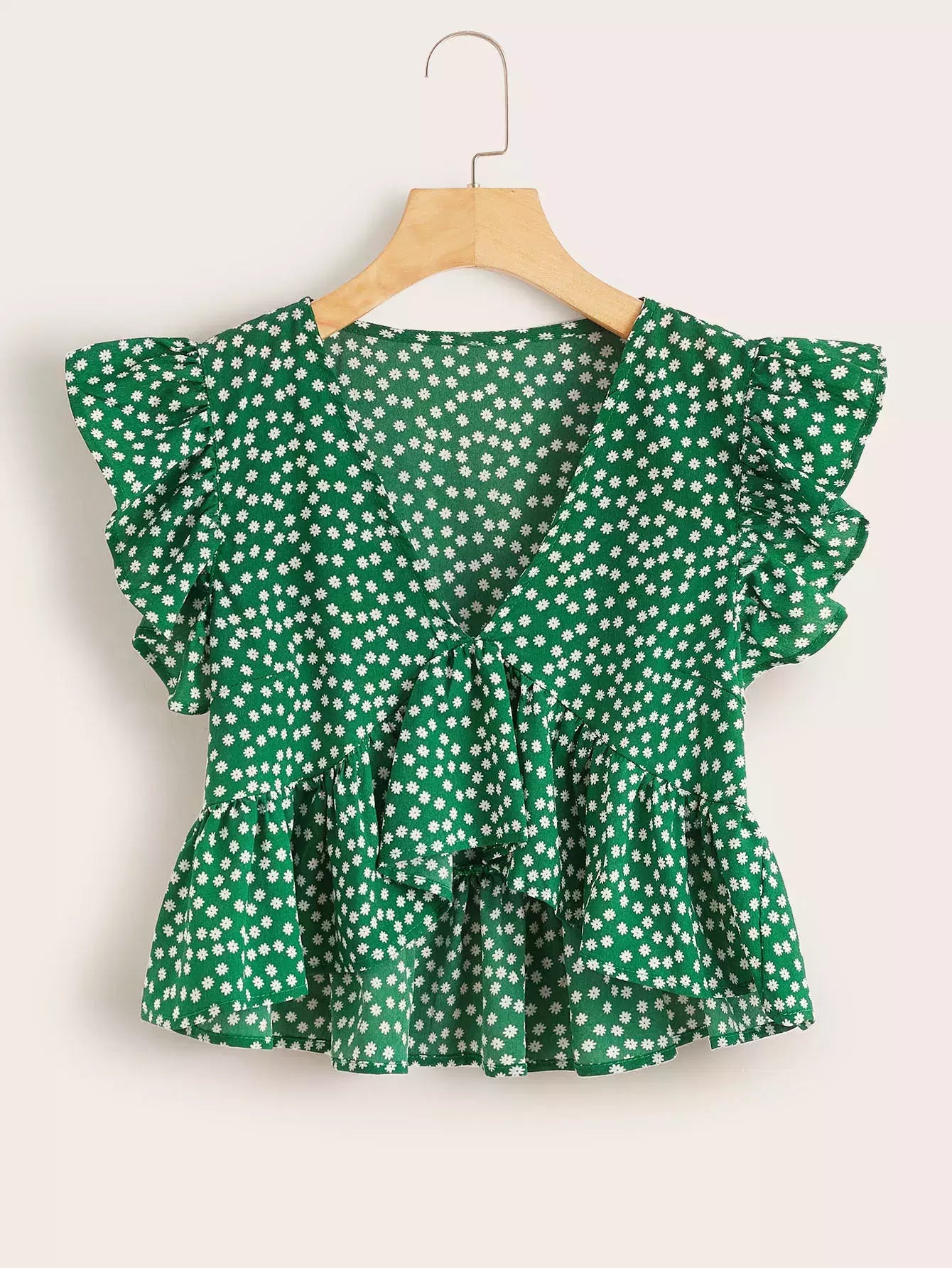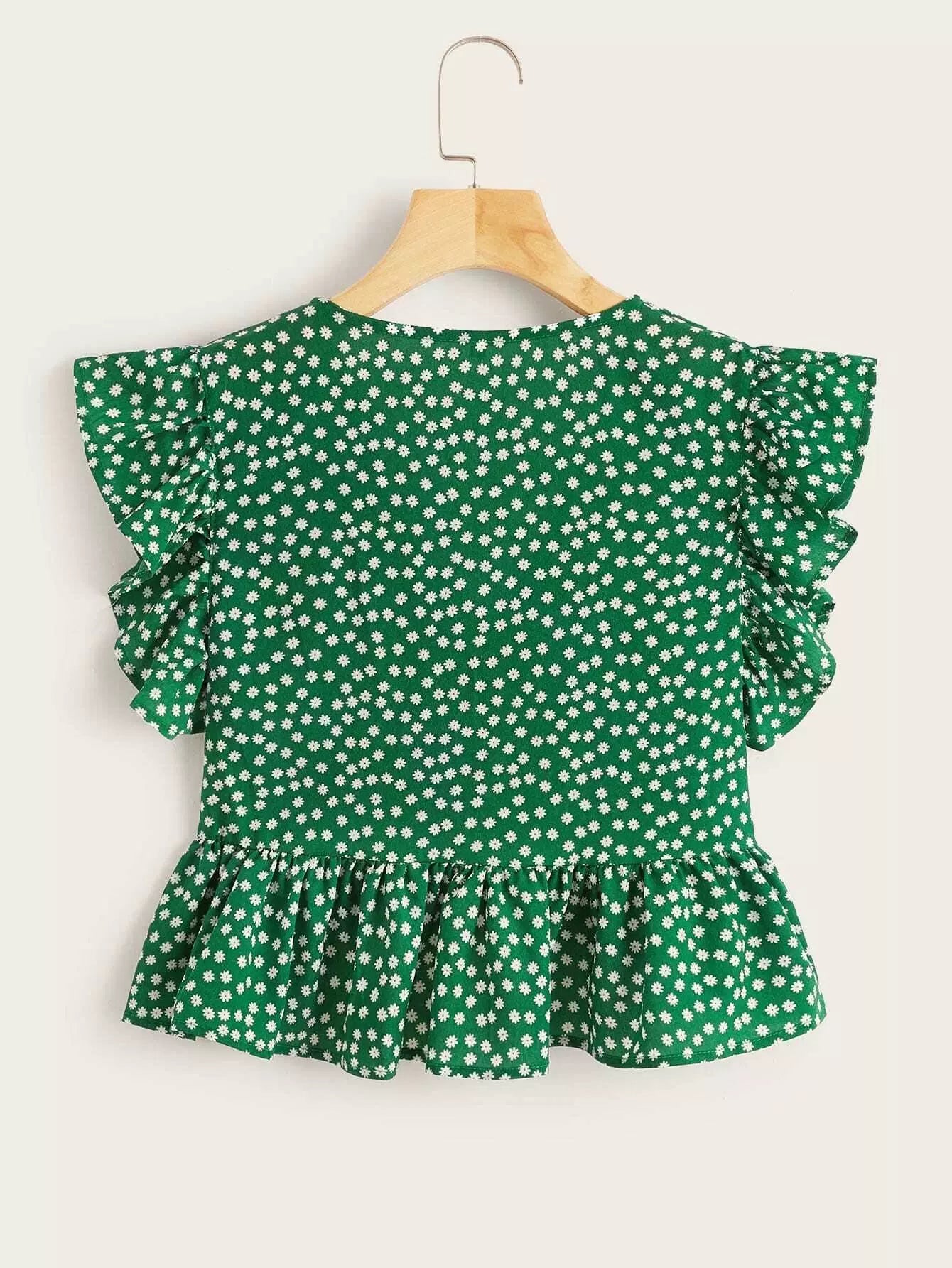 Ditsy Floral Print Butterfly Sleeve Top