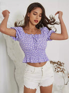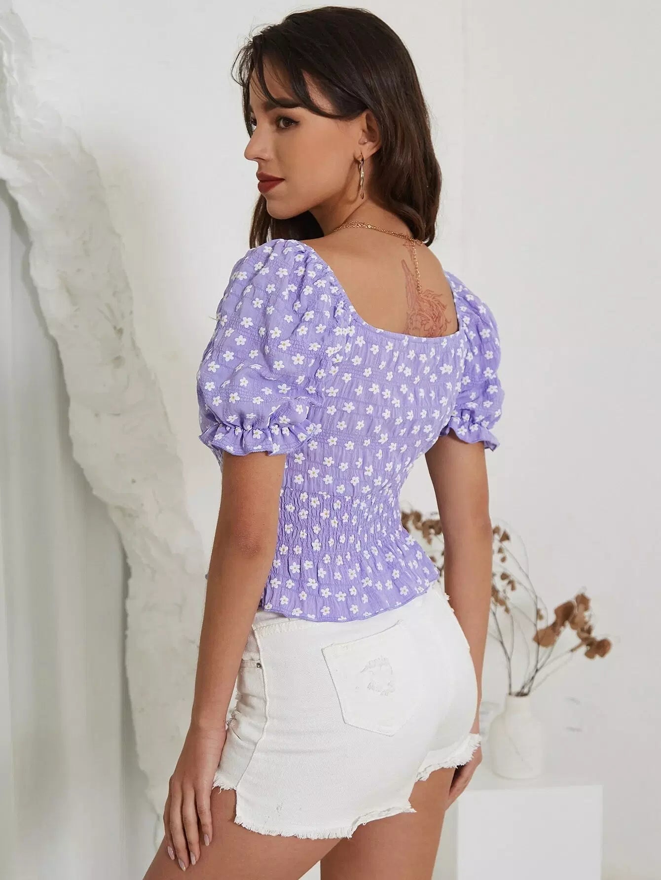 Ditsy Floral Print Shirred Peplum Blouse