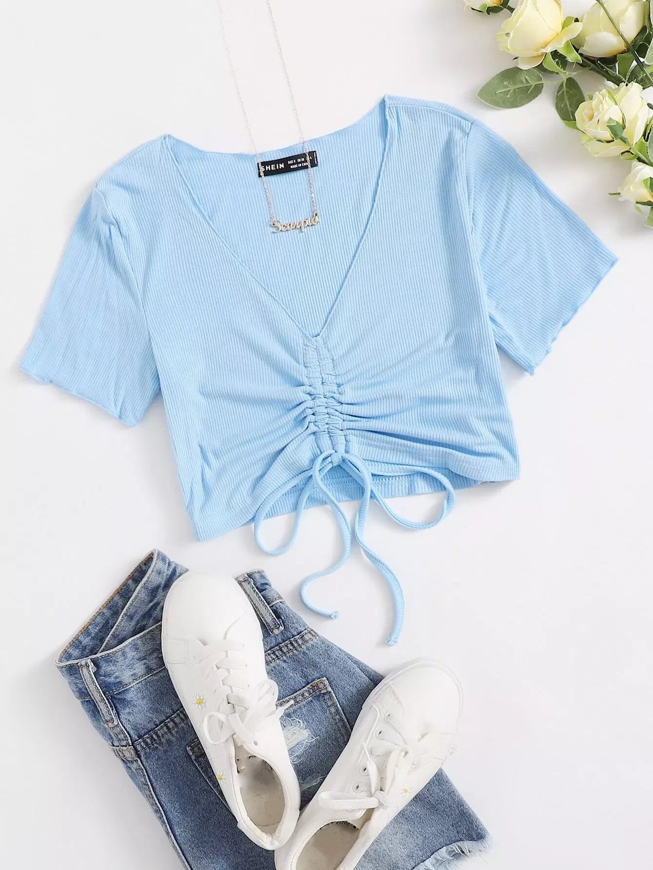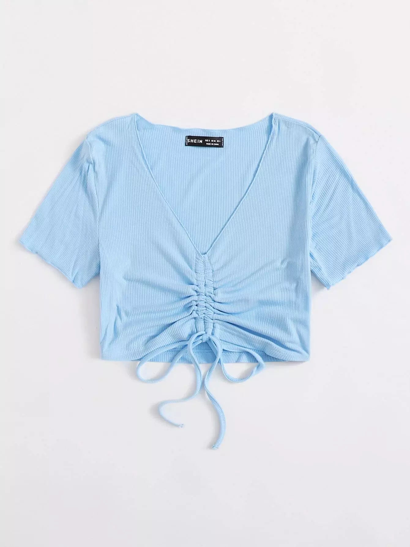 Drawstring Knot Rib-knit Tee