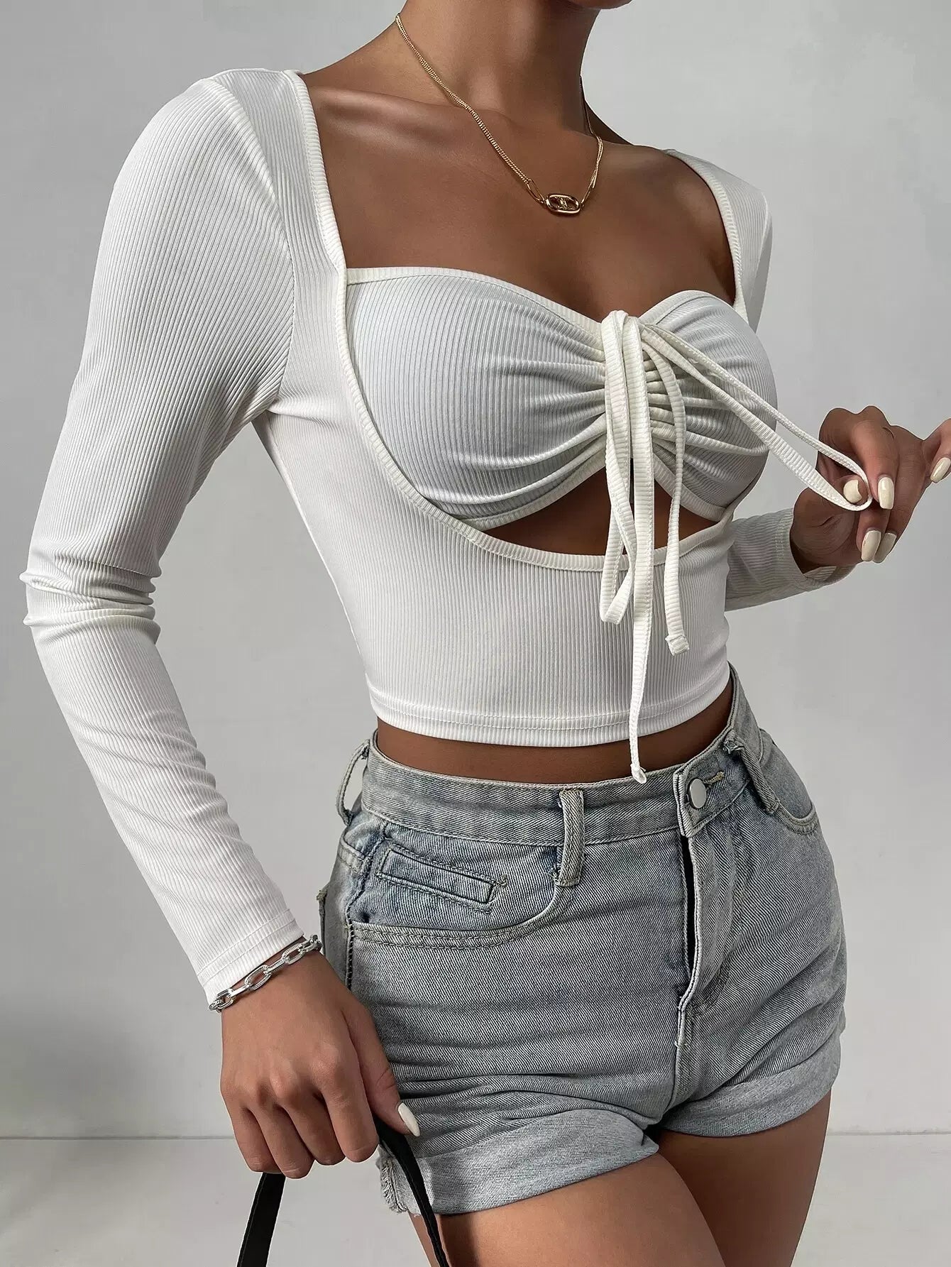 Drawstring Ruched 2 In 1 Tee