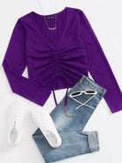 Drawstring Ruched Solid Tee