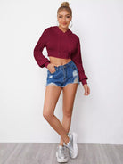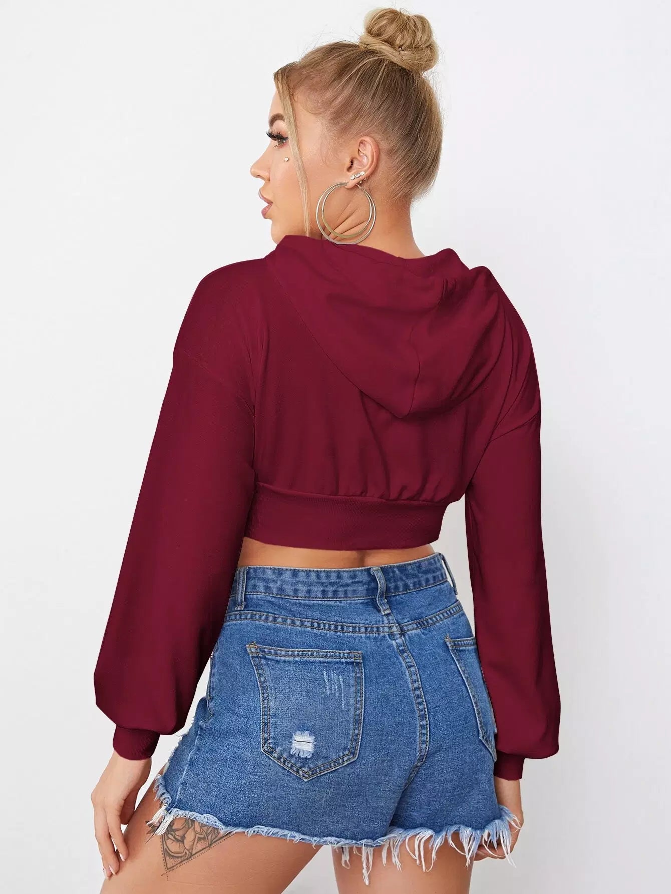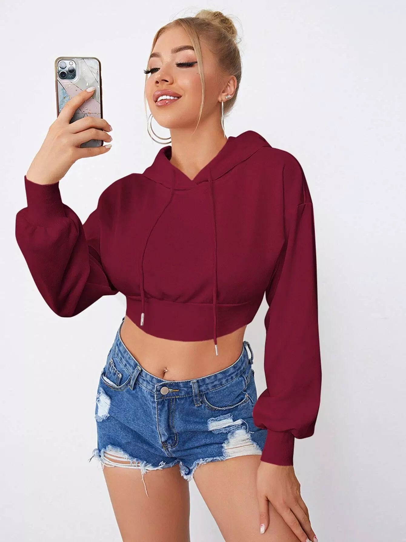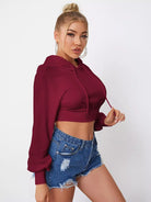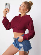 Women - Drop Shoulder Drawstring Crop Hoodie