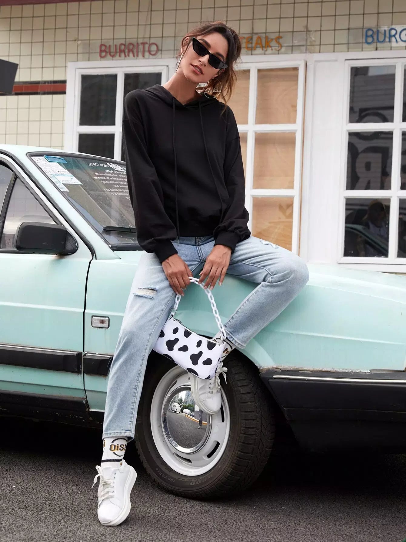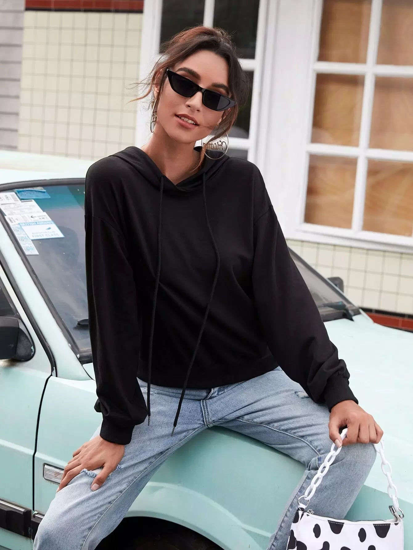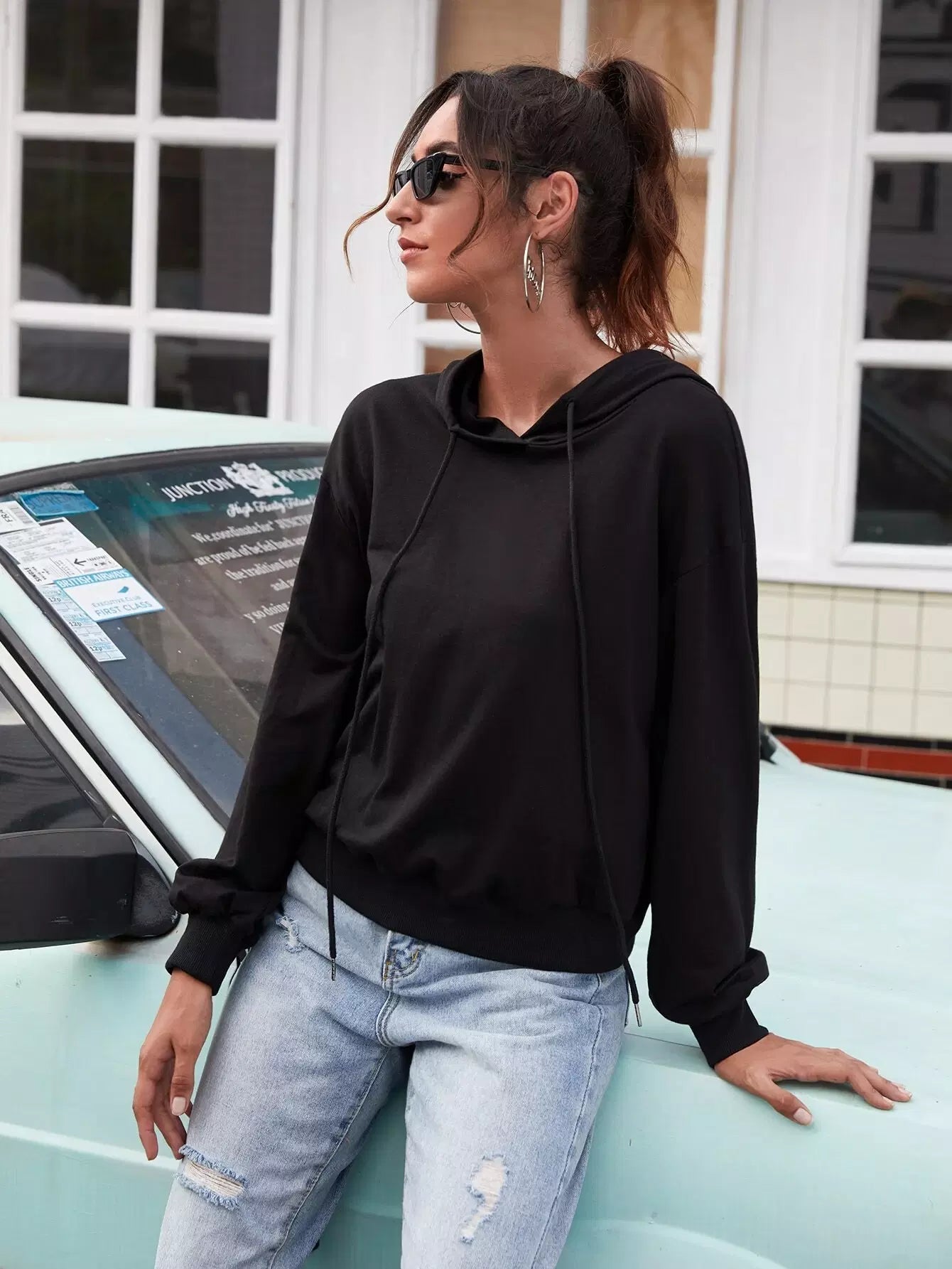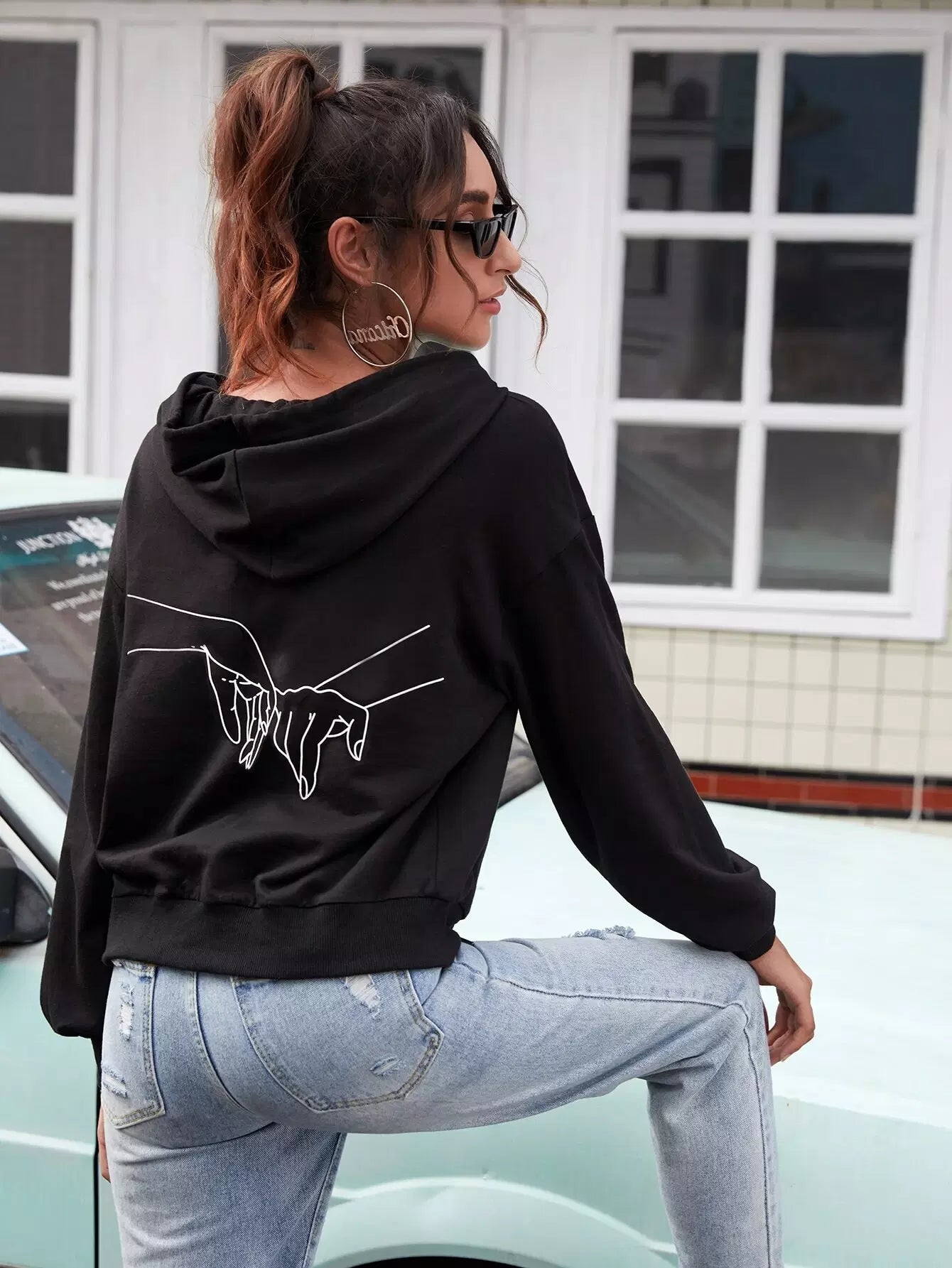 Women - Drop Shoulder Figure Graphic Drawstring Hoodie