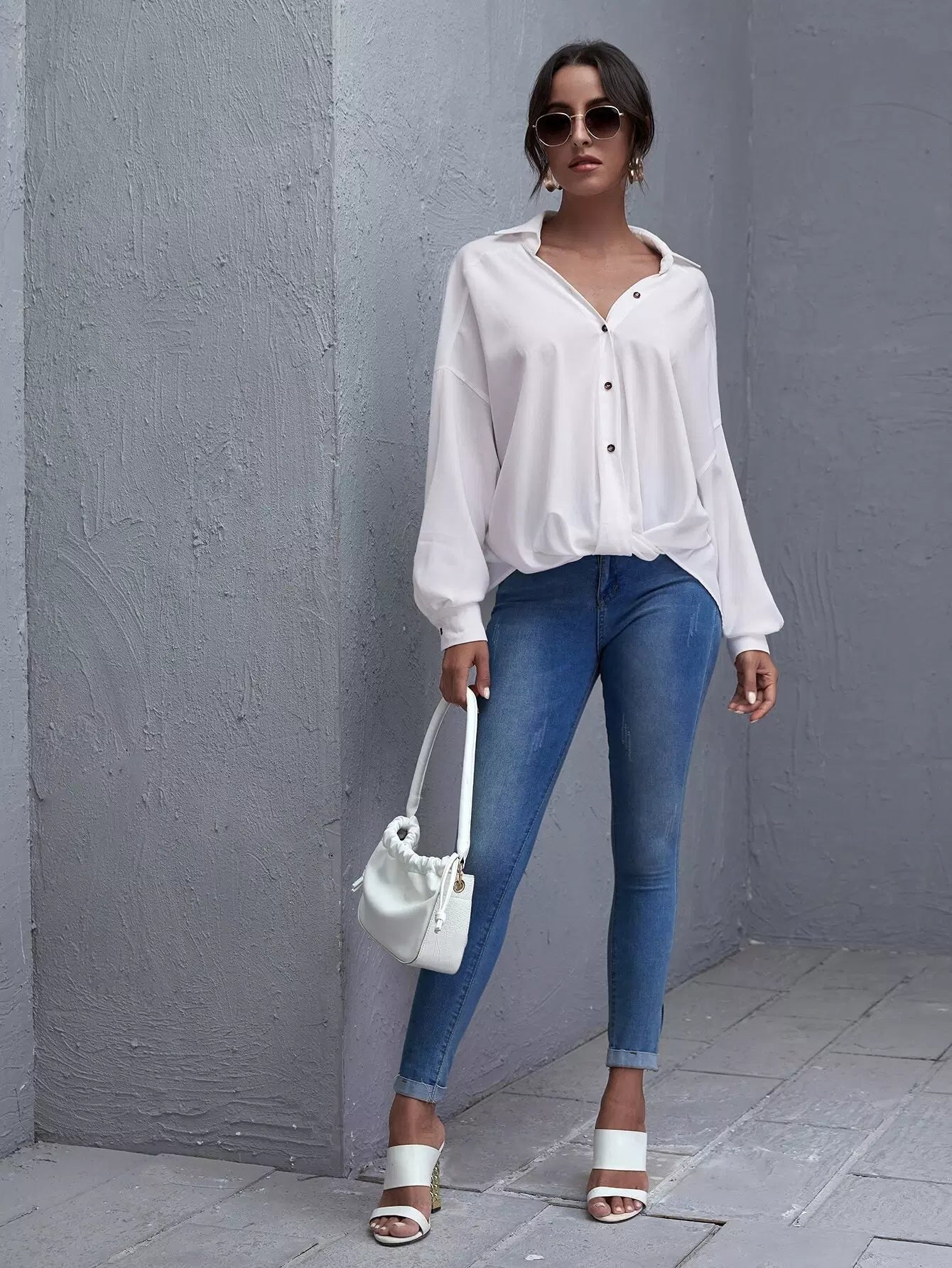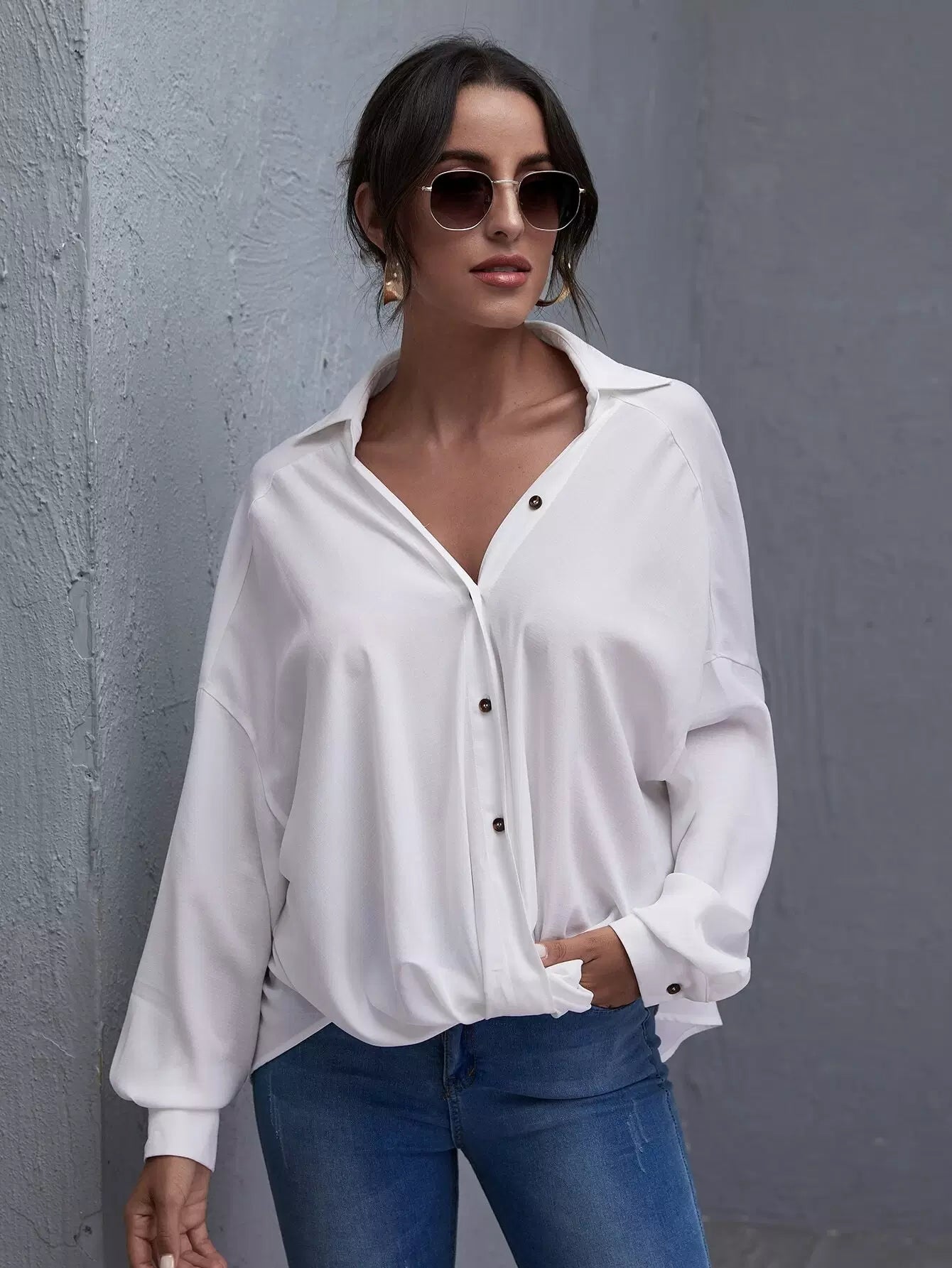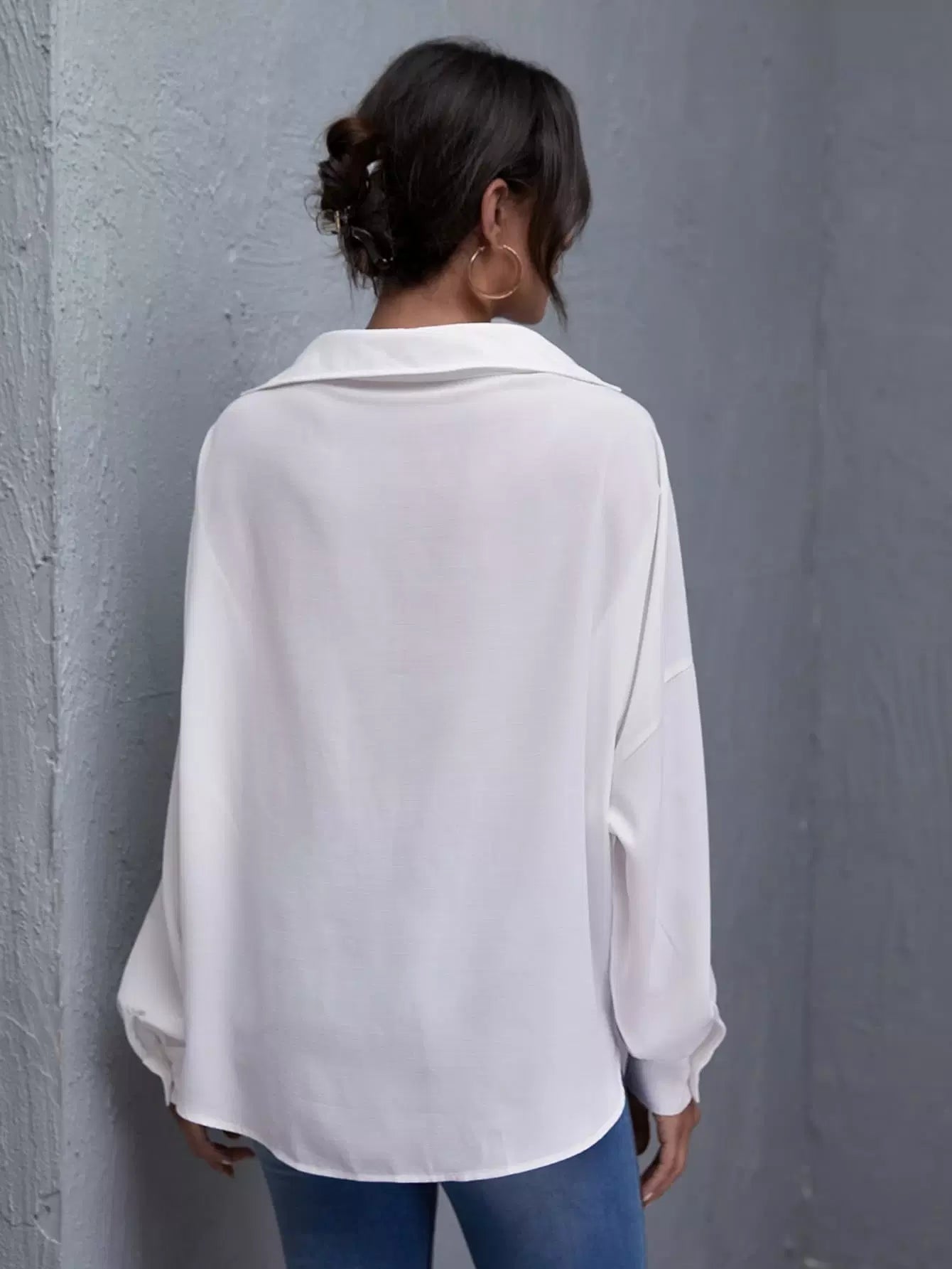 Drop Shoulder Oversized Solid Blouse