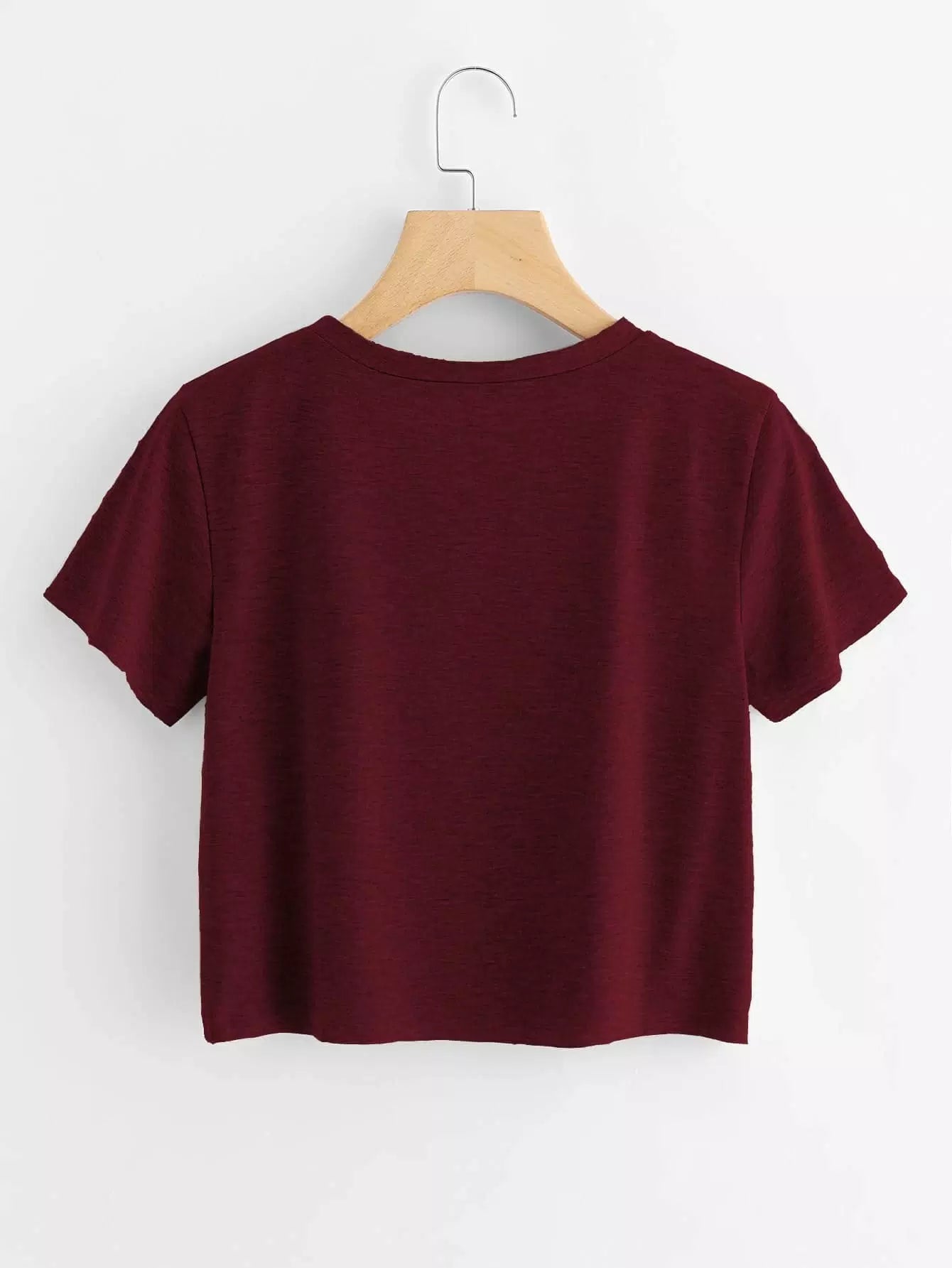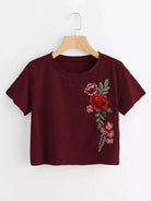 Women - Embroidered Applique Raw Trim Crop Marled T-shirt