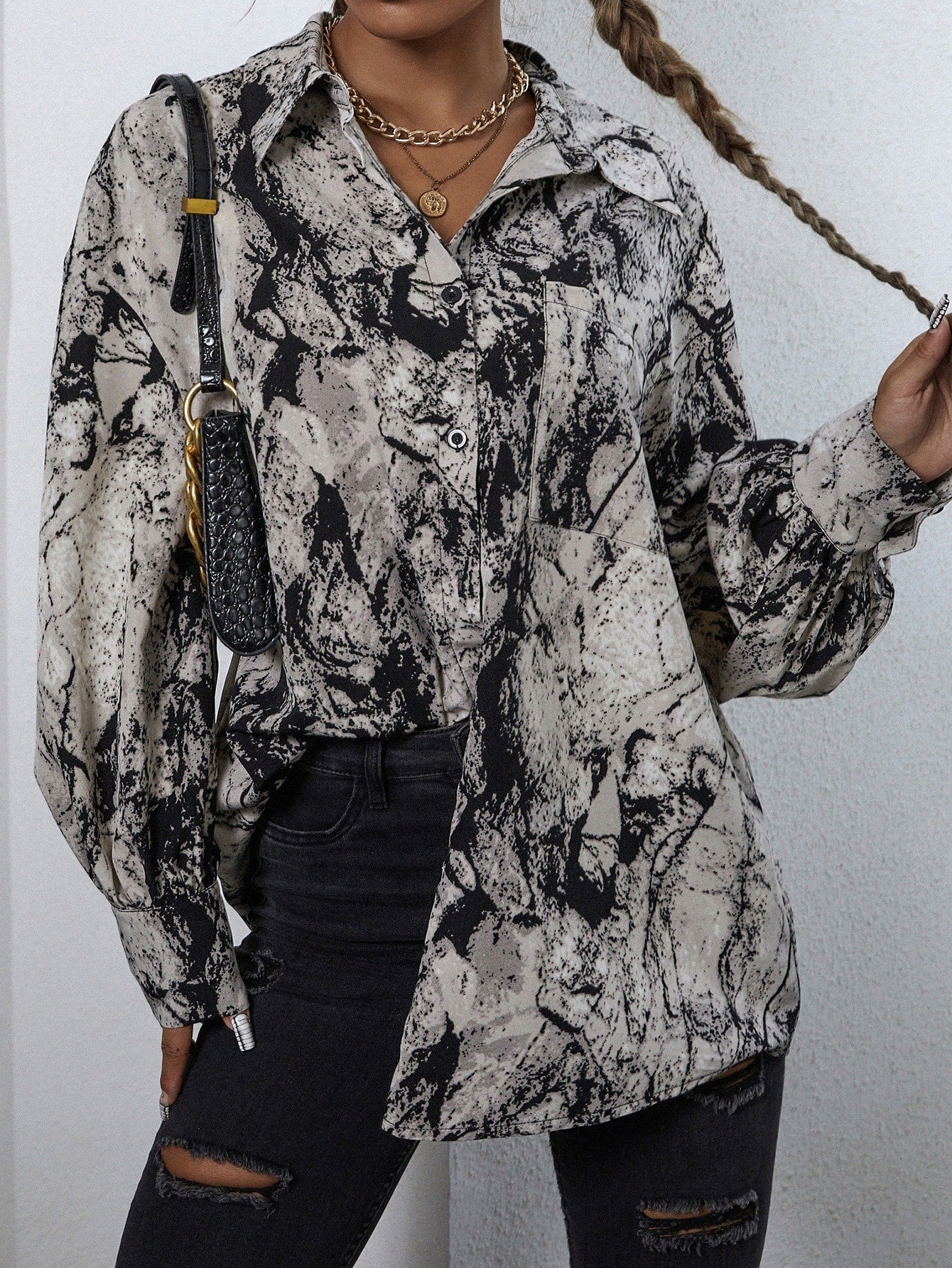 EMERY ROSE Random Print Bishop Sleeve Blouse Fall Cloth For Women