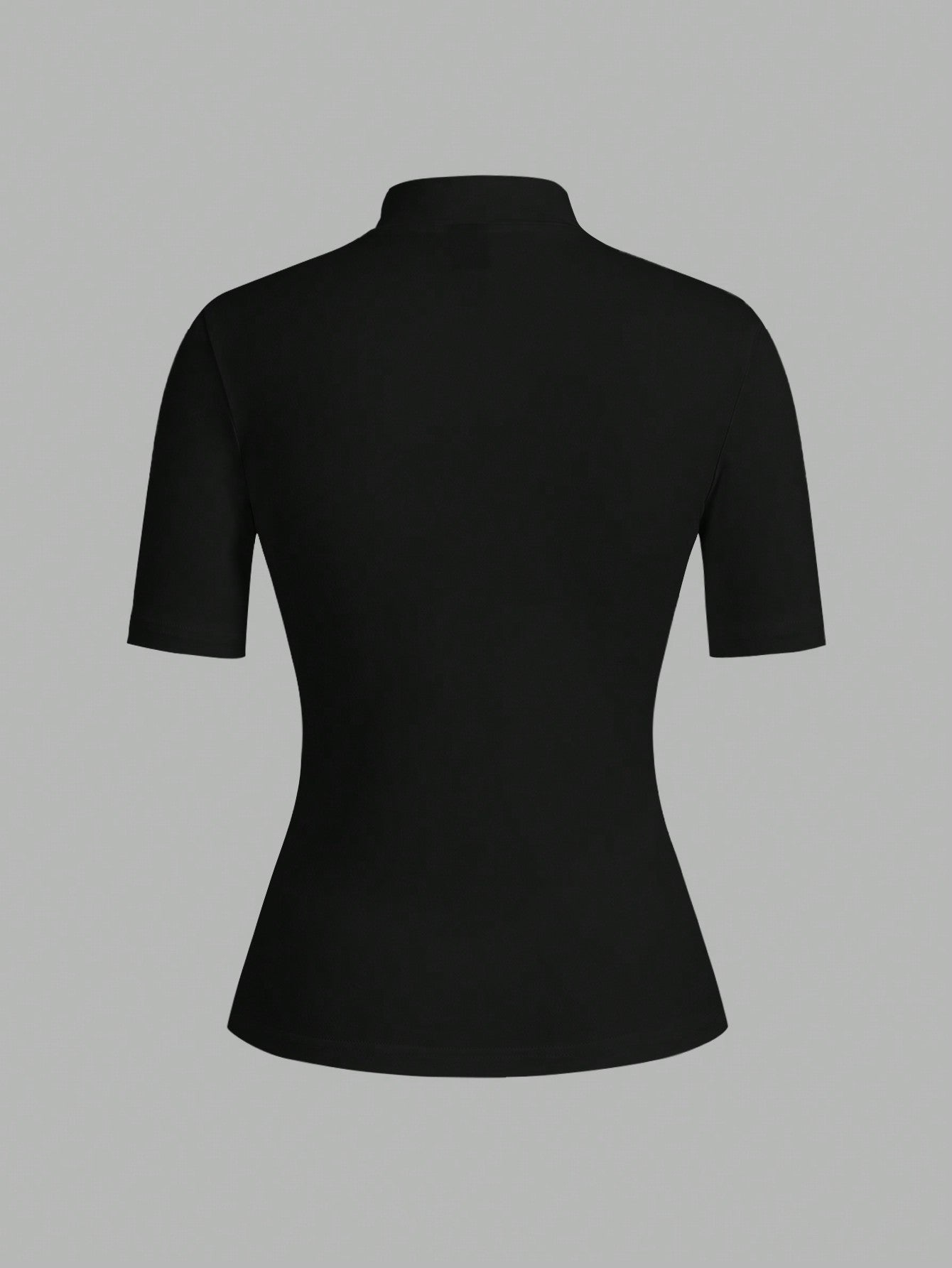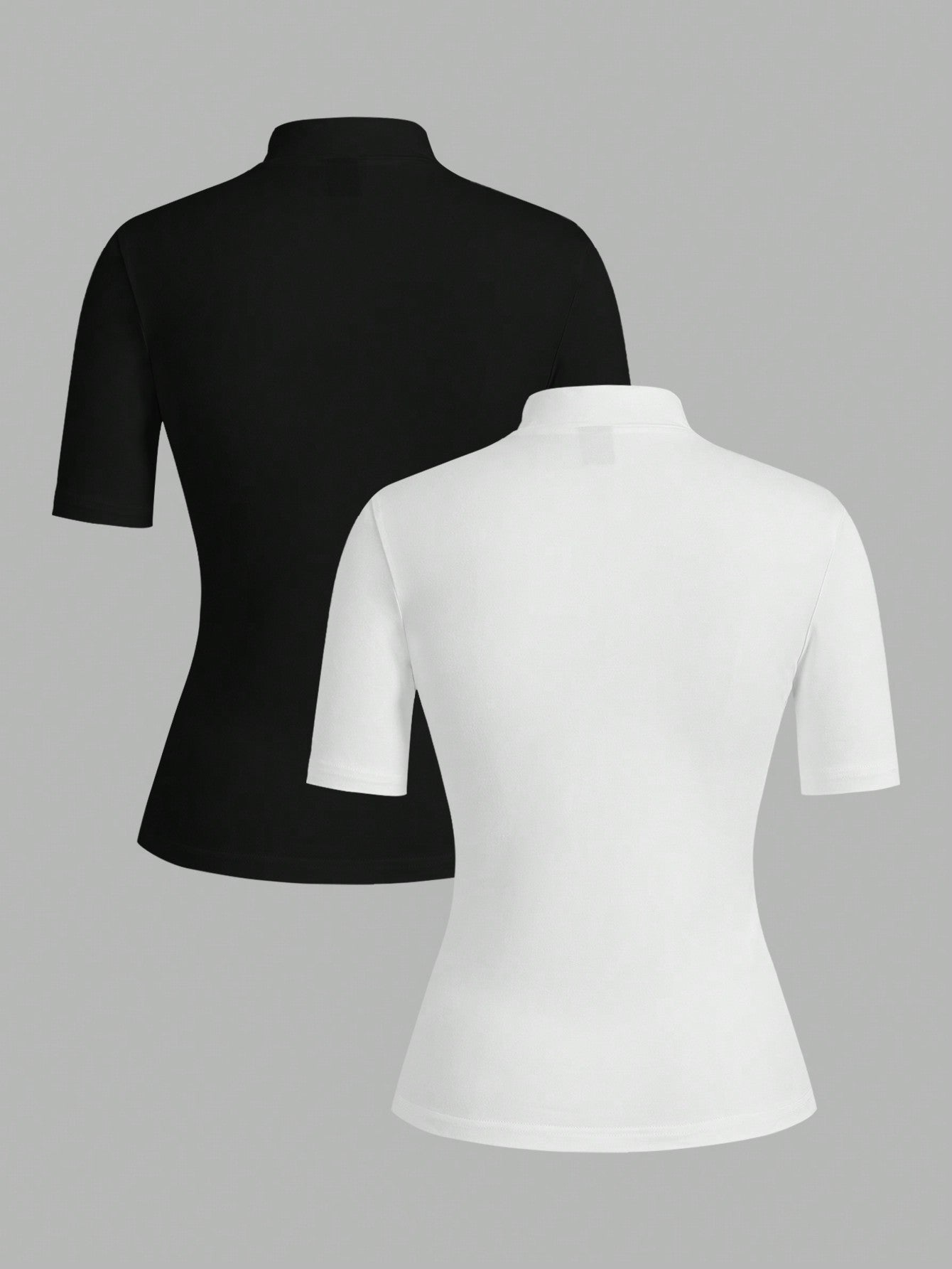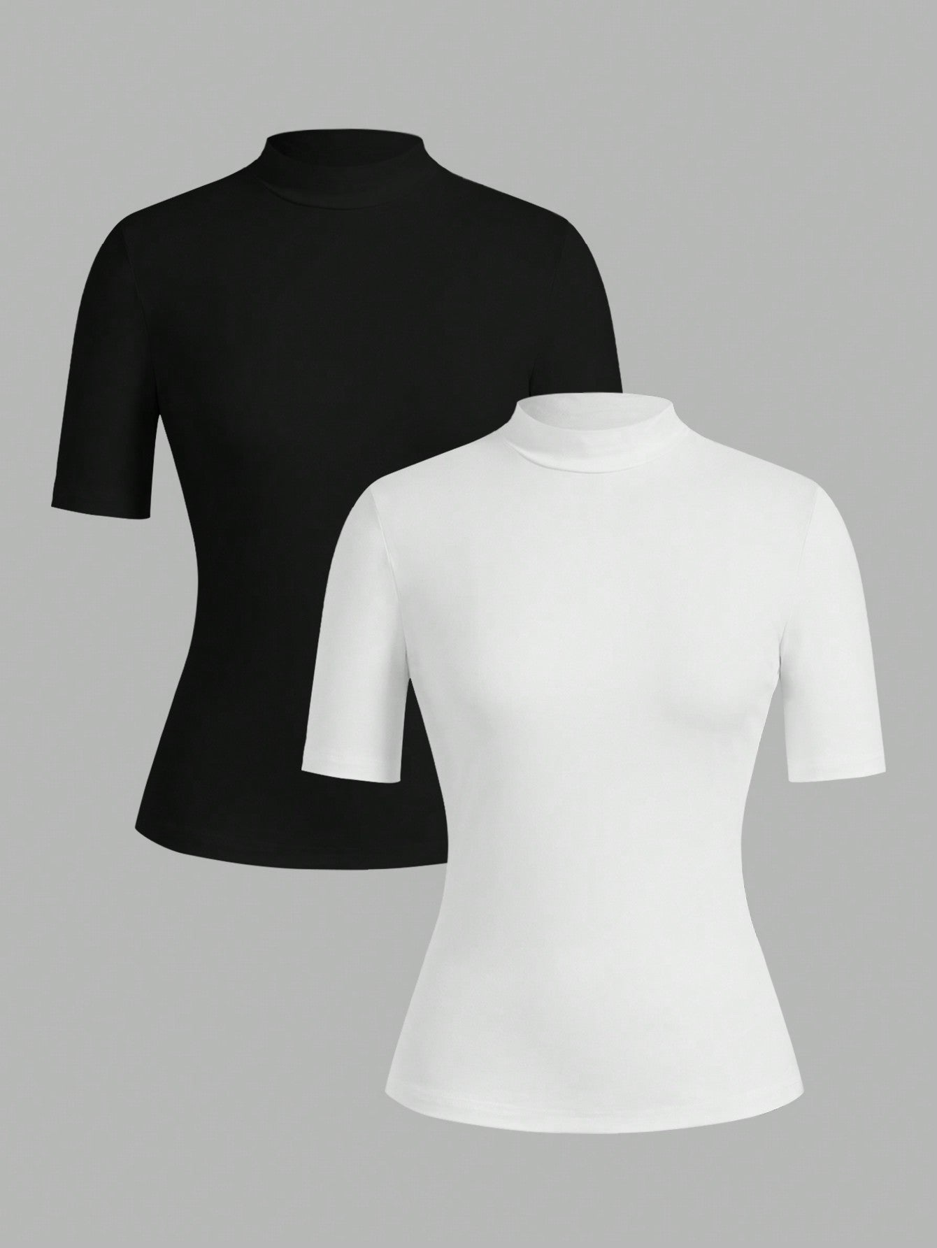 EZwear 2pcs/Set Women's Turtleneck Form-Fitting Long 3/4 Sleeve Base Layer T-Shirt Set, Suitable For