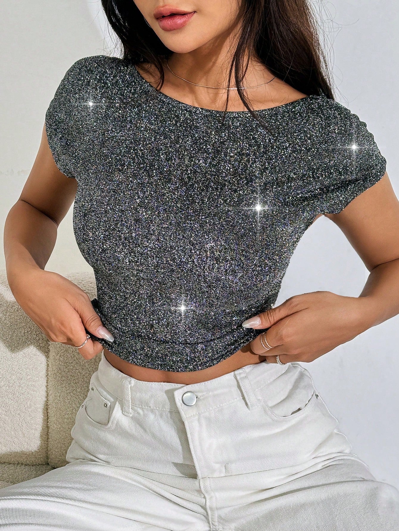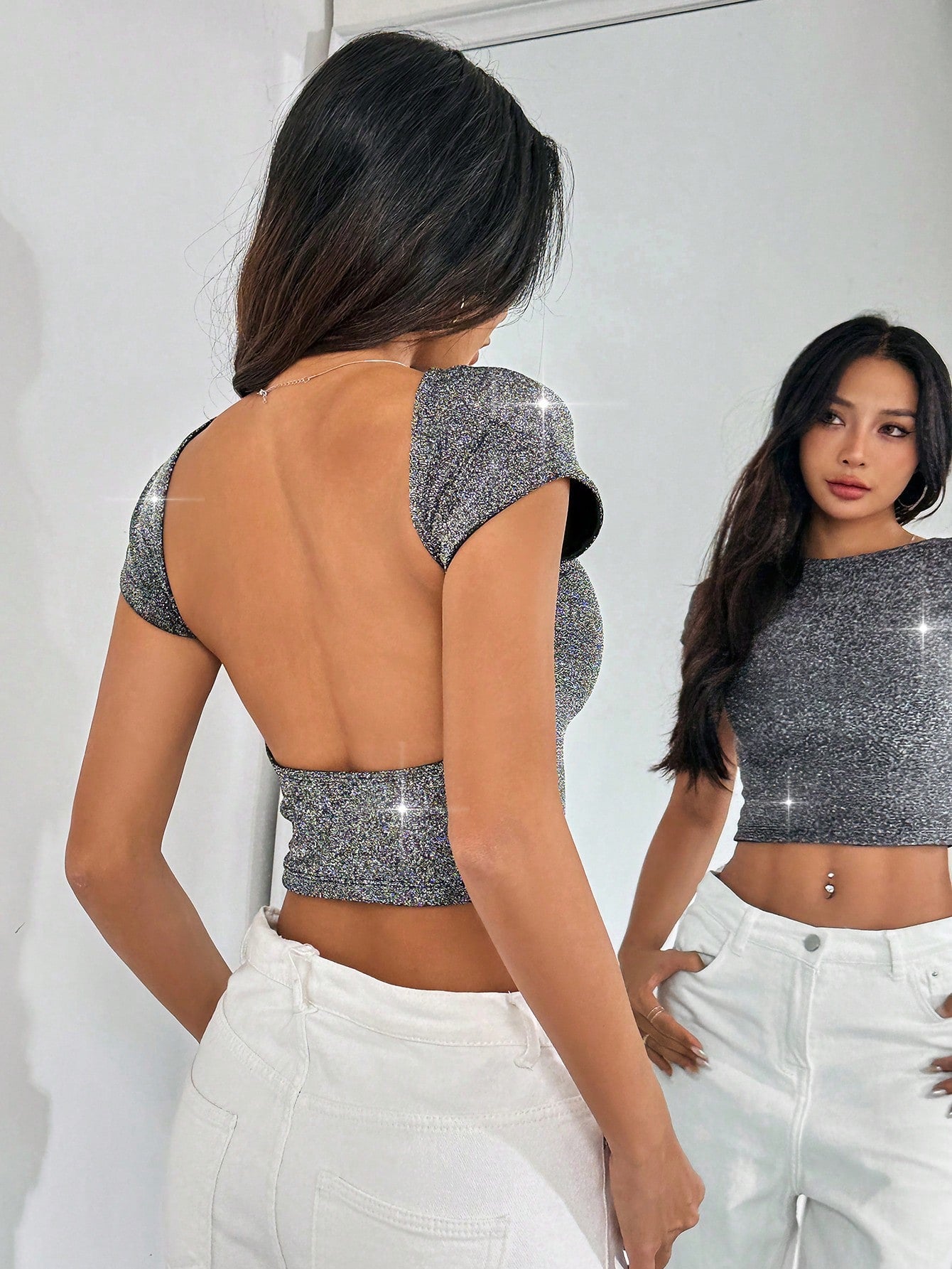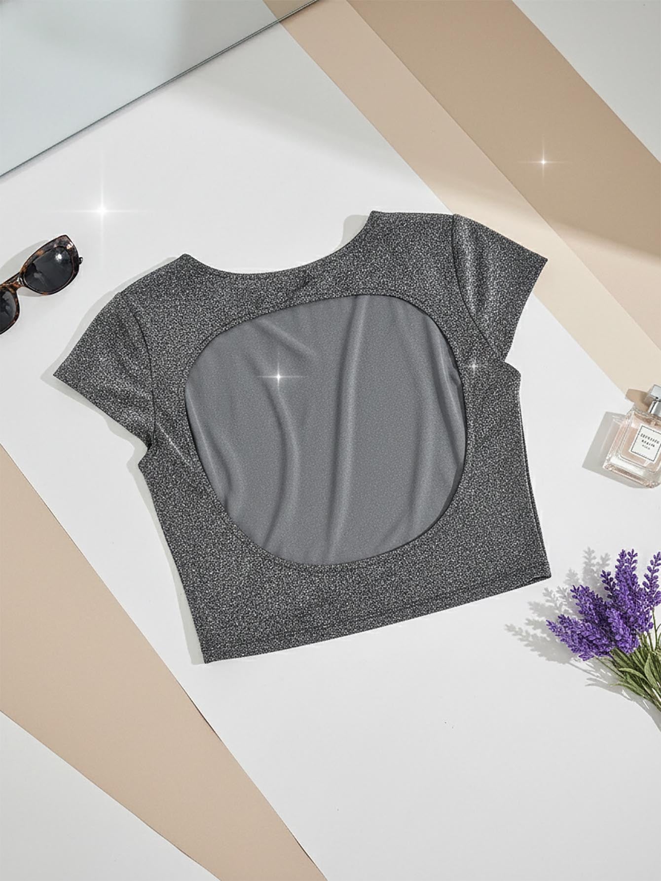 EZwear Sequin Backless Batwing Sleeve Top Tee
