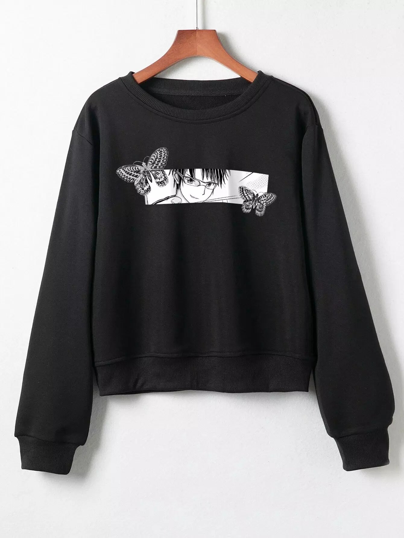 Figure And Butterfly Print Drop Shoulder Sweatshirt