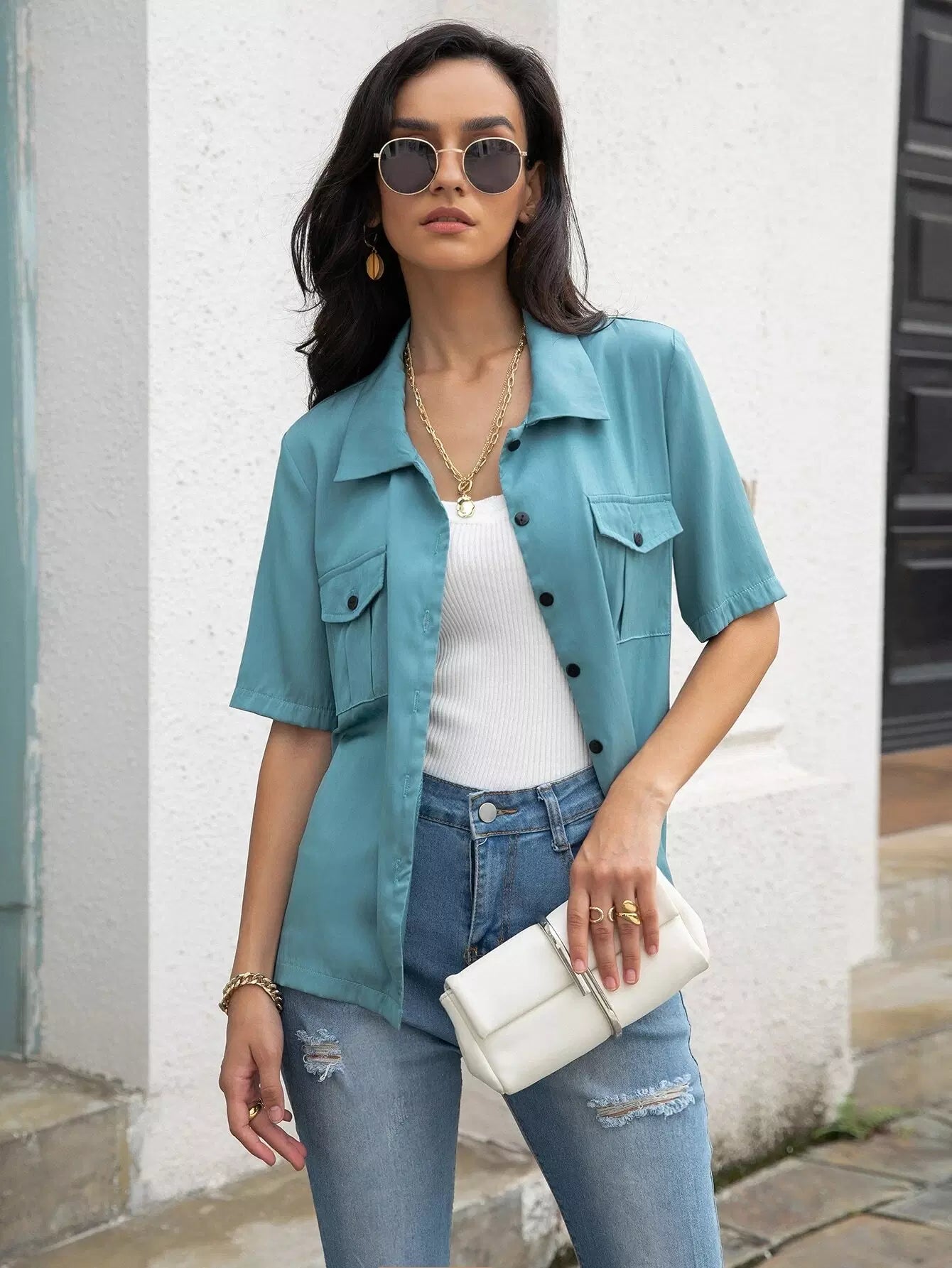 Flap Pocket Button Front Shirt
